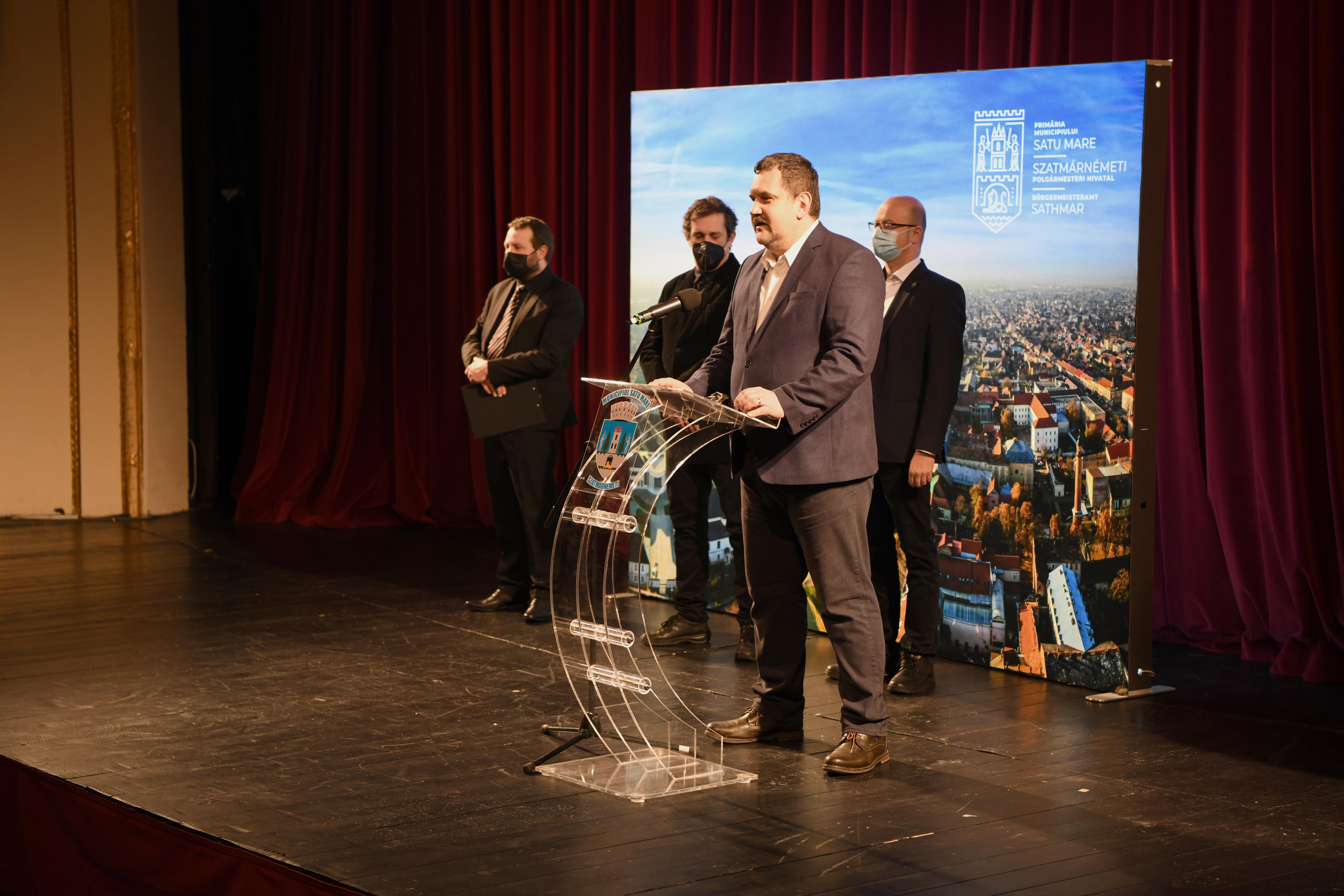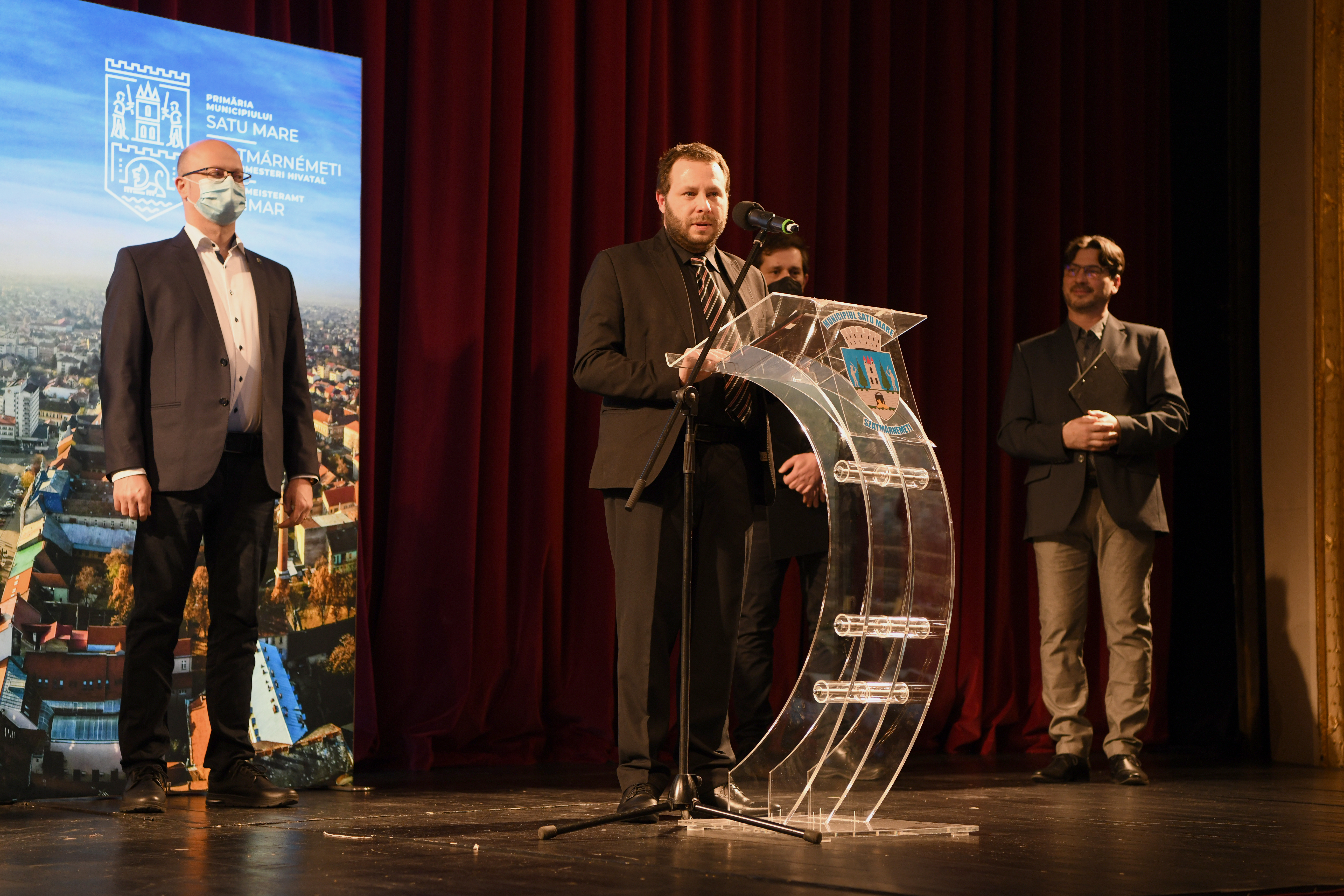 „Conservarea și promovarea patrimoniului nostru cultural, arhitectural și istoric depinde doar de implicarea , curiozitatea și educația noastră. Din fericire, vremurile pe care le trăim ne permit să accesăm fonduri europene, să deschidem drumuri noi și să creăm oportunități pentru a pune în valoare bogăția culturală și patrimoniul orașului nostru. Dar aici depinde de noi, de fiecare în parte. Pentru mine este un privilegiu și sunt un norocos că azi, într-un moment atât de deosebit, pot să fiu aici alături de toți cei care iubesc Teatrul de Nord. Aniversăm 130 de ani de la construcția acestei clădiri emblematice pentru orașul nostru, o clădire în care a fost scrisă o parte din istoria comunității noastre, care a supraviețuit transformărilor și a găzduit mii de spectacole ce au produs bucurie sau lacrimi pentru zeci de generații. Cunosc în detaliu această clădire şi ca structură, dar şi ca spirit. Sătmărenii au poate, cel mai frumos teatru din țară. Însă, ştiu foarte bine că un teatru nu există doar prin săli şi prin clădire sau prin pereții acesteia, ci există prin oamenii care au slujit în toți acești 130 de ani Teatrul de Nord.”, a declarat primarul Kereskényi Gábor.
