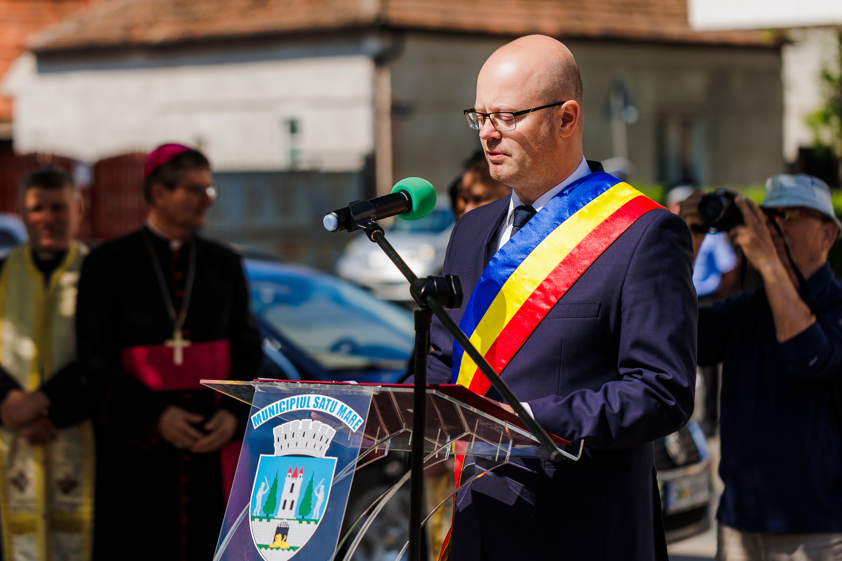 „14 Mai 1970 a însemnat însă și un moment de renaștere pentru Satu Mare, un moment al compasiunii și solidarității. Puterea de care au dat dovadă sătmărenii pentru a reconstrui orașul a impresionat întreaga Românie, întreaga Europă! În 1970, orașele Zutphen și Wolfenbüttel au sărit imediat în sprijinul nostru, impresionați de eforturile depuse de sătmăreni încă din primele zile pentru reconstrucția orașului. Atunci a apărut printre locuitorii orașului ceea ce numim ”spiritul sătmărean”. După 52 de ani, Satu Mare a întors gestul făcut de orașele Zutphen și Wolfenbüttel în 1970 spre Ucraina. Anul acesta, la fel cum au făcut-o prietenii noștri, așa am procedat și noi față de orasele înfrățite din Ucraina: Ujgorod și Beregovo. Alături de sute de sătmăreni am făcut donații, am oferit bunuri de strictă necessitate și alimente. Trăim vremuri grele, dar să avem curaj! Dezbinarea și vrajba aduce doar necazuri. Acum este momentul să unim, să construim! Vreau să ne ajutăm unii pe ceilalţi, vreau să cred că nu suntem uniţi doar în durere. Suntem şi vom rămâne împreună!”, a transmis primarul municipiului Satu Mare, Kereskényi Gábor.