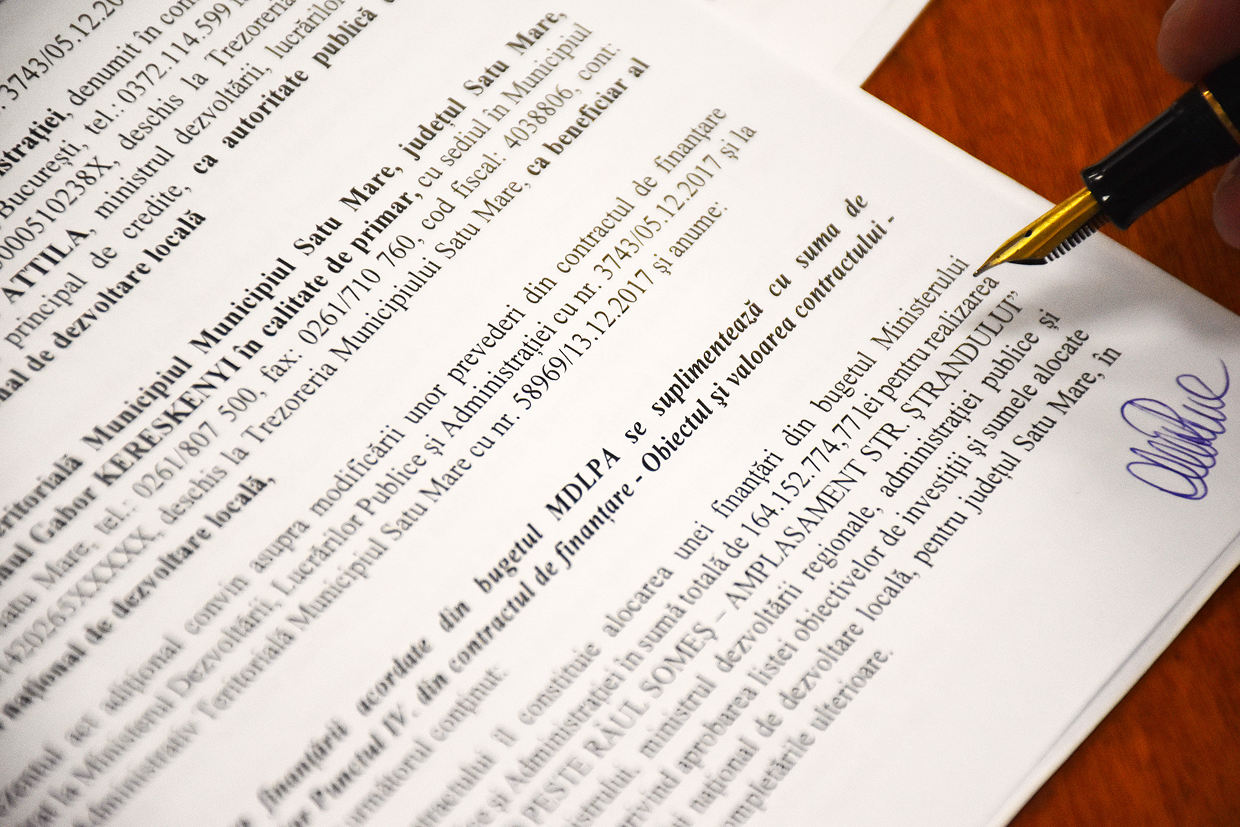 Primarul Kereskényi Gábor a semnat actul adițional la contractul de finanțare încheiat cu Ministerul Dezvoltării, Lucrărilor Publice și Administrației ce privește construcția podului peste Someș, zona str. Ștrandului. Ministerul dublează finanțarea pentru construcția podului, de la 82 milioane de lei la 164.15 milioane de lei.