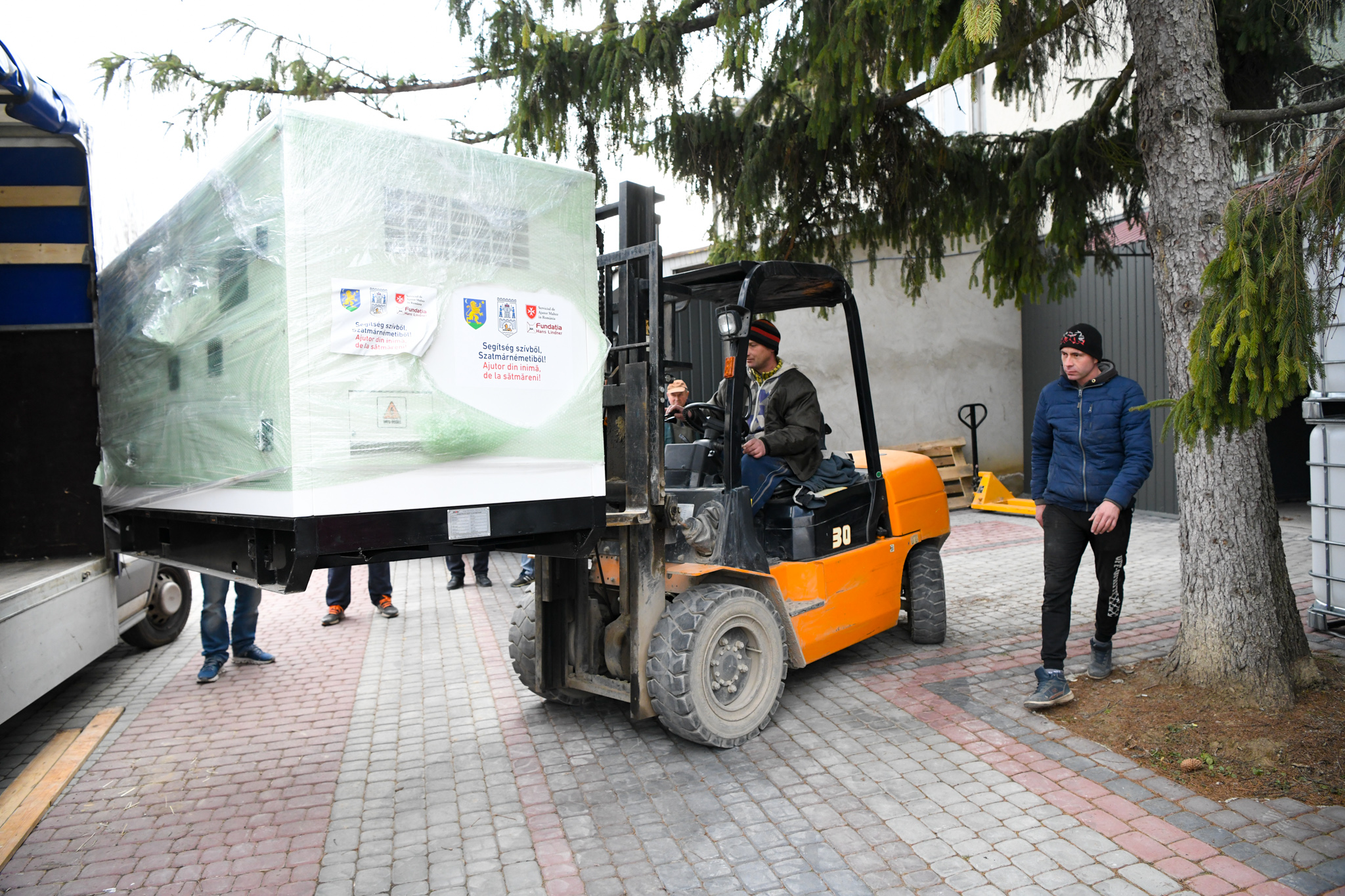 Ajutoarele au fost transportate la Beregovo de primarul Gábor Kereskényi și deputatul Lóránd Magyar.