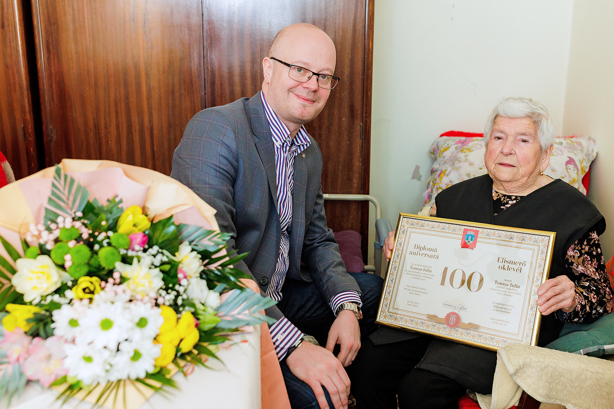 Satu Mare se poate mândri cu o frumoasă comunitate de seniori, care și-au trăit viața cu demnitate, dând dovadă de curaj și înțelepciune, chiar și în cele mai dificile momente. Din această comunitate face parte și doamna Iulia Tomșa. Primarul municipiului Satu Mare, Kereskényi Gábor, i-a făcut astăzi, la împlinirea vârstei de 100 de ani, o surpriză și i-a urat ,,La mulți ani cu sănătate!”.