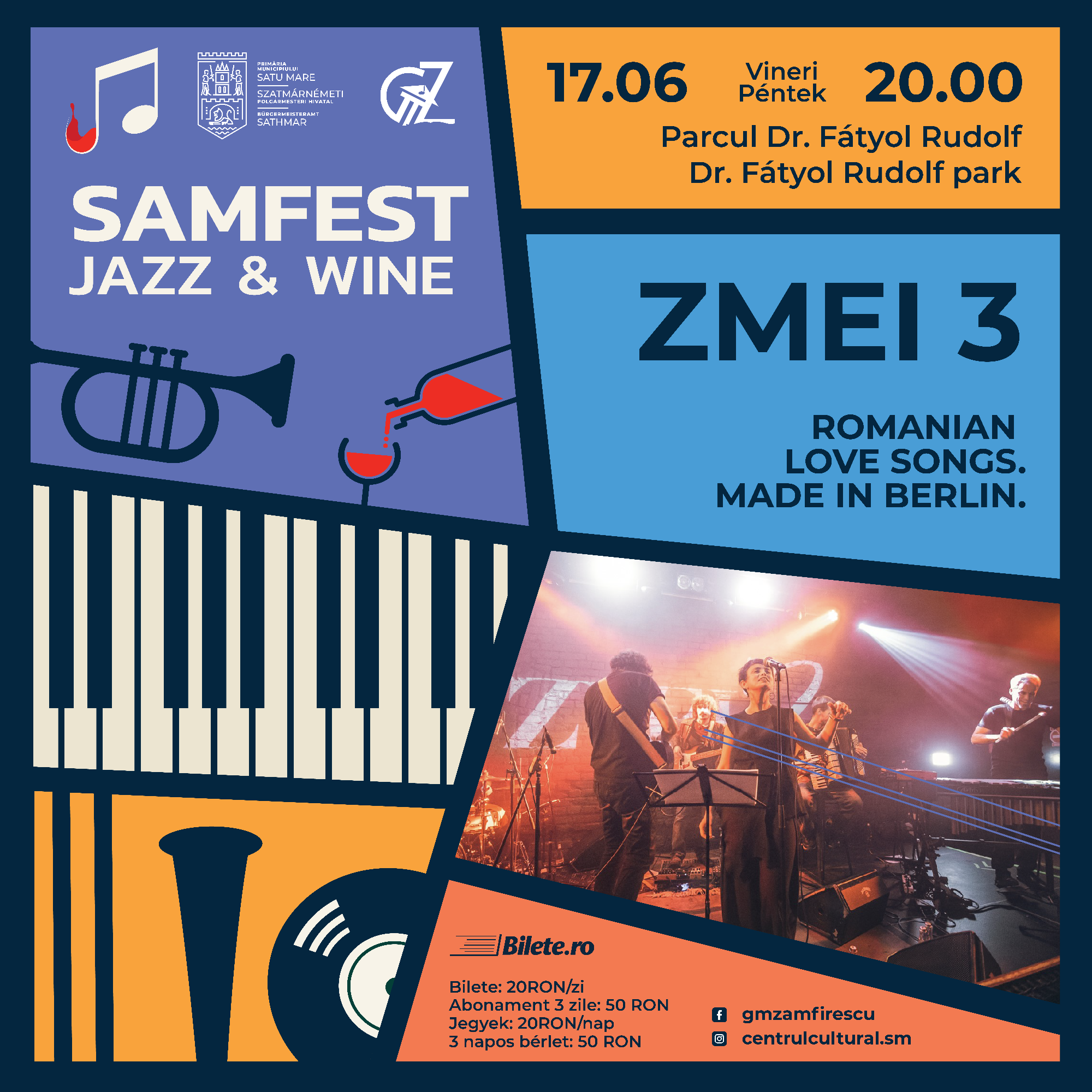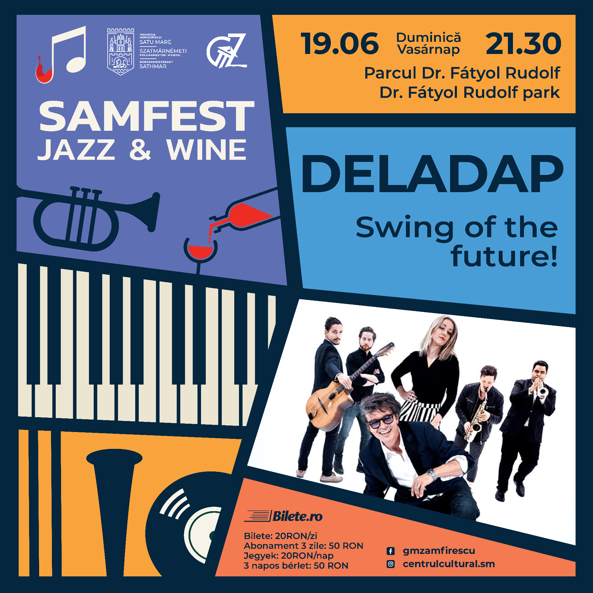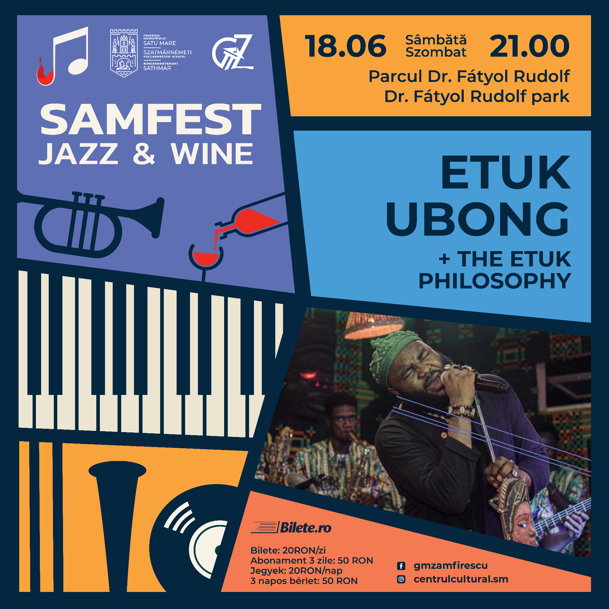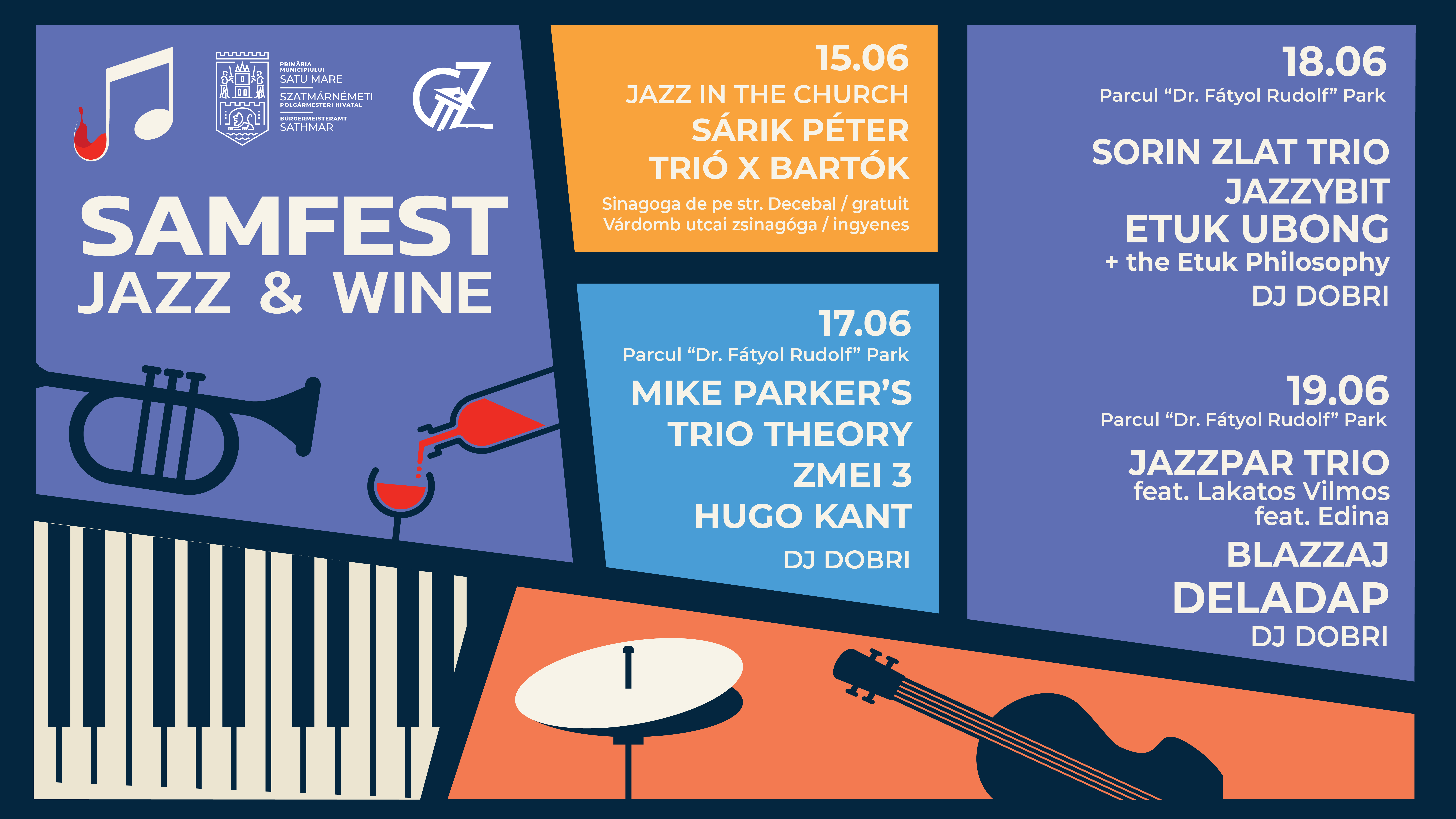 Atmosfera de festival revine în parcul din jurul Turnului Pompierilor în acest weekend, căci scena se va umple cu artiști de excepție, în cadrul unei noi ediții Samfest Jazz&Wine, muzicieni precum DELADAP, ETUK UBONG & the Etuk Philosophy, HUGO KANT, Mike Parker’s Trio Theory, Blazzaj, Sorin Zlat Trio, Zmei3, JazzyBIT și Jazzpar Trio. Alături de prestațiile muzicienilor de excepție, publicul se va putea bucura de cele mai bune vinuri care vor da cu adevărat gust atmosferei de festival sub cerul liber.