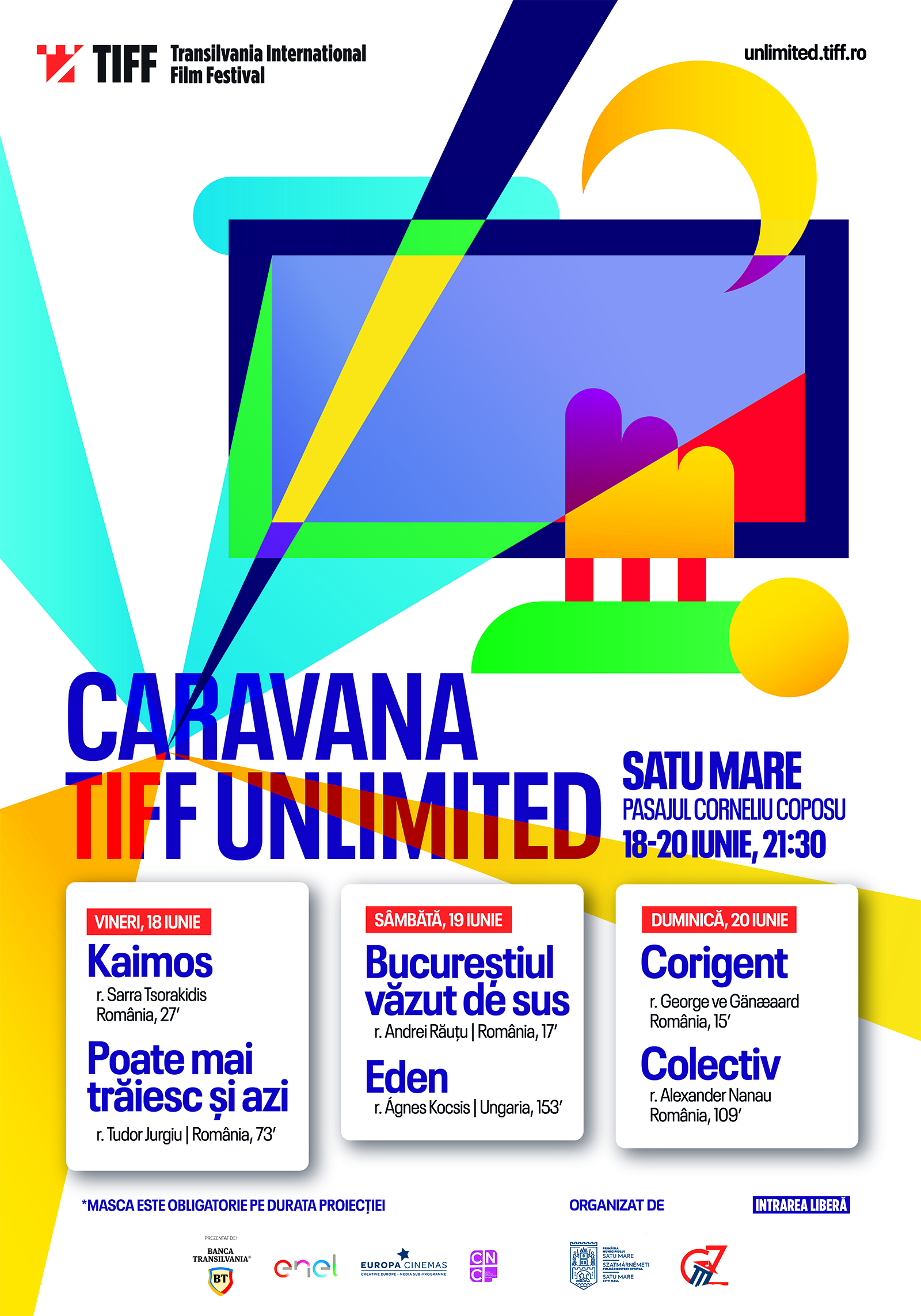 Caravana Filmelor TIFF Unlimited este un proiect organizat de Asociația Film și Cultură Urbană, cu sprijinul Europa Cinemas și al Centrului Național al Cinematografiei. Caravana este prezentată de Banca Transilvania, sponsor: Enel România.