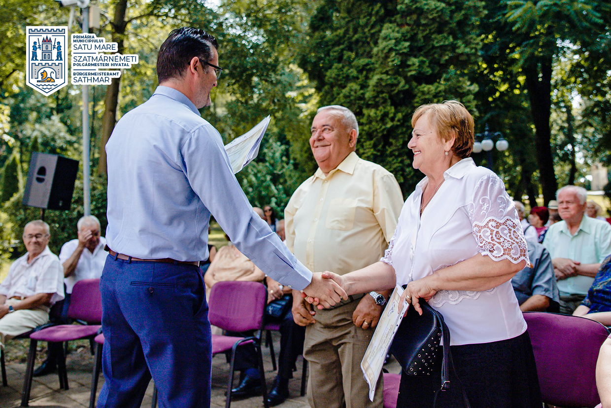Conducerea Primăriei Municipiului Satu Mare continuă tradiția premierii celor mai longevive cupluri din municipiul Satu Mare. Miercuri, 14 iulie, în Grădina Romei, au fost felicitate 29 de cupluri care aniversează 50 de ani de căsătorie și 5 cupluri ce sărbătoresc 60 de ani de căsătorie. Primarul municipiului Satu Mare, Kereskényi Gábor, a subliniat cât de important este modelul acestor cupluri pentru comunitatea sătmăreană și pentru tinerele generații.