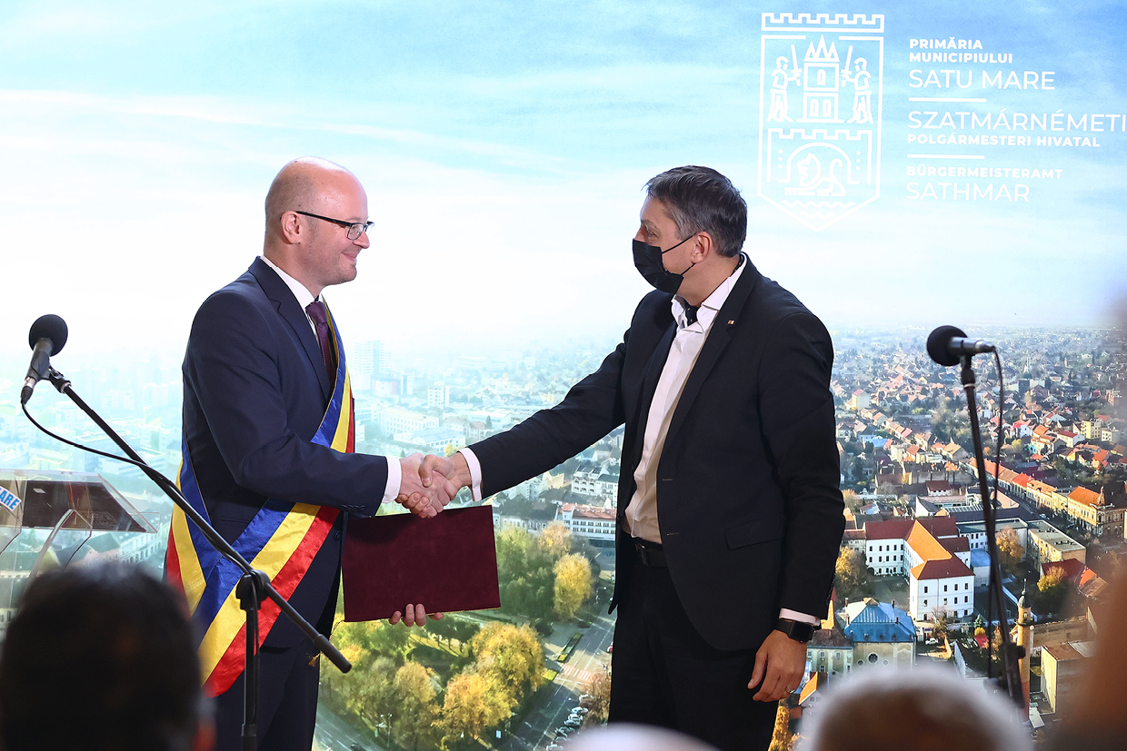 Răspunsul e foarte simplu: prin doamna ambasador Miculescu, domnul rector David și campionul Richárd Osváth, Satu Mare este cunoscut la nivel global. Nu cred că greșesc atunci când spun că doamna Simona Miculescu este cel mai important diplomat pe care România îl are în acest moment. Domnul Daniel David este rectorul uneia din cele mai mari și importante universități din Europa, domnul Osvath este unul din cei mai mari sportivi ai lumii, care a trecut peste toate obstacole pentru a ne aduce medalii paralimpice, mondiale și europene.