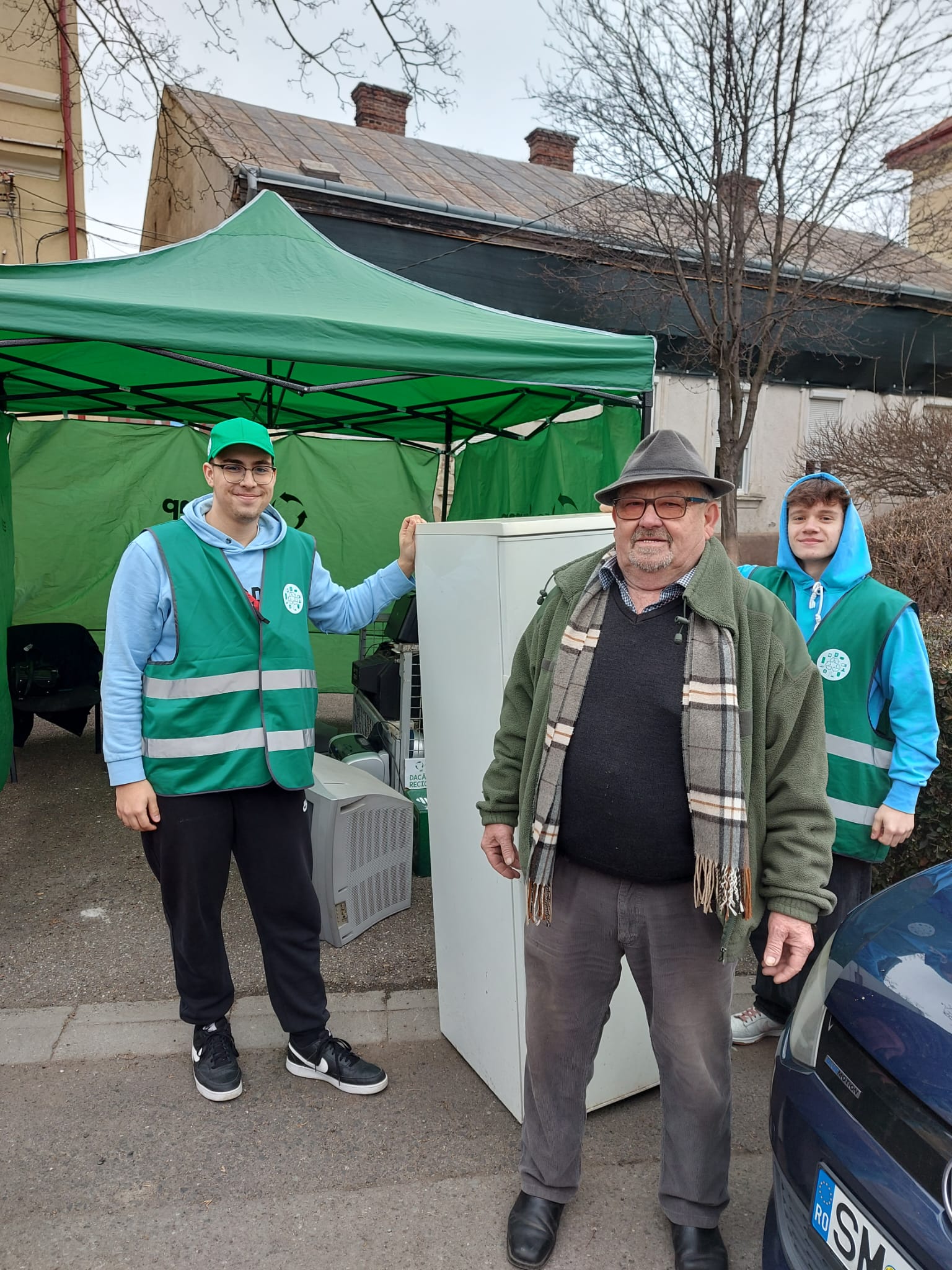 Un număr de 15 voluntari : pensionari, ingineri, profesori, și elevi coordonați de către dna Békéssy Elisabeta –președintele asociației, respectiv elevii din echipa de robotică Star Tech de la Colegiul Național ,,Ioan Slavici„ coordonați de către dna profesor Lupou Agota, au asigurat la cele 4 puncte de colectare: preluarea deșeurilor de la cetățeni dialogul cu cetățenii precum și înregistrarea cetățenilor care au solicitat preluarea unor deșeuri voluminoase de la domiciliu, lucru care s-a și întâmplat în cursul zilei de colectare. Un număr de 4 cetățeni au solicitat acest serviciu din partea firmei colectoare.