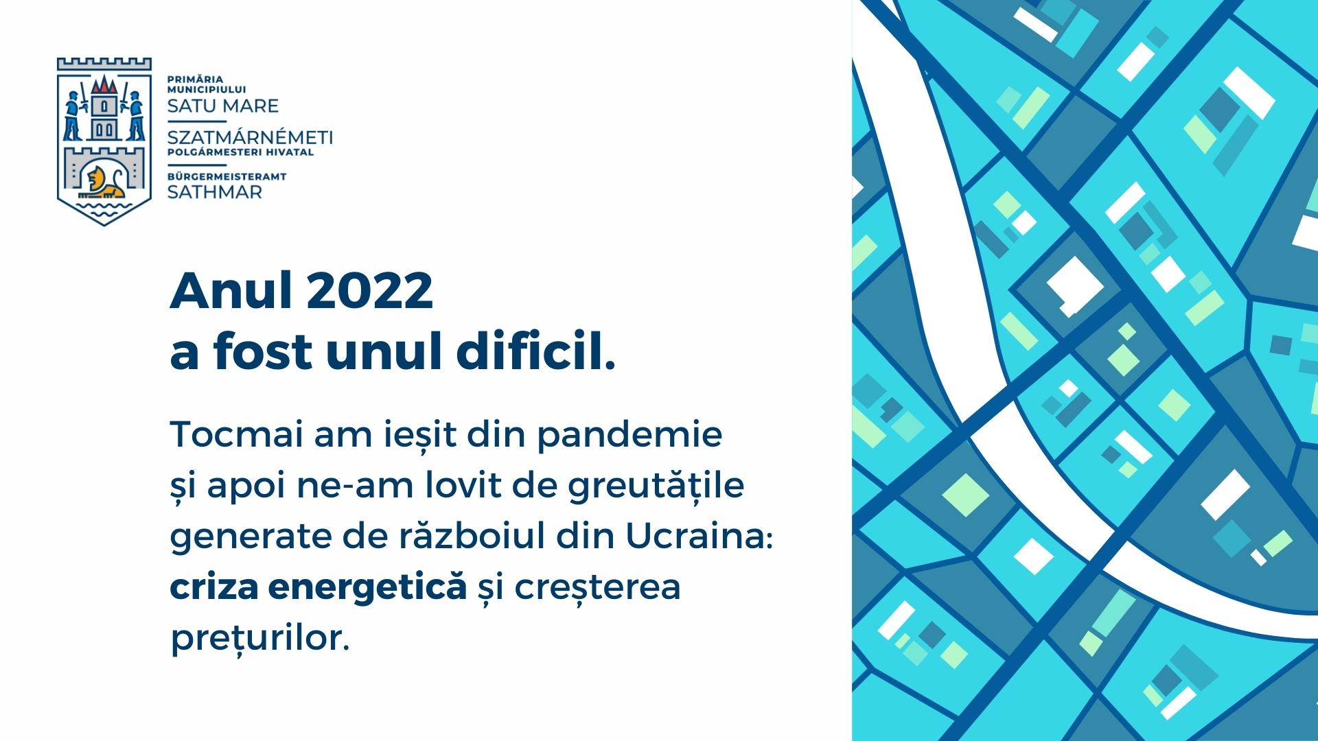 Anul 2022 a fost unul dificil. După ce am ieșit din pandemie ne-am lovit de greutățile generate de războiul din Ucraina: criza energetică și creșterea prețurilor.