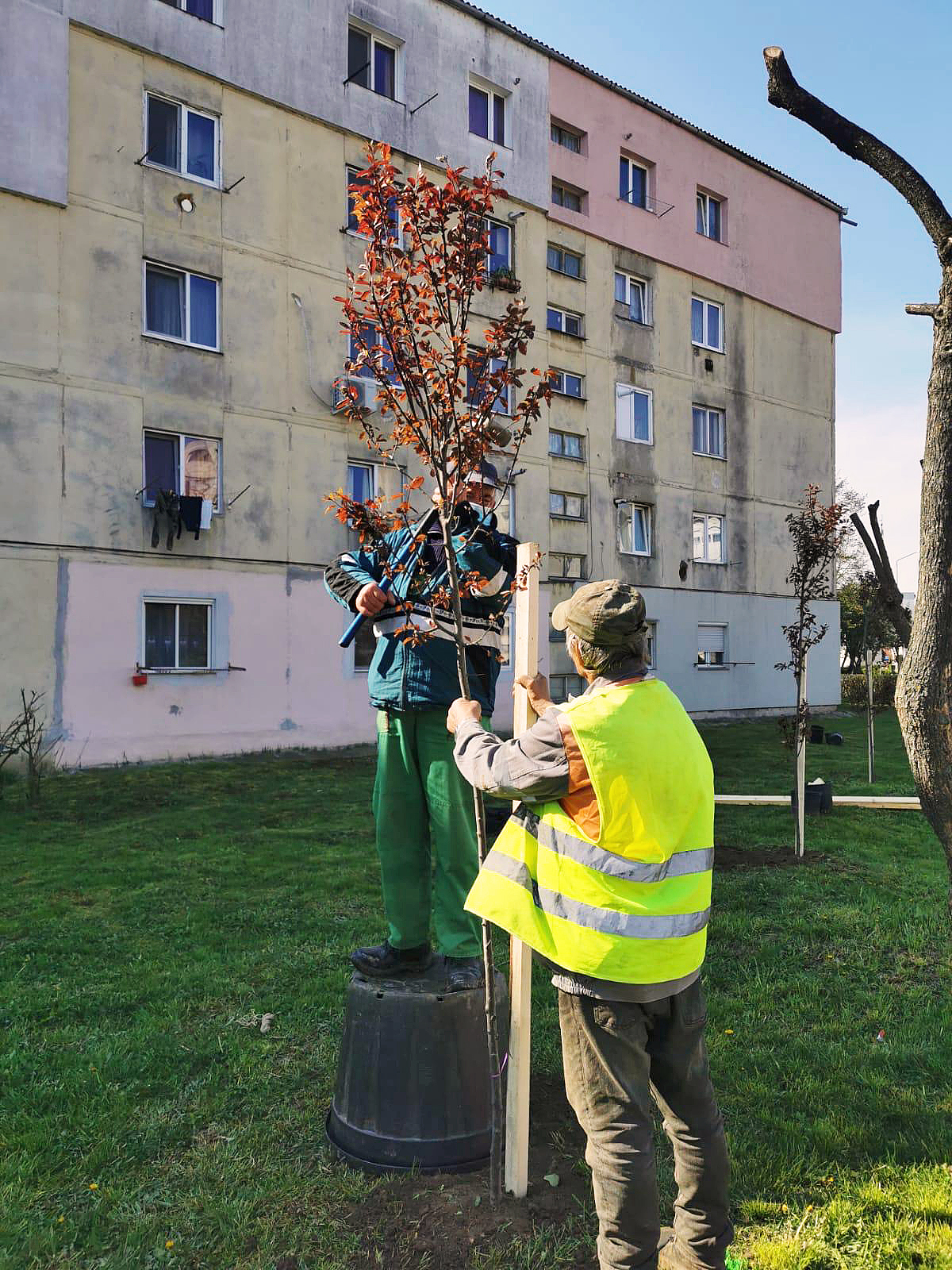 Pe str. Prahova se mai găsesc astfel de pruni ornamenatali care s-au dezvoltat frumos, motiv pentru care am ales să păstrăm același tip de arbore și în zona din fața blocurilor.