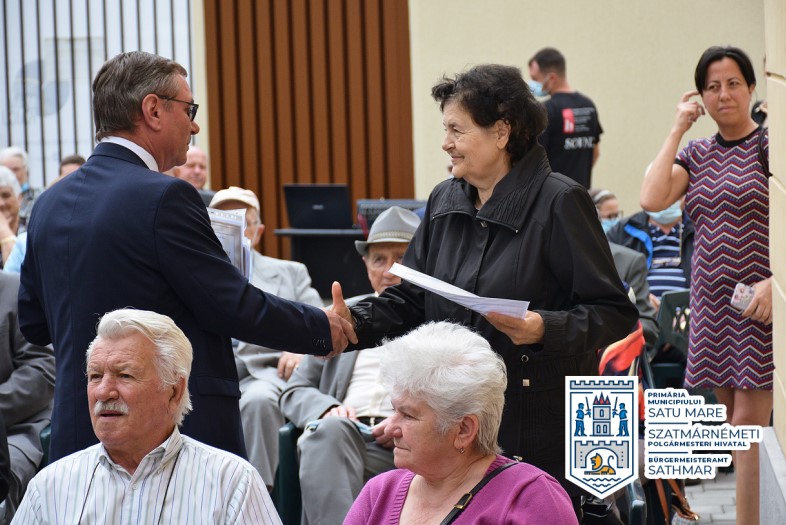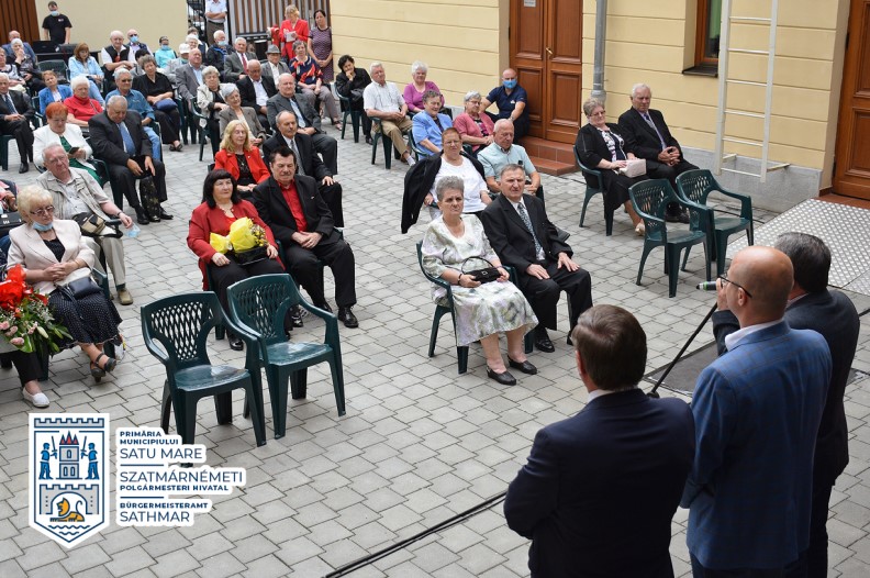 ,,De fiecare dată acest eveniment este unul emoționat și sunt sigur că și seniorii trăiesc momente deosebite în cadrul acestei festivități de premiere, de accea am încercat să facem tot posibilul să îl organizăm, chiar dacă a trebuie să ne adaptăm unor noi reguli! I-am felicitat pentru tot ceea ce au realizat pentru comunitatea sătmăreană și le-am urat multă sănătate! Mă bucur că din 2016 și până în prezent am premiat 82 de cupluri care au aniversat 60 de ani de căsătorie și 601 de cupluri cu 50 de ani de căsătorie, semn că avem o comunitate puternică de seniori în care valorile familiei sunt respectate!", a declarat primarul Kereskényi Gábor.