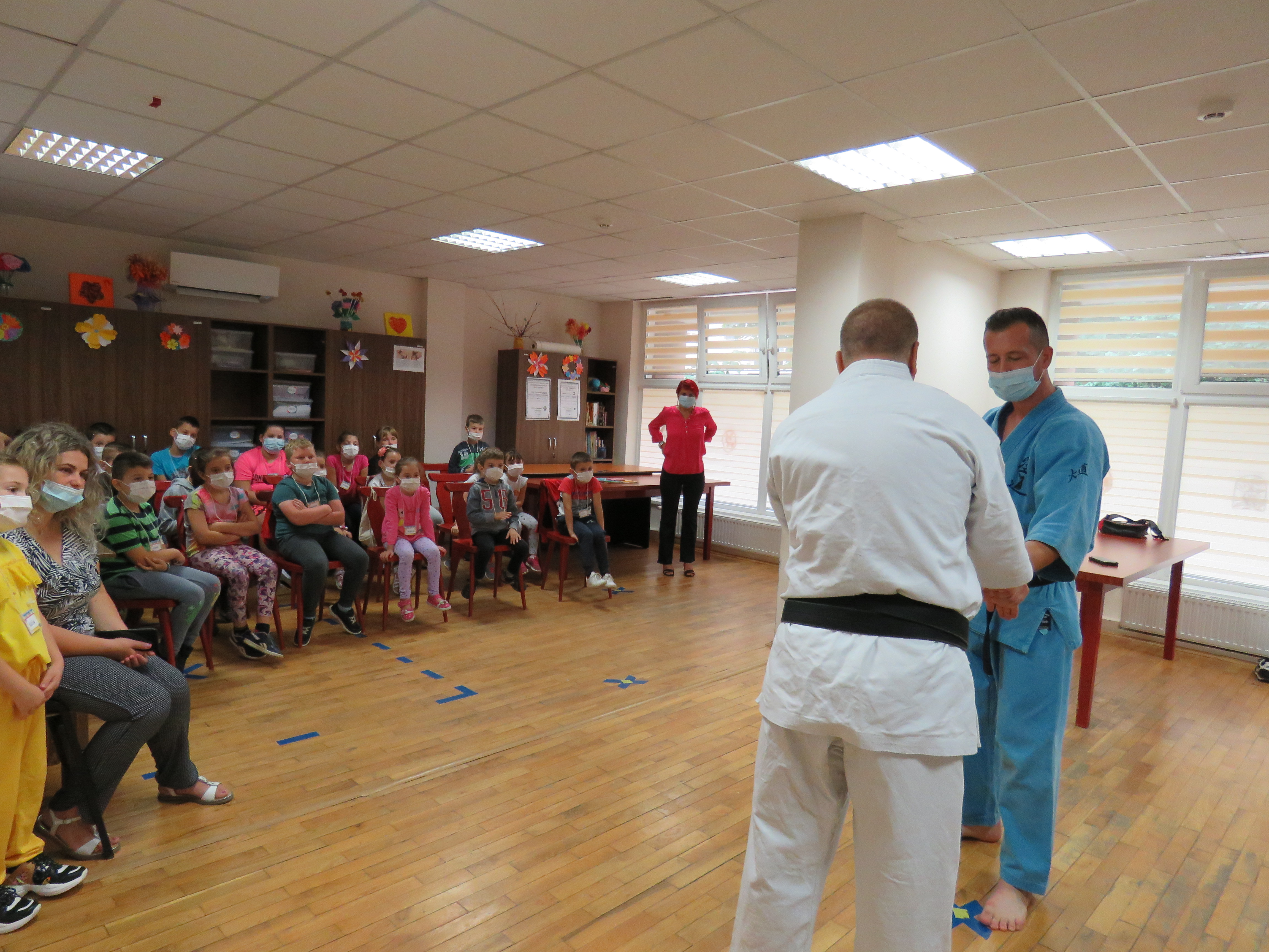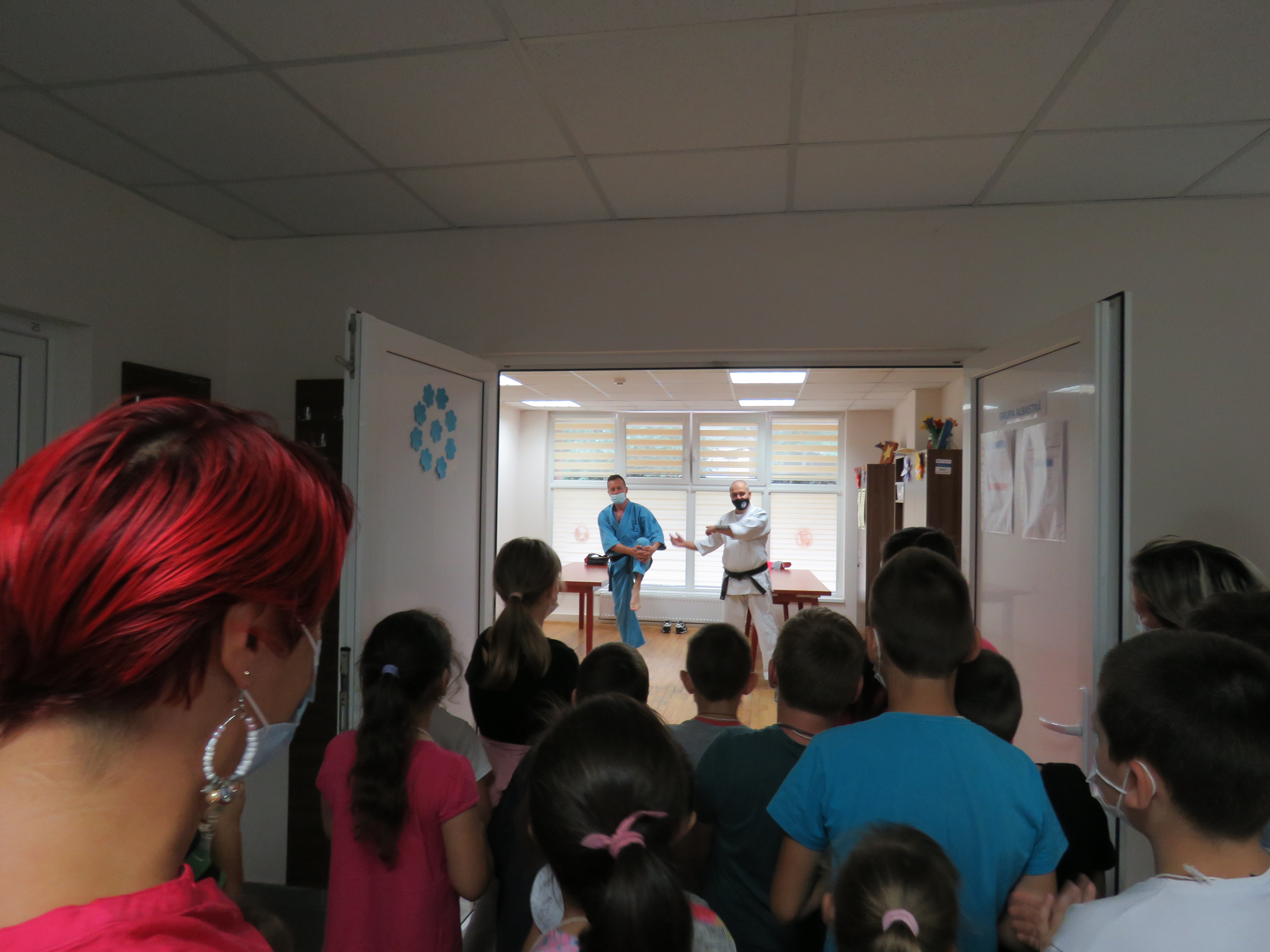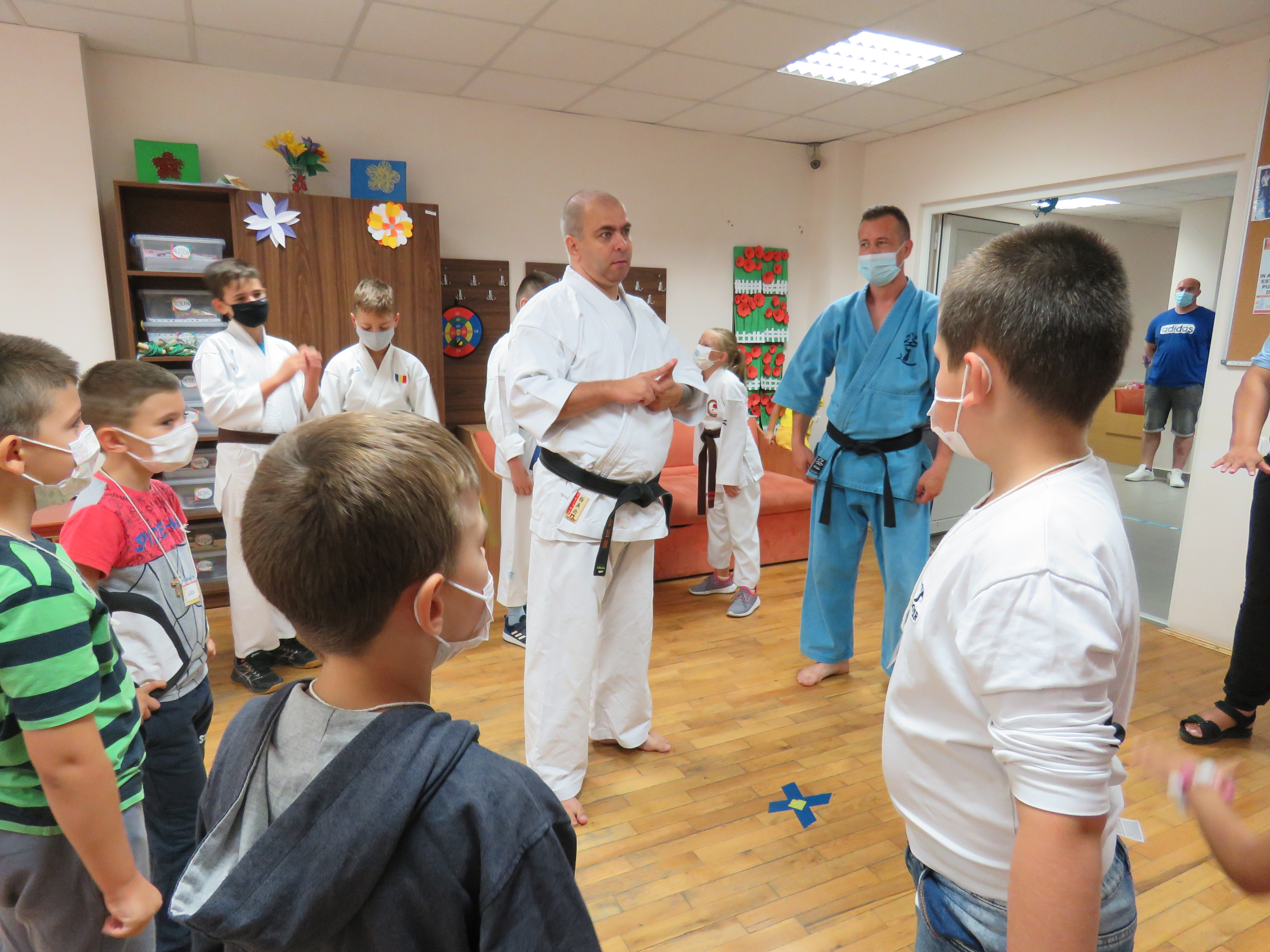 Oaspeții noștri ne-au prezentat acest sport într-un stil care ne-a impresionat pe toți, și pe cei mari și, vă imaginați desigur că și pe cei mici. Ne-am bucurat să asistăm la diferite demonstrații, exerciții și explicații, toate puse în practică pe înțelesul copiilor prin stilul karate – Shotokan tradițional, cu tehnici de bază, forme de lupte și tehnici de autoapărare. Prin această activitate le-au fost transmise copiilor câteva tehnici practice de autoapărare pentru siguranța lor în diferite contexte. Au învățat de asemenea modalități prin care se raporta la situații de conflict și violență.