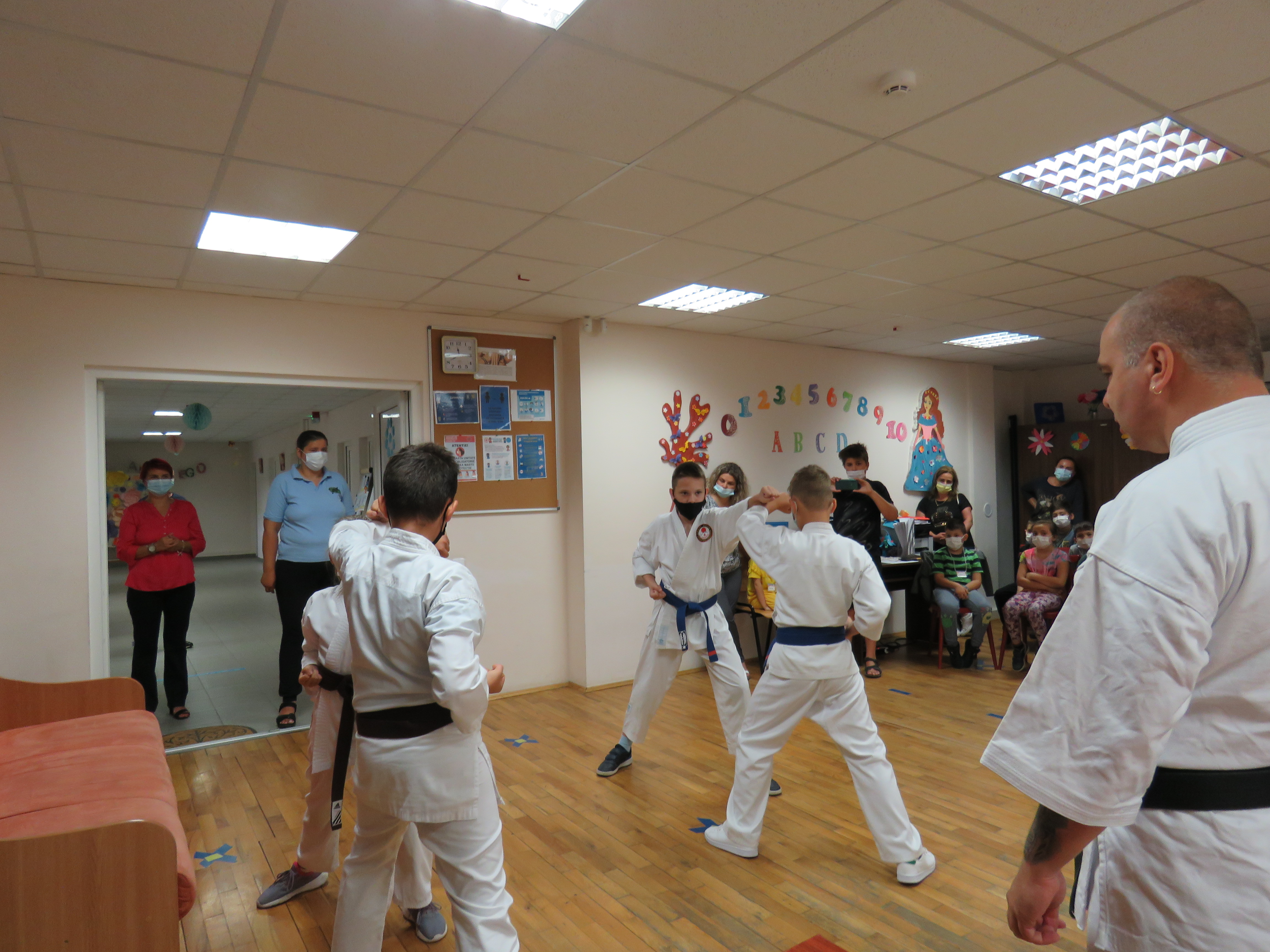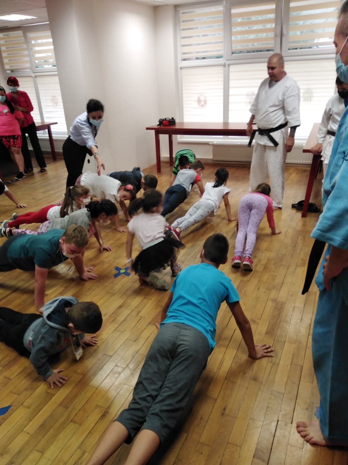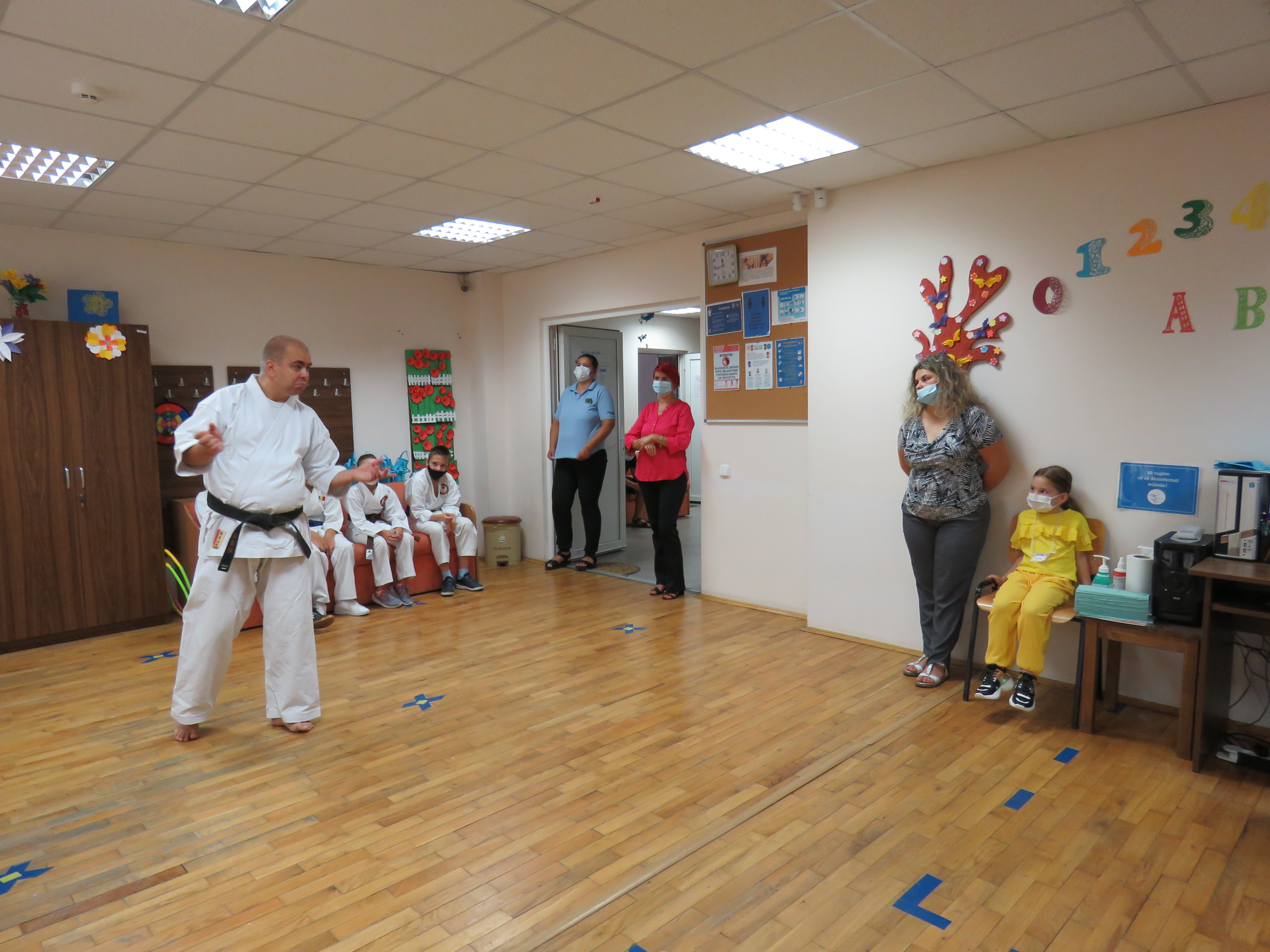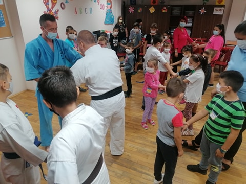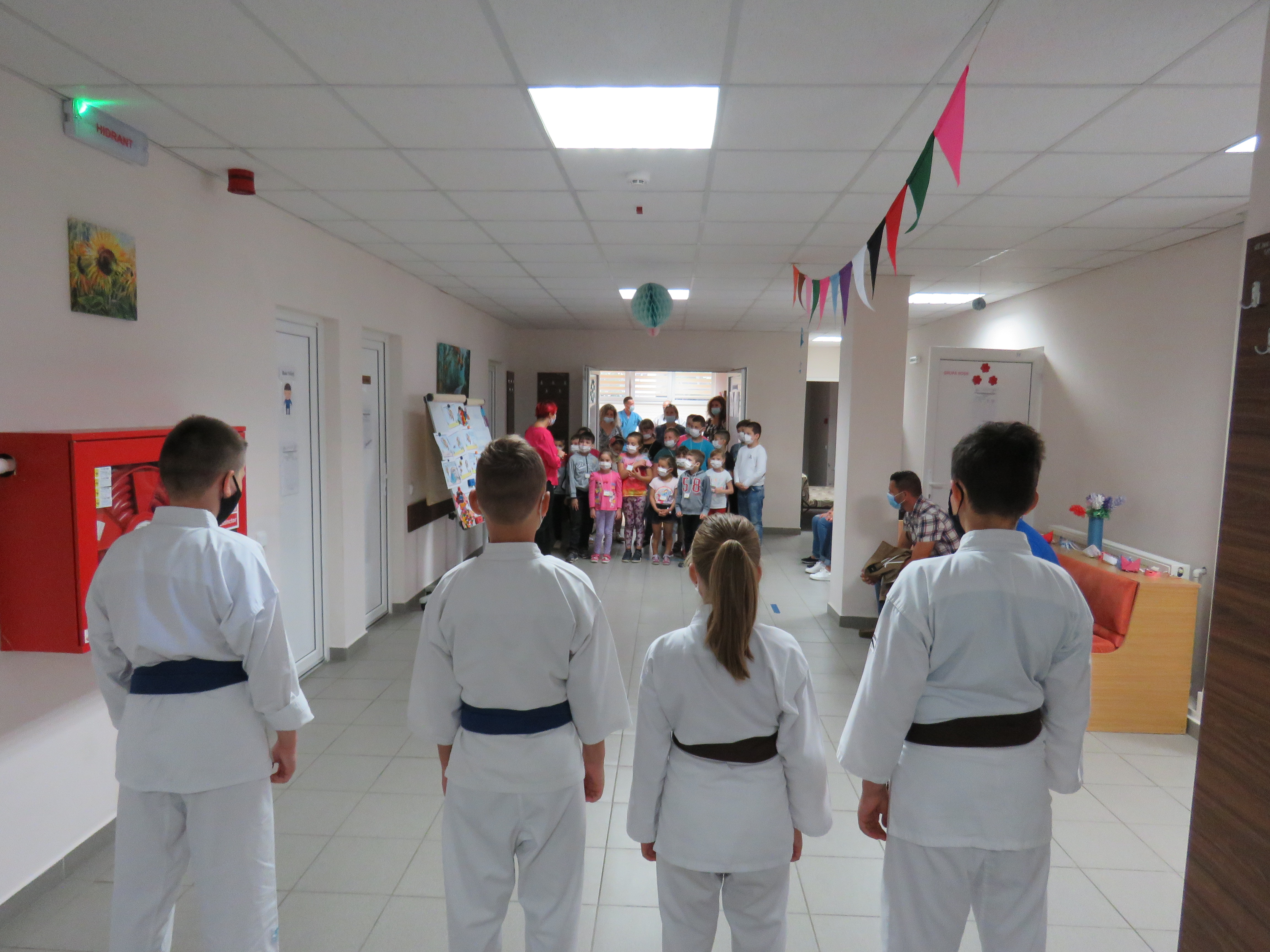 Oaspeții noștri ne-au prezentat acest sport într-un stil care ne-a impresionat pe toți, și pe cei mari și, vă imaginați desigur că și pe cei mici. Ne-am bucurat să asistăm la diferite demonstrații, exerciții și explicații, toate puse în practică pe înțelesul copiilor prin stilul karate – Shotokan tradițional, cu tehnici de bază, forme de lupte și tehnici de autoapărare. Prin această activitate le-au fost transmise copiilor câteva tehnici practice de autoapărare pentru siguranța lor în diferite contexte. Au învățat de asemenea modalități prin care se raporta la situații de conflict și violență.