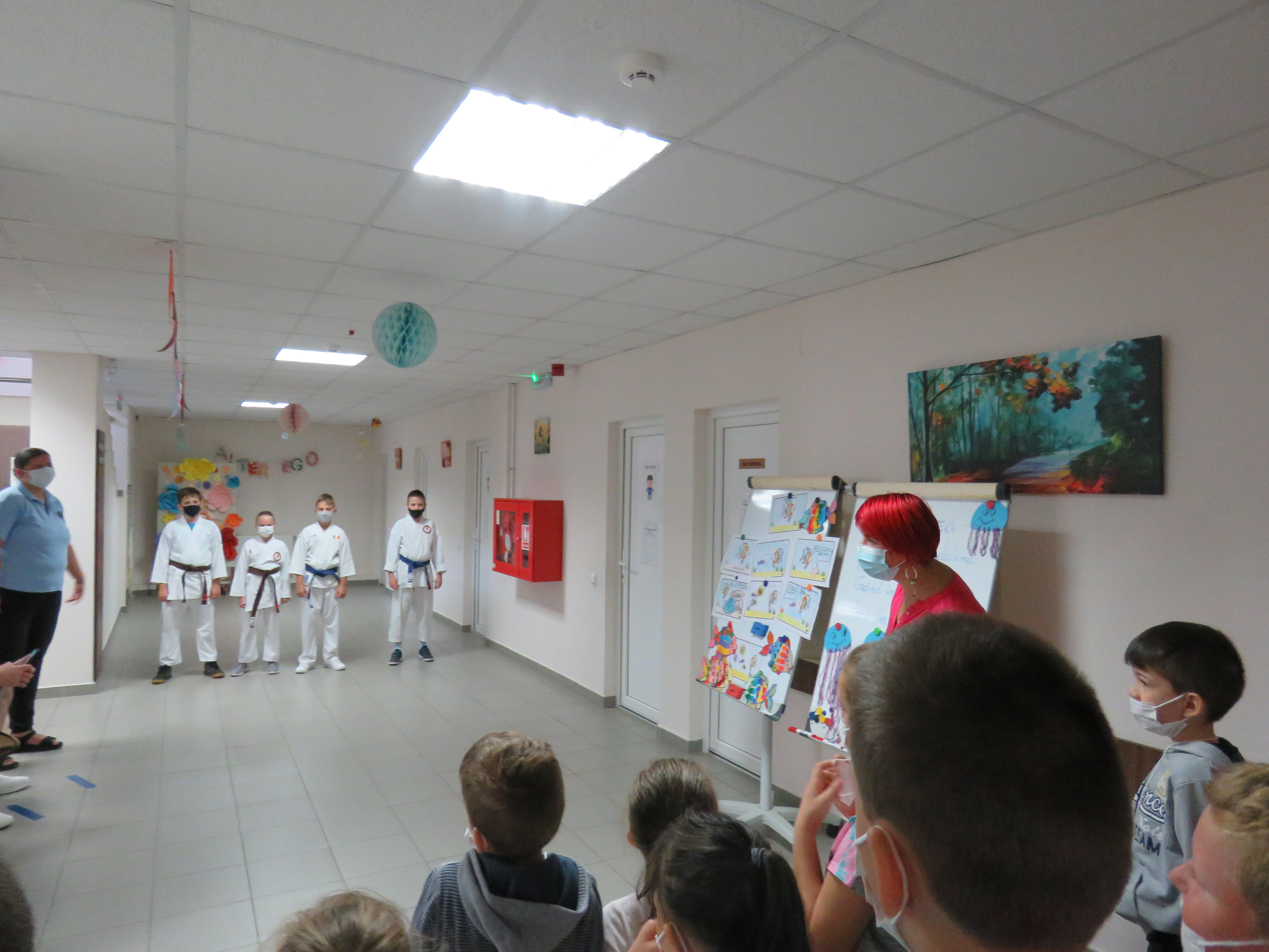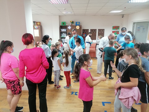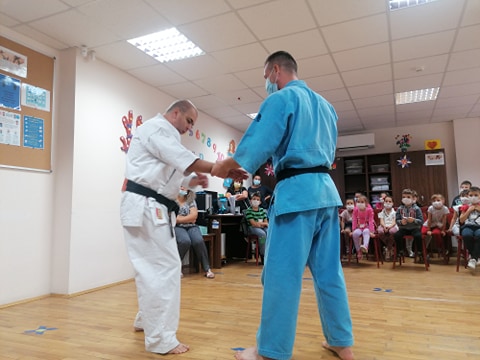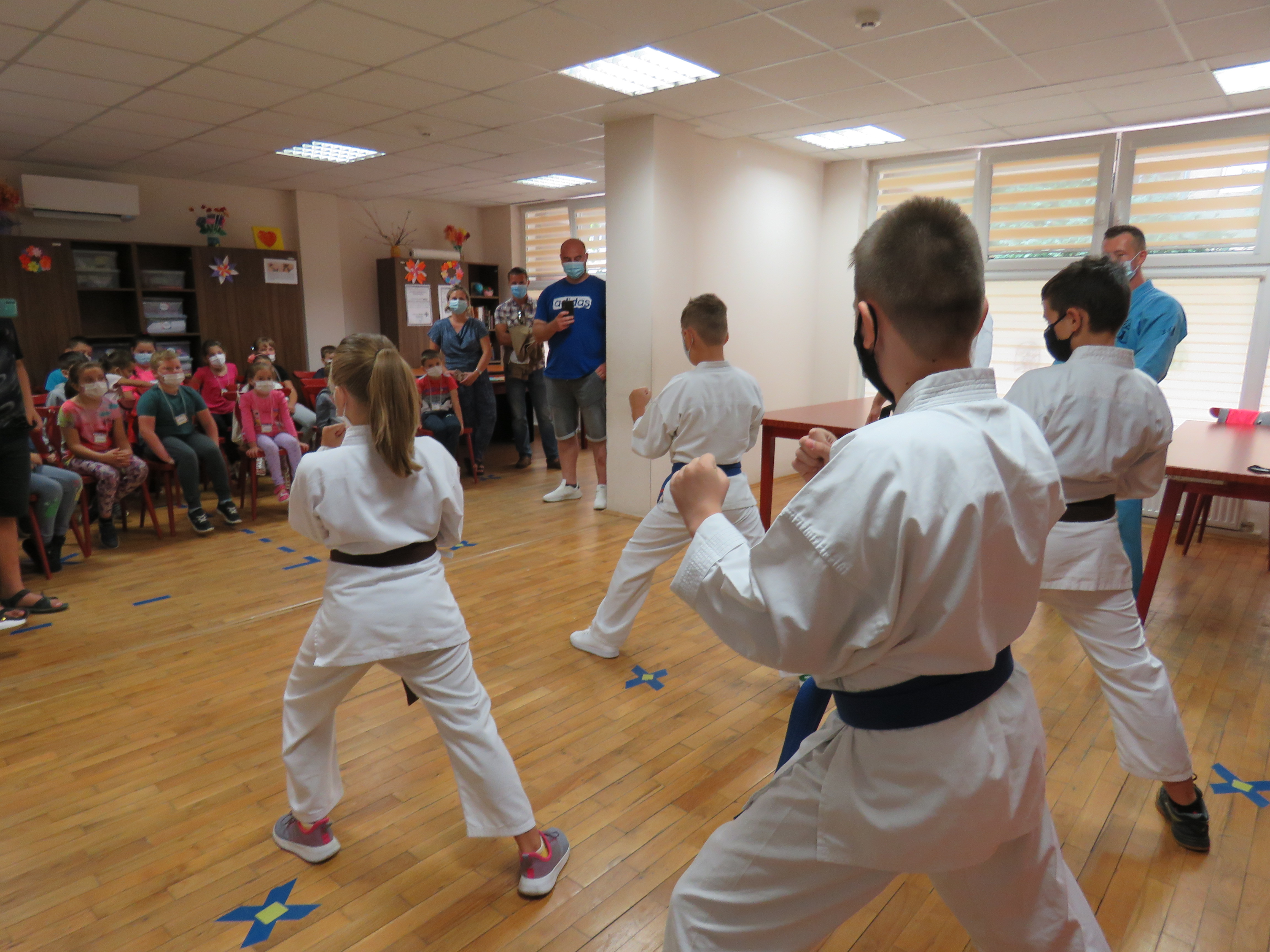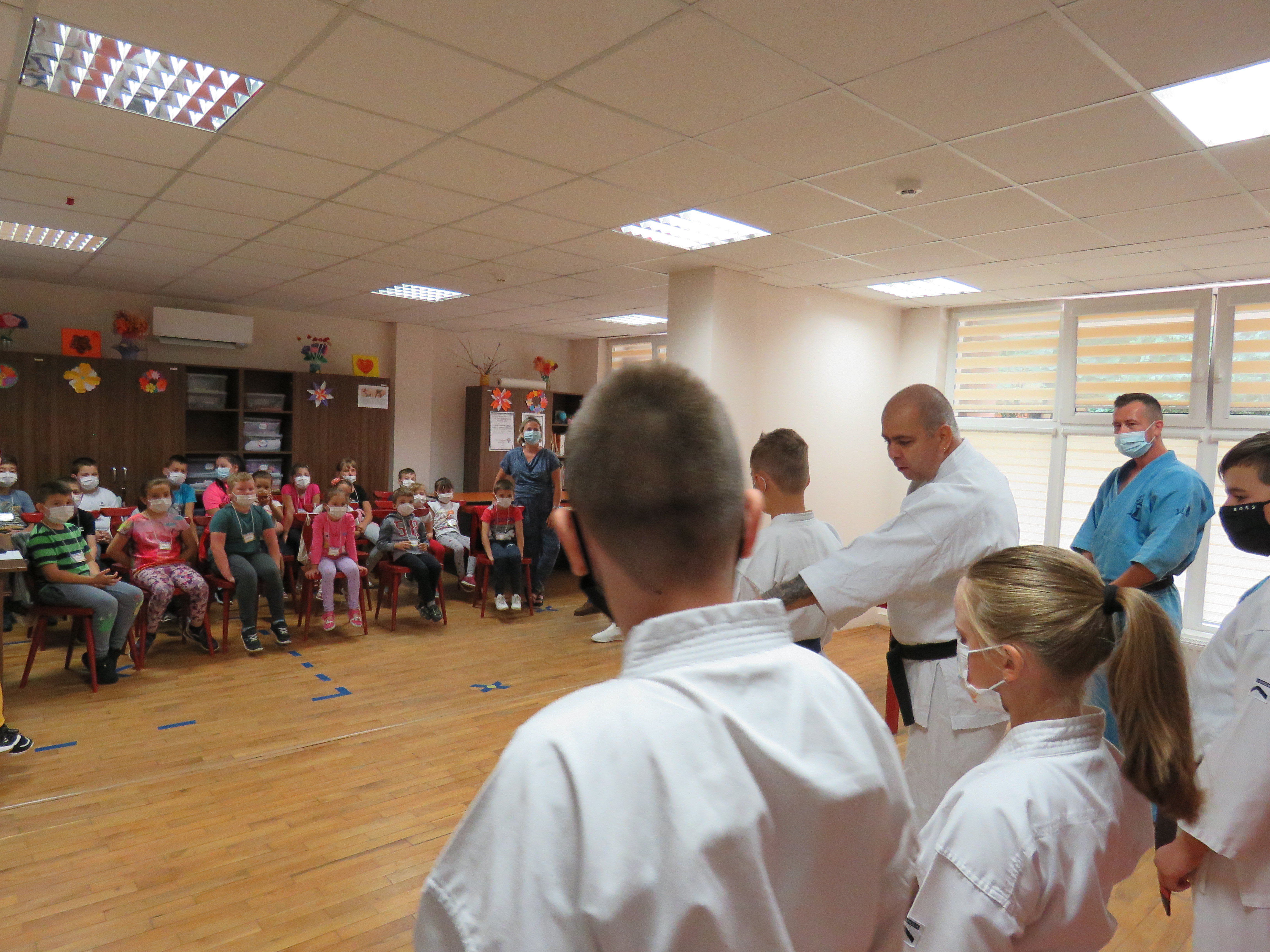 Oaspeții noștri ne-au prezentat acest sport într-un stil care ne-a impresionat pe toți, și pe cei mari și, vă imaginați desigur că și pe cei mici. Ne-am bucurat să asistăm la diferite demonstrații, exerciții și explicații, toate puse în practică pe înțelesul copiilor prin stilul karate – Shotokan tradițional, cu tehnici de bază, forme de lupte și tehnici de autoapărare. Prin această activitate le-au fost transmise copiilor câteva tehnici practice de autoapărare pentru siguranța lor în diferite contexte. Au învățat de asemenea modalități prin care se raporta la situații de conflict și violență.