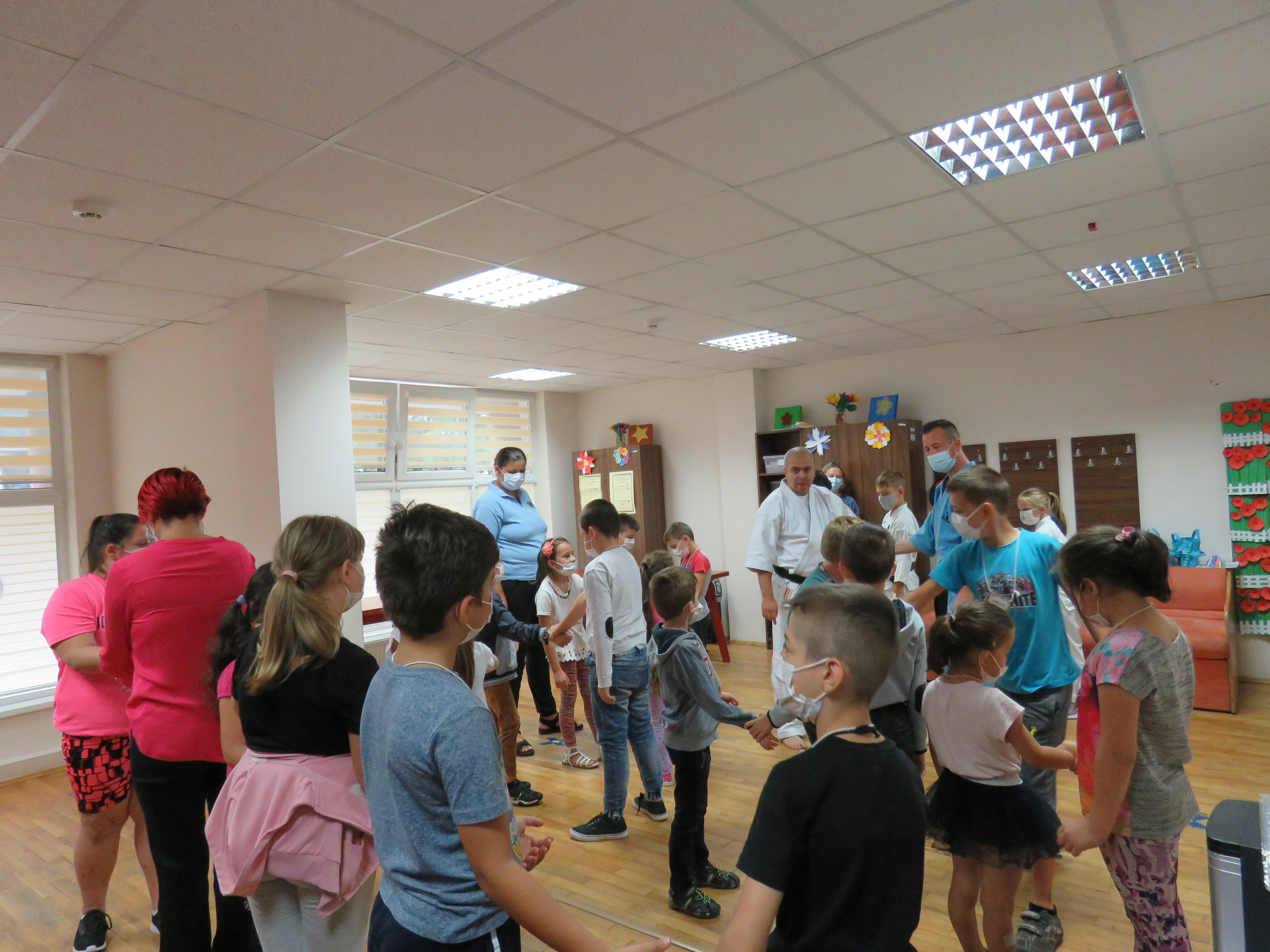 Ziua de azi a fost una specială pentru că le-am avut alături de noi pe Cms. Liviana Chiorean din cadrul Inspectoratului de Poliție Județean Satu Mare și pe specialistul în prevenire din cadrul Centrului de Prevenire, Evaluare și Consiliere Antidrog, Câmpan Beatrix Pușa. Fiecare întâlnire cu aceste doamne implicate trup și suflet în tot ceea ce fac este una care ne lasă amintiri plăcute. Așa a fost și azi pentru că ne-am bucurat de invitați speciali, alături de Cms. Liviana Chiorean și specialista Câmpan Beatrix Pușa fiind prezenți la noi în centru reprezentanți ai A.C.S. de Arte Marțiale OKINAWA: Sensei- Nyesti Csaba și Sensei- Balog Zsolt, care au venit însoțiți de patru copii talentați la karate.