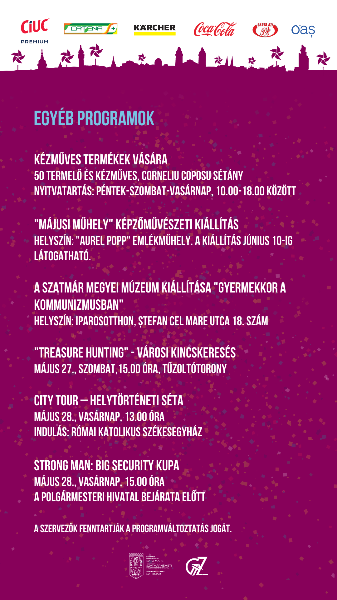 50 termelő és kézműves, Corneliu Coposu sétány; Nyitvatartás: péntek–szombat–vasárnap, 10.00–18.00 között