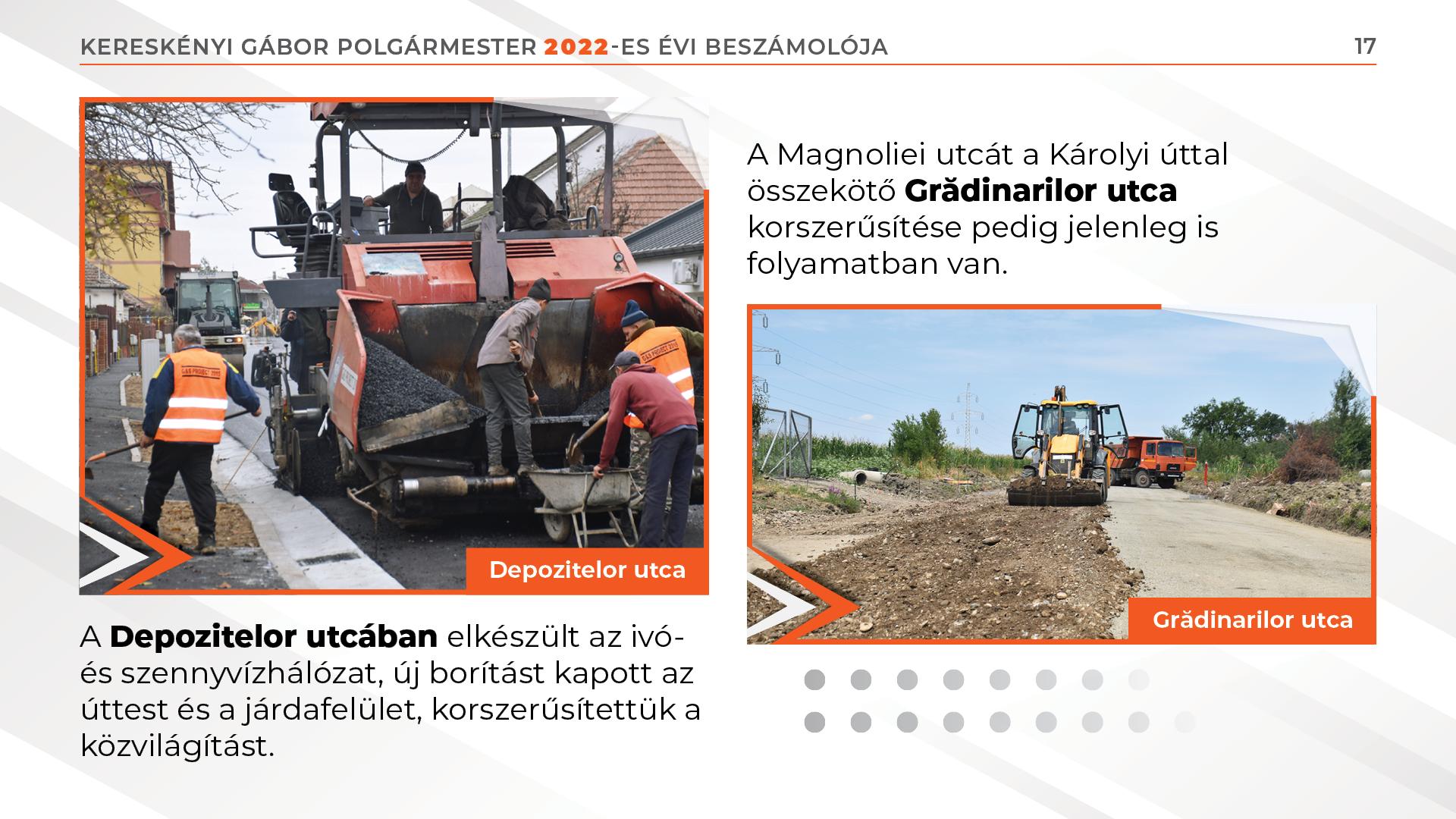 A Magnoliei utcát a Károlyi úttal összekötő Grădinarilor utca korszerűsítése pedig jelenleg is folyamatban van.