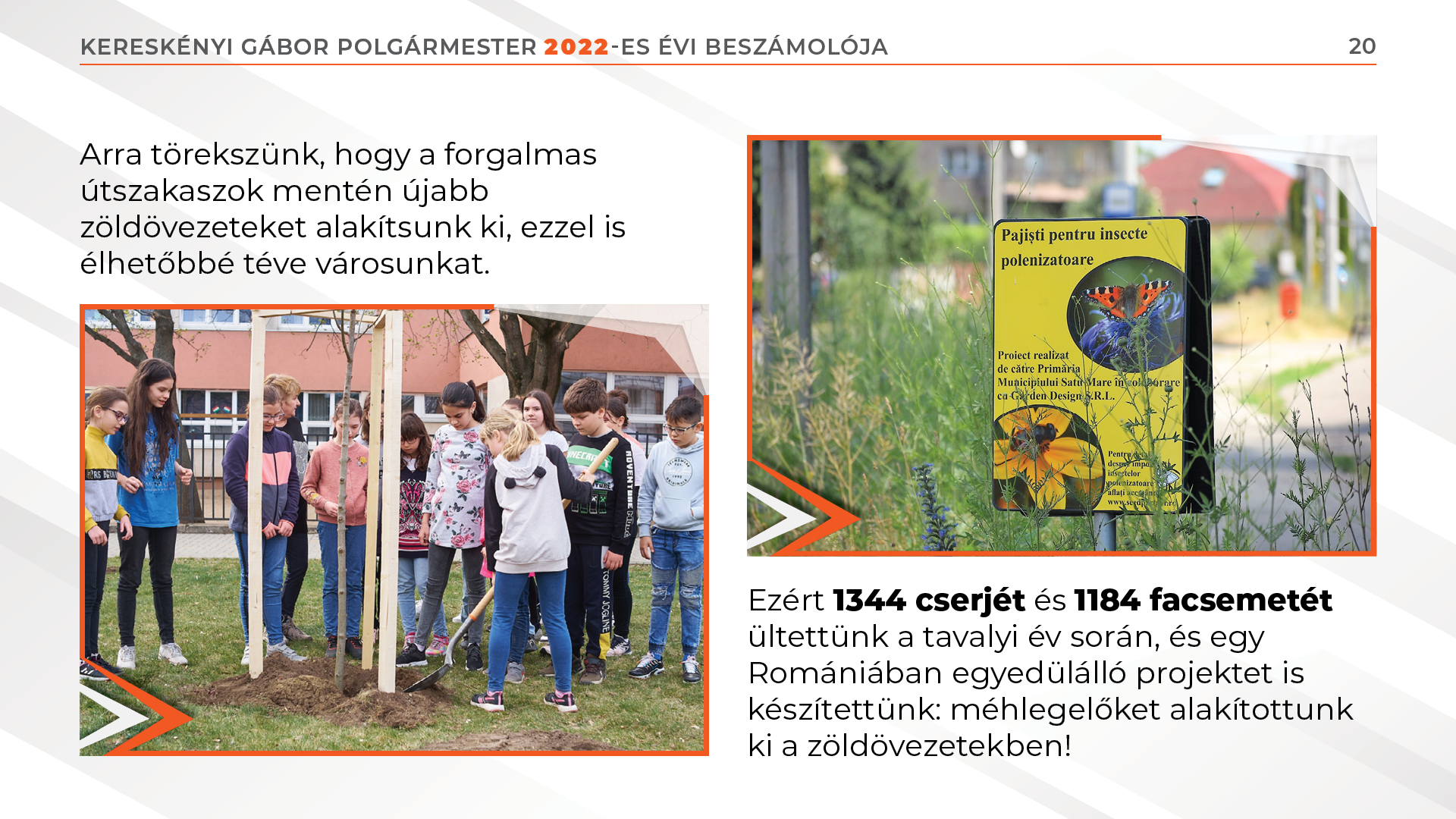 Ezért 1344 cserjét és 1184 facsemetét ültettünk a tavalyi év során, és egy Romániában egyedülálló projektet is készítettünk: méhlegelőket alakítottunk ki a zöldövezetekben!