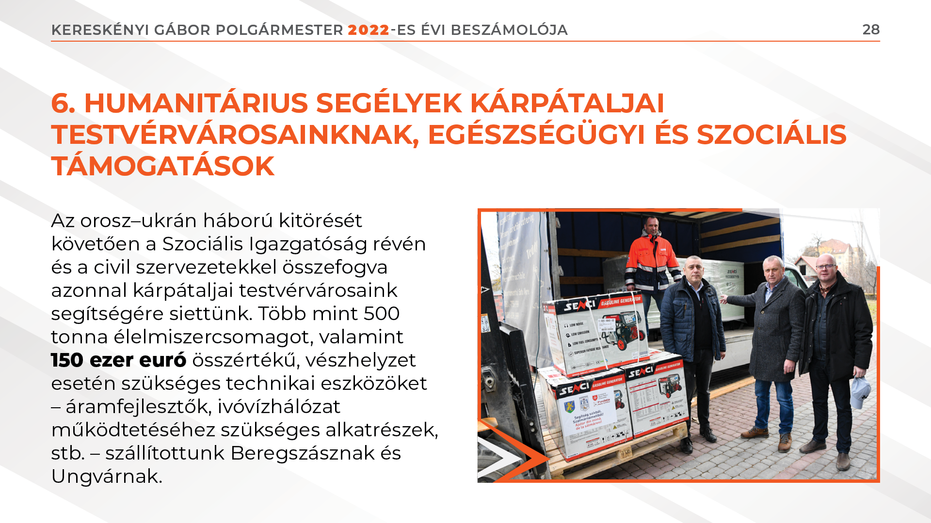6. Humanitárius segélyek kárpátaljai testvérvárosainknak, egészségügyi és szociális támogatások