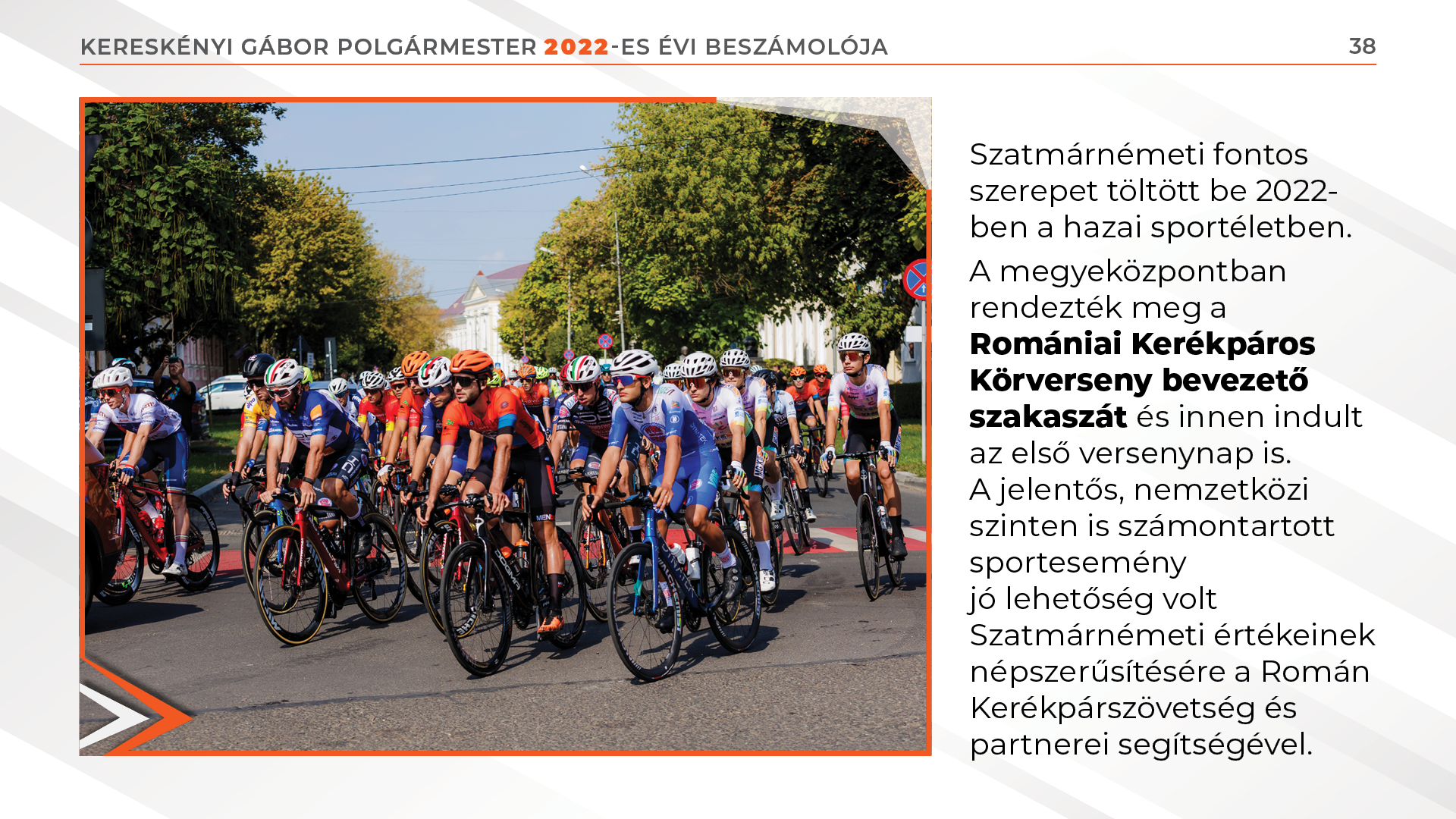 A megyeközpontban rendezték meg a Romániai Kerékpáros Körverseny bevezető szakaszát és innen indult az első versenynap is. A jelentős, nemzetközi szinten is számontartott sportesemény jó lehetőség volt Szatmárnémeti értékeinek népszerűsítésére a Román Kerékpárszövetség és partnerei segítségével. 650 ezer lej értékű, vissza nem térítendő támogatást biztosítottunk, ezáltal számos kulturális, ifjúsági és sportprojekt megszervezésében voltunk partnerei a civil szervezeteknek.
