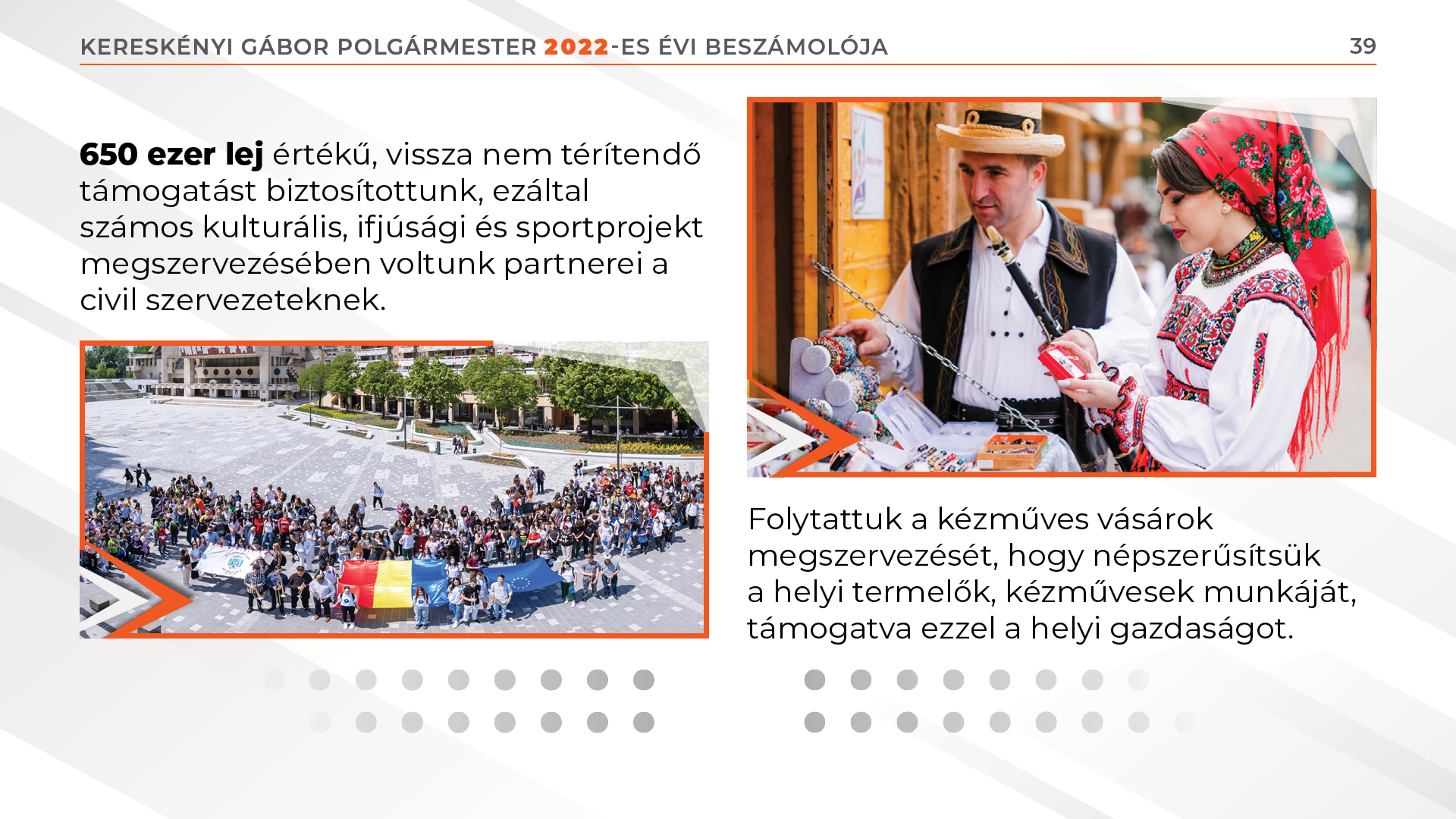 Folytattuk a kézműves vásárok megszervezését, hogy népszerűsítsük a helyi termelők, kézművesek munkáját, támogatva ezzel a helyi gazdaságot.