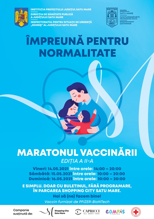 Regisztráció nélkül folytatódik az oltási maraton Szatmárnémetiben a Károlyi út 17. szám alatt található Szatmárnémeti Shopping City bevásárlóközpont parkolójában.