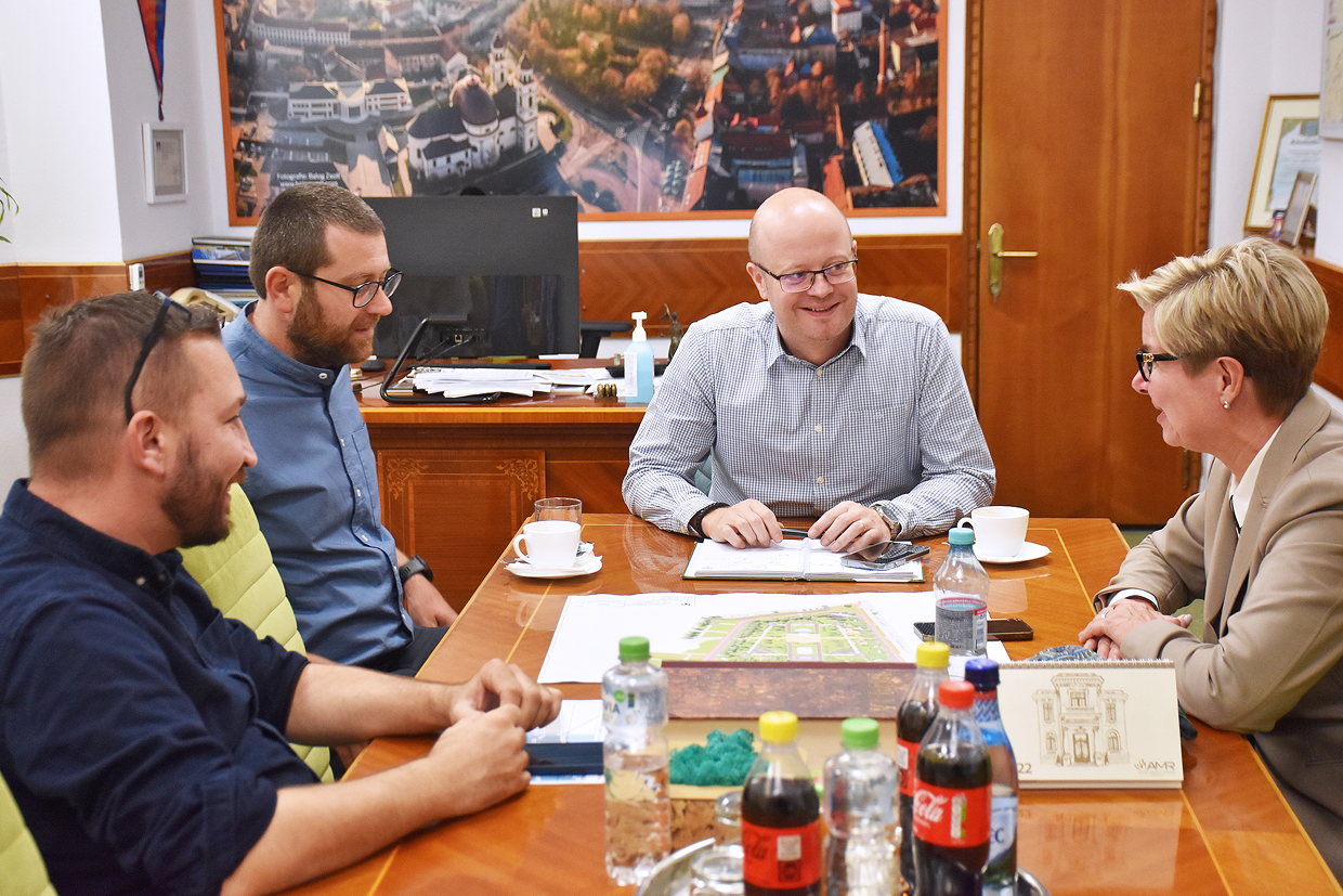 A Polgármesteri Hivatalban megtartott találkozón Kereskényi Gábor polgármesterrel egyeztettek a kortárs építészet egyik leendő legszebb romániai épületéről, az Országos Helyreállítási Tervből finanszírozott Kényszeriparosítás Múzeumáról, az energiahatékonyság növelését célzó pályázatokról, valamint a következő időszak európai uniós finanszírozási lehetőségeiről.