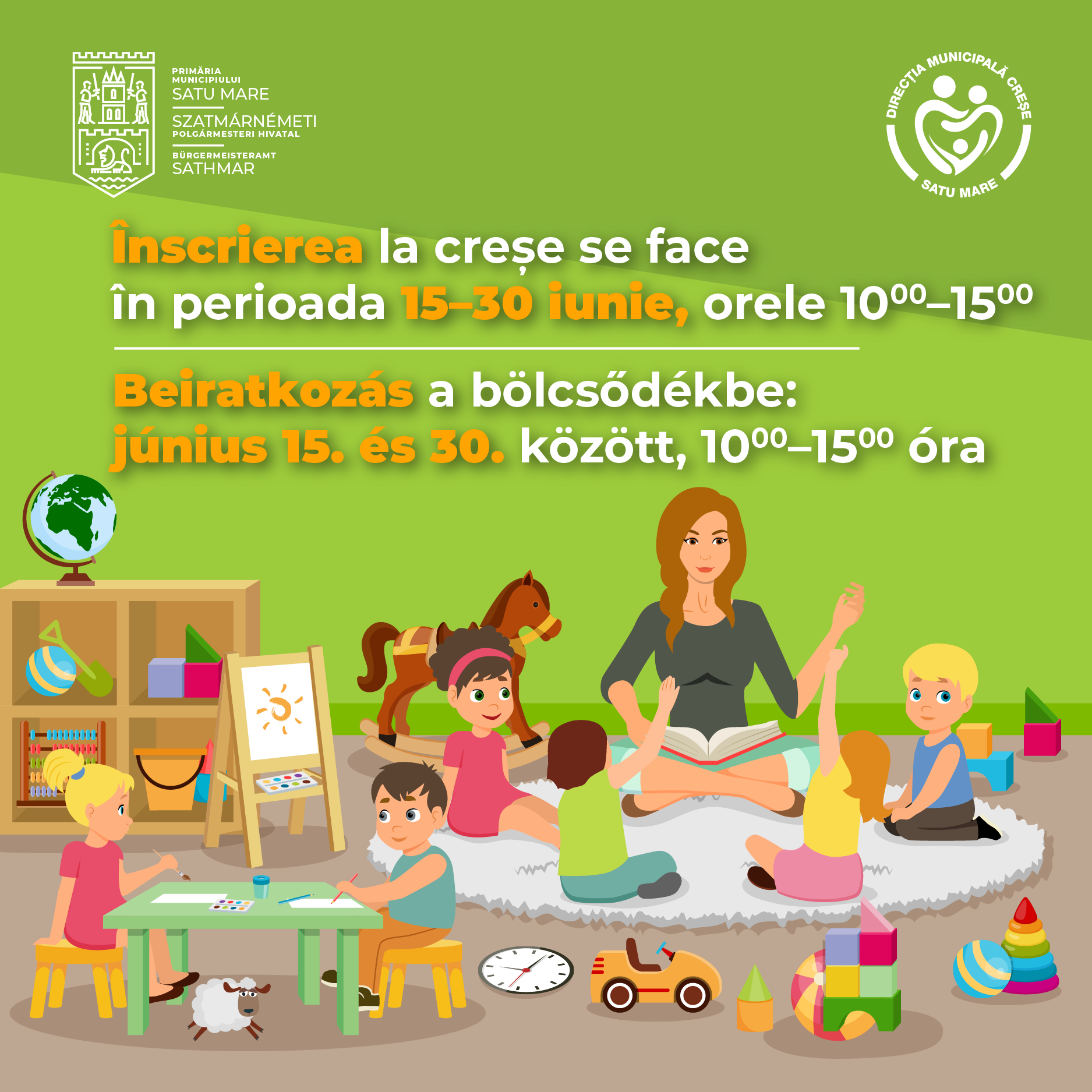 Notă: Informații cu privire la înscrierea copiilor antepreșcolari la creșele Dumbrava Minunată, Păpădia-Pitypang și Rază de Soare-Napsugár se pot obține după cum urmează: