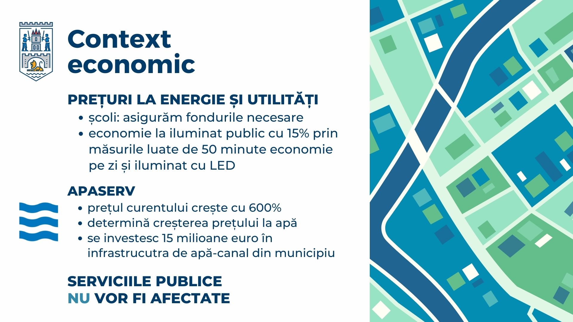 Municipalitatea va asigura fondurile necesare pentru ca elevii și cadrele didactice, precum și procesul educațional să nu fie afectat. Este posibil ca bugetul pentru a acoperi utilitățile să crească chiar și cu 300%, însă Primăria va ține legătura cu directorii școlilor, astfel încât acolo unde sunt probleme să fie găsite soluții rapide, să se preîntâmpine pierderile și să fie gândit un plan de măsuri pentru ca directorii școlilor să fie mult mai atenți la la consum și mai ales să oprească risipa.