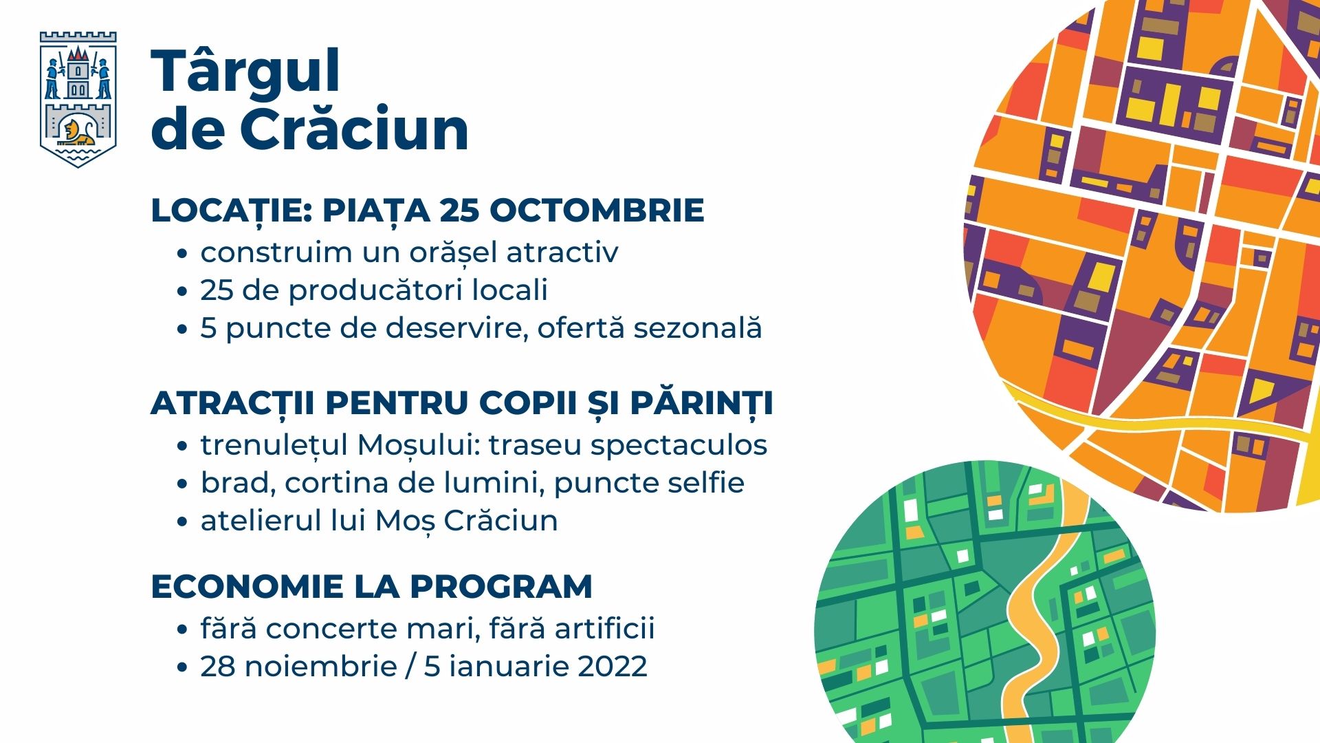 Târgul de Crăciun se va deschide pe 28 noiembrie, o dată cu pornirea iluminatului ornamental.