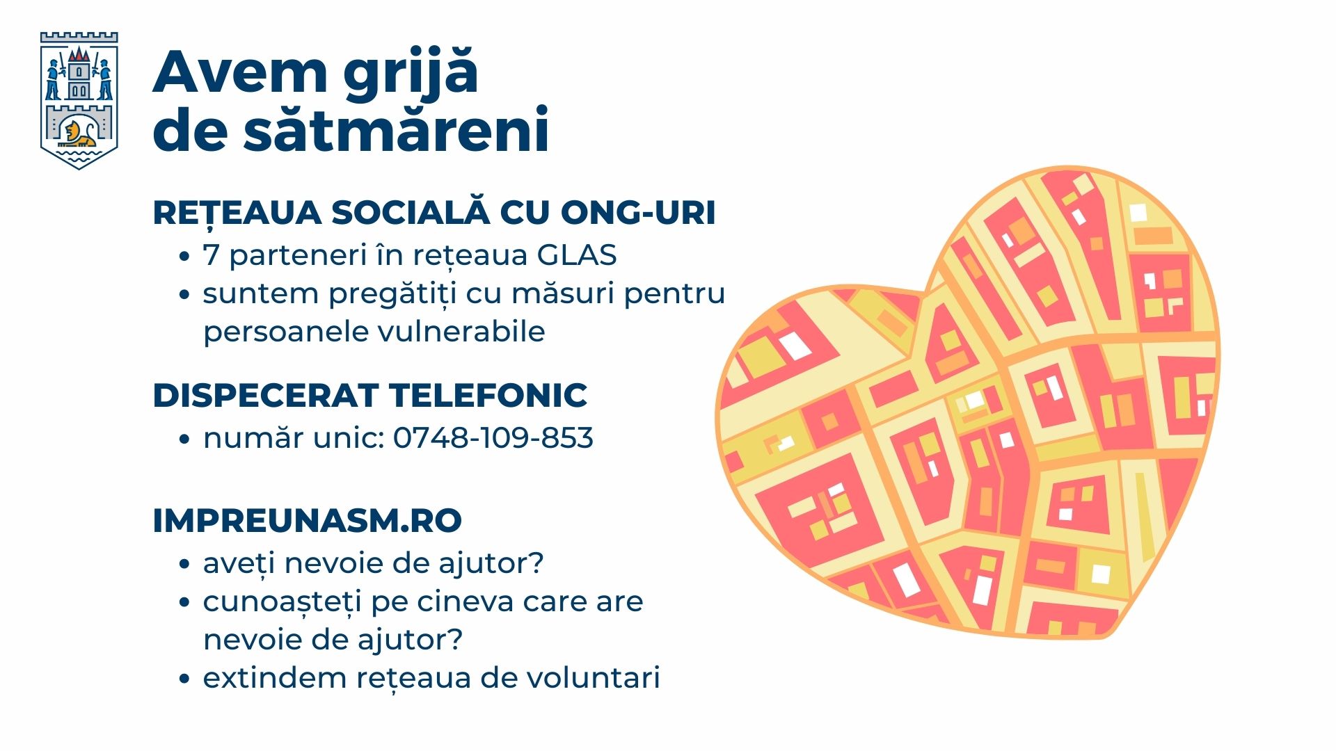 Primăria și Direcția de Asistență Socială au creat un sistem de colaborare în domeniul social între mediul public-mediul privat- ONG-uri și cetățeni prin intermediul platformei online www.impreunasm.ro