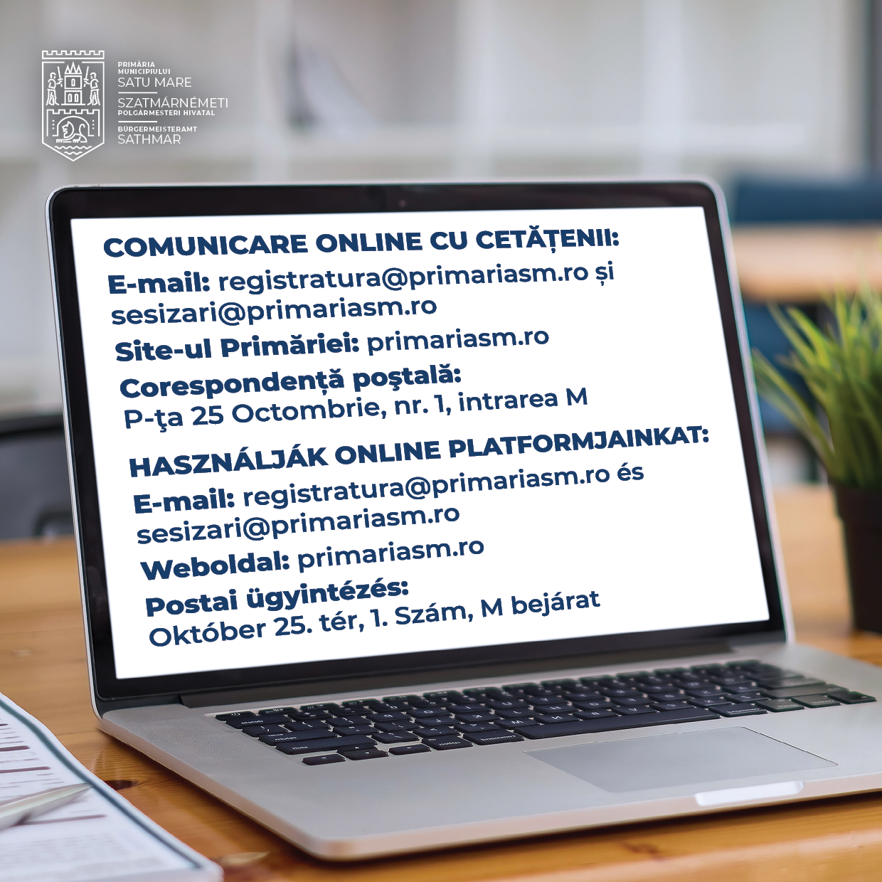 Reamintim cetățenilor că au la dispoziție și comunicarea online sau prin corespondență pentru a depune cereri și a solicita informații despre serviciile publice:
