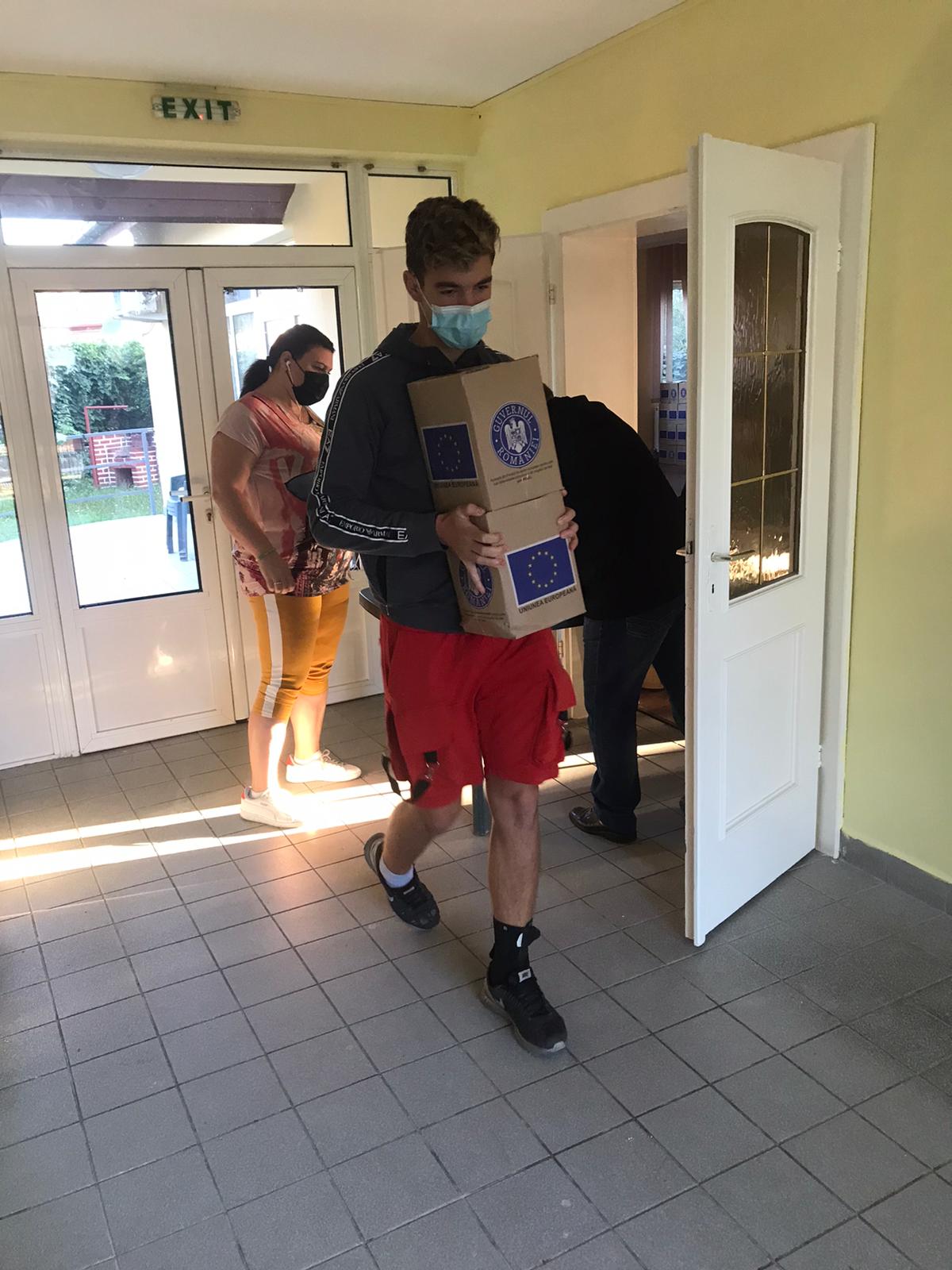 În această etapă a distribuirii ajutoarelor de la Uniunea Europeană, pentru a-i scuti pe beneficiari de un drum în plus, atât produsele de igienă, cât și cele alimentare, se ridică deodată. Distribuirea se face cu sprijinul beneficiarilor de la Adăpostul de noapte și al unor beneficiari de ajutor social.