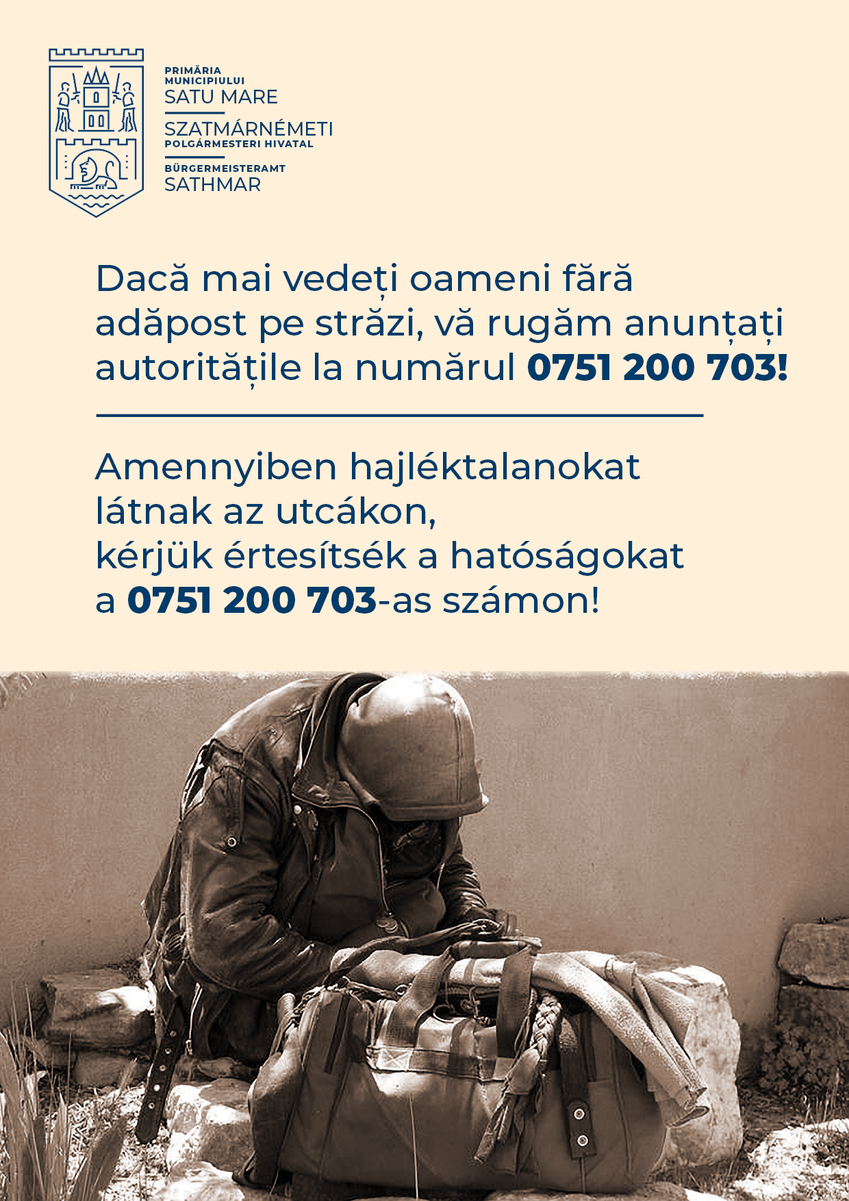 Primăria Municipiului Satu Mare și Direcția de Asistență Socială țin să mulțumească voluntarilor implicați pentru tot ajutorul oferit pentru persoanele fără adăpost!