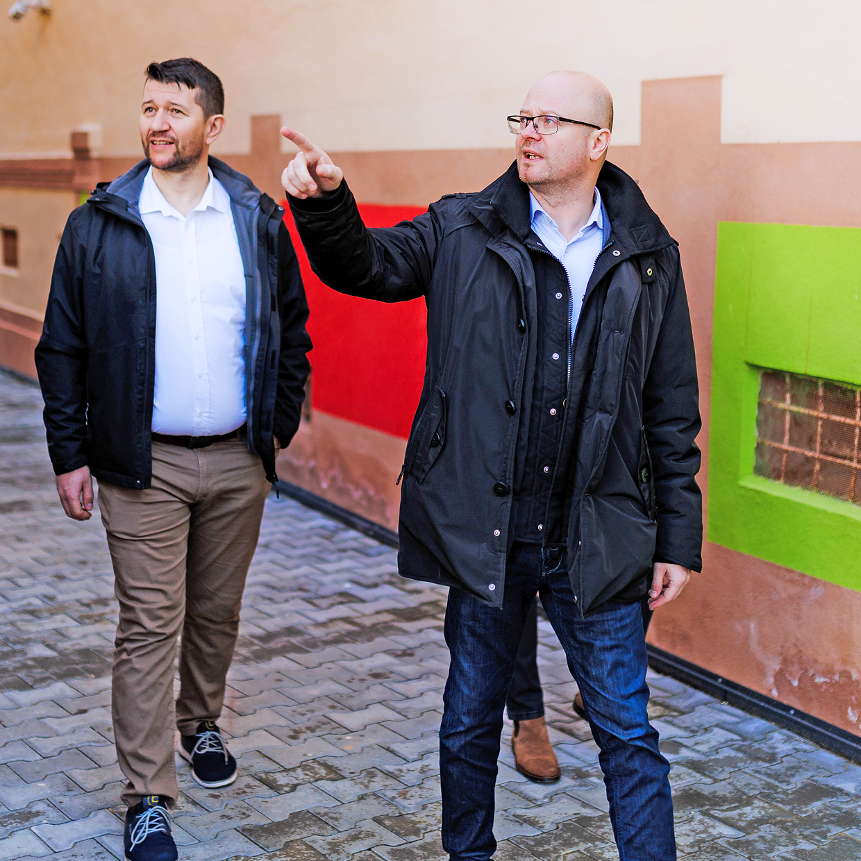 Primarul municipiului Satu Mare, Kereskényi Gábor și administratorul public, Maskulik Csaba au făcut o vizita la grădiniță împreună cu secretarul de stat în cadrul Ministerului Educaţiei, Kallós Zoltán pentru a verifica lucrările realizate.