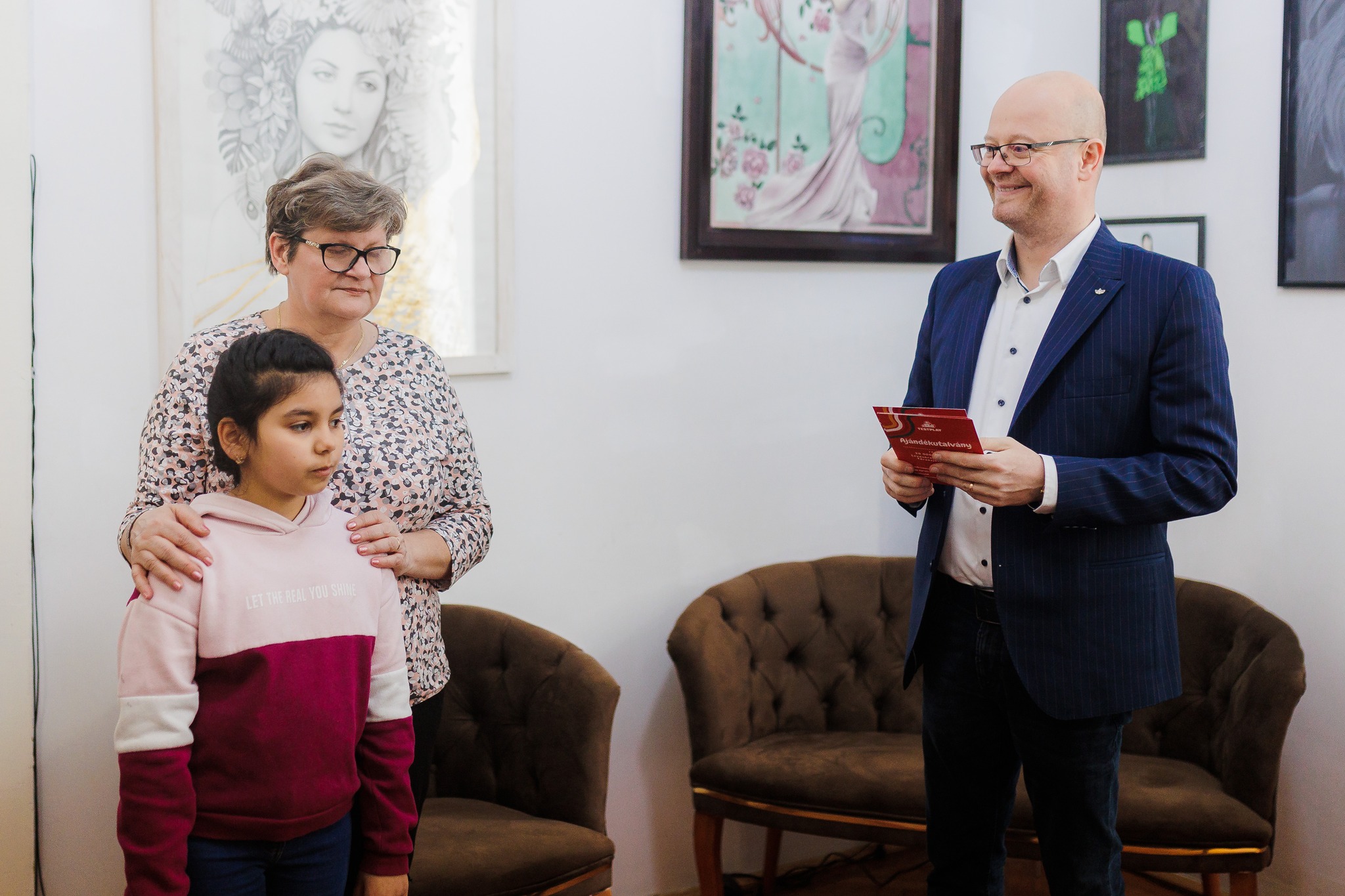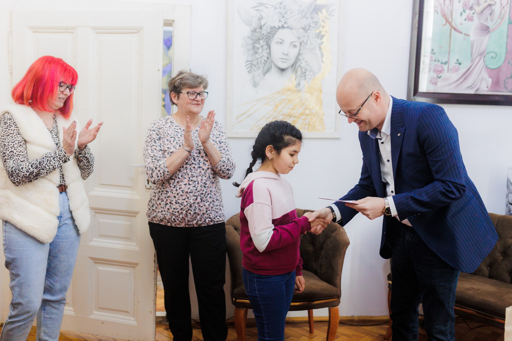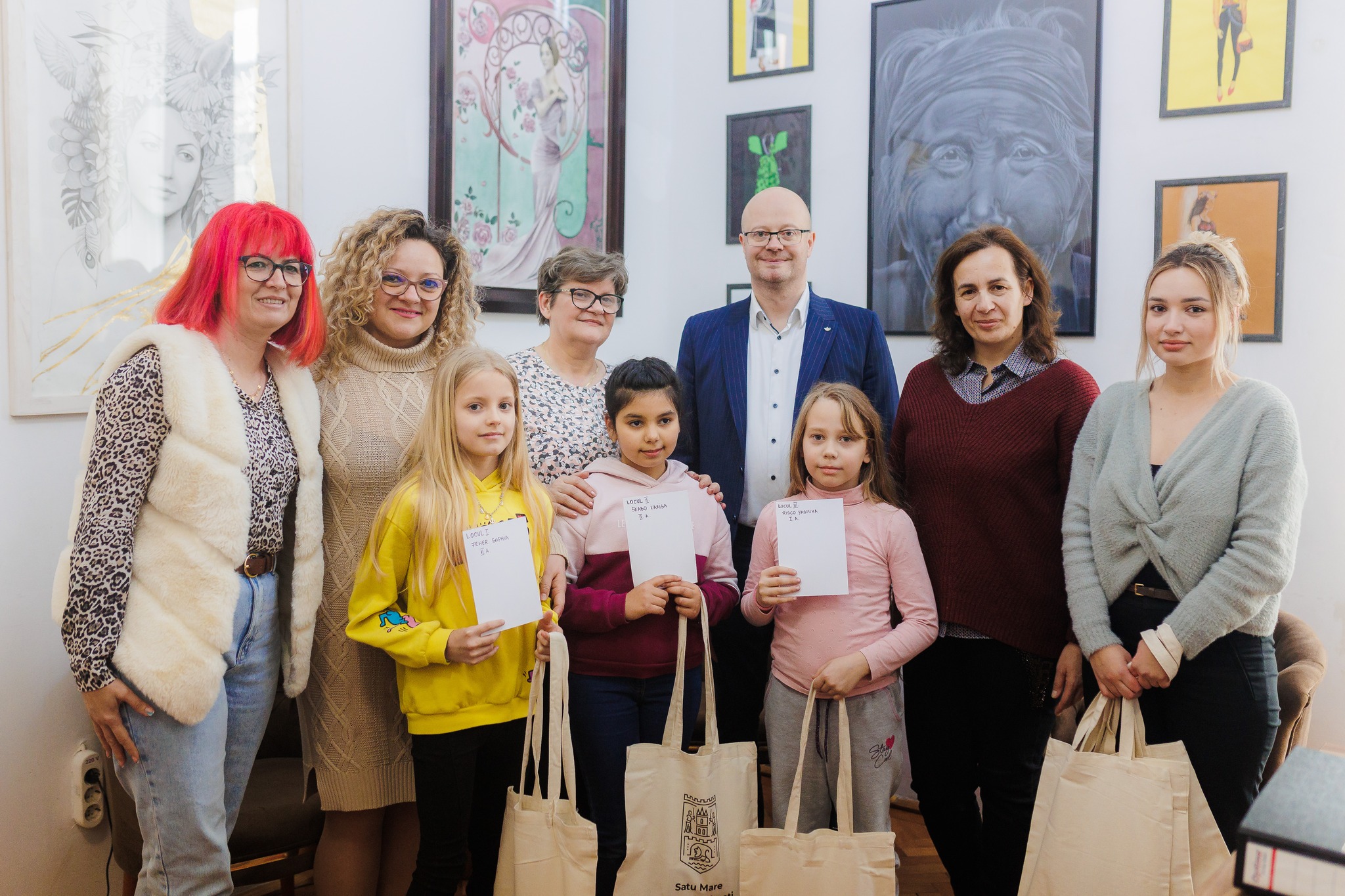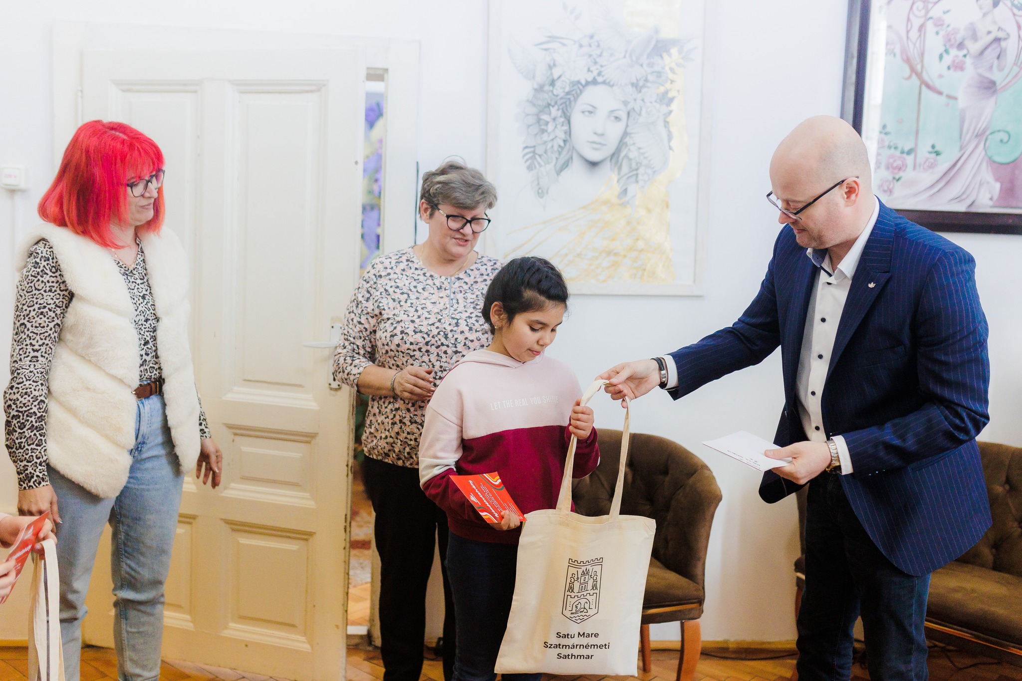 Suntem mândri de copiii noștri! Șase eleve de la Liceul de Arte "Aurel Popp" Satu Mare care au câștigat primele trei locuri la concursul de desen „Poluarea aerului – inamic tăcut", au fost premiate de către primarul municipiului, Kereskényi Gábor.