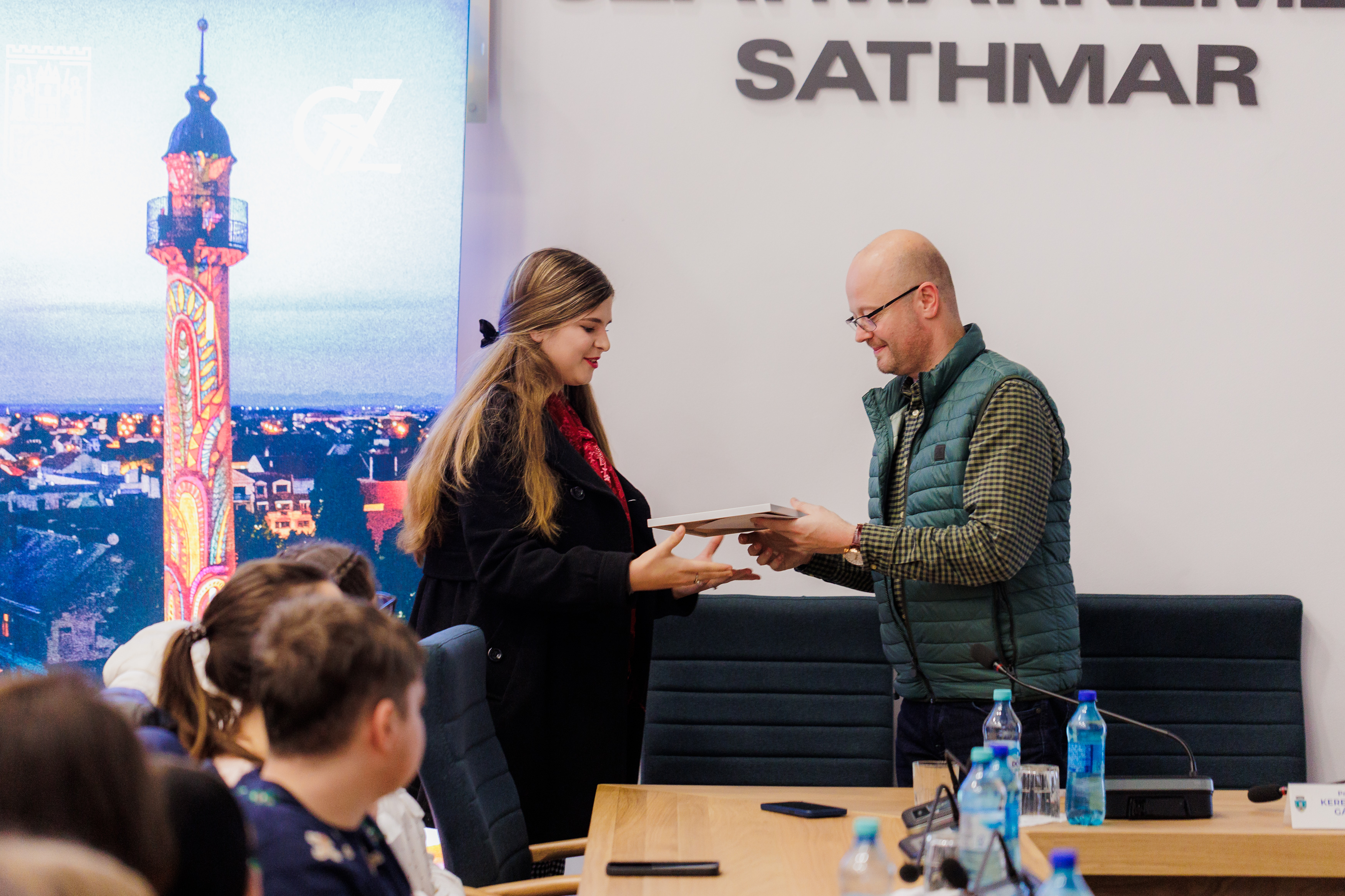 ,,Printre tinerii care s-au implicat în organizarea acestor evenimente, cu multă pasiune și dăruire se află și copilul Dumneavoastră, despre care am doar cuvinte de laudă și apreciere. Puteți fi mândri de el! Munca și implicarea copilului Dumneavoastră au contribuit la reușita evenimentelor noastre și ne dorim ca și pe viitor să fie alături de noi. Promitem să îi oferim și pe viitor experiențe de neuitat, acces la informații care să contribuie la dezvoltarea lui personală și profesională și bineînțeles să îl protejăm, astfel încât să nu fie pus în pericol, iar siguranța lui să fie primordială, indiferent de activitatea la care participă. Satu Mare are nevoie de tineri implicați, iar dezvoltarea orașului nostru se bazează pe educația tinerelor generații. În numele Primăriei Municipiului Satu Mare, a Centrului Cultural ,,G.M.Zamfirescu”, vă mulțumesc pentru că l-ați încurajat pe copilul Dumneavoastră să devină un voluntar implicat, cu care noi toți trebuie să ne mândrim!”, a transmis primarul municipiului Satu Mare, Kereskényi Gábor.
