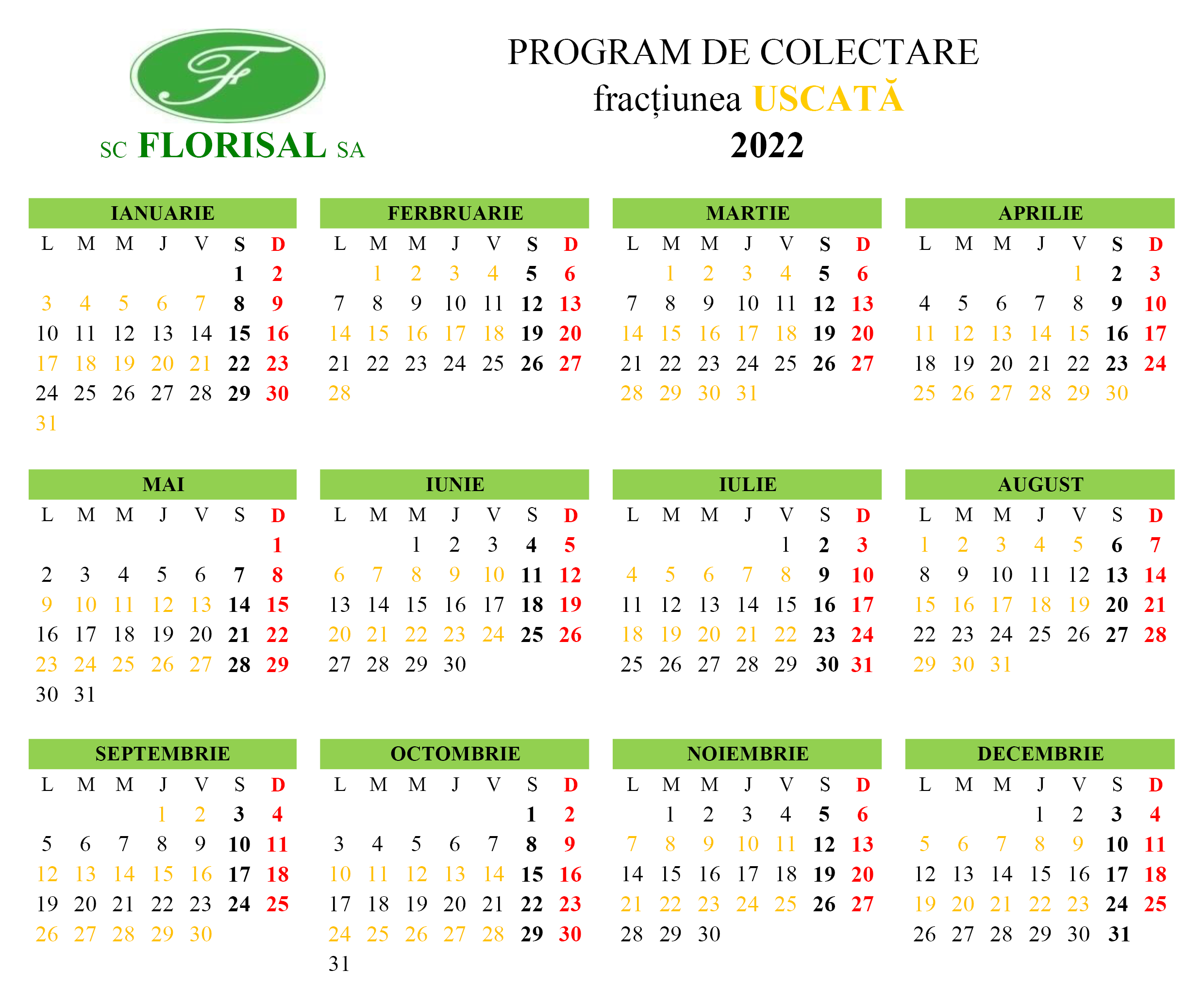 Stimați sătmăreni, vă aducem la cunoștință programul de colectare al fracțiunii uscate, de la case. Ca și până acum, colectarea fracției uscate se descfășoară în săptămânile impare ale anului, între orele 7.00 – 15.00. Pentru detalii și informații suplimentare, vă rugăm să luați legătura cu operatorul de salubrizare: +40 (261) 710 159.