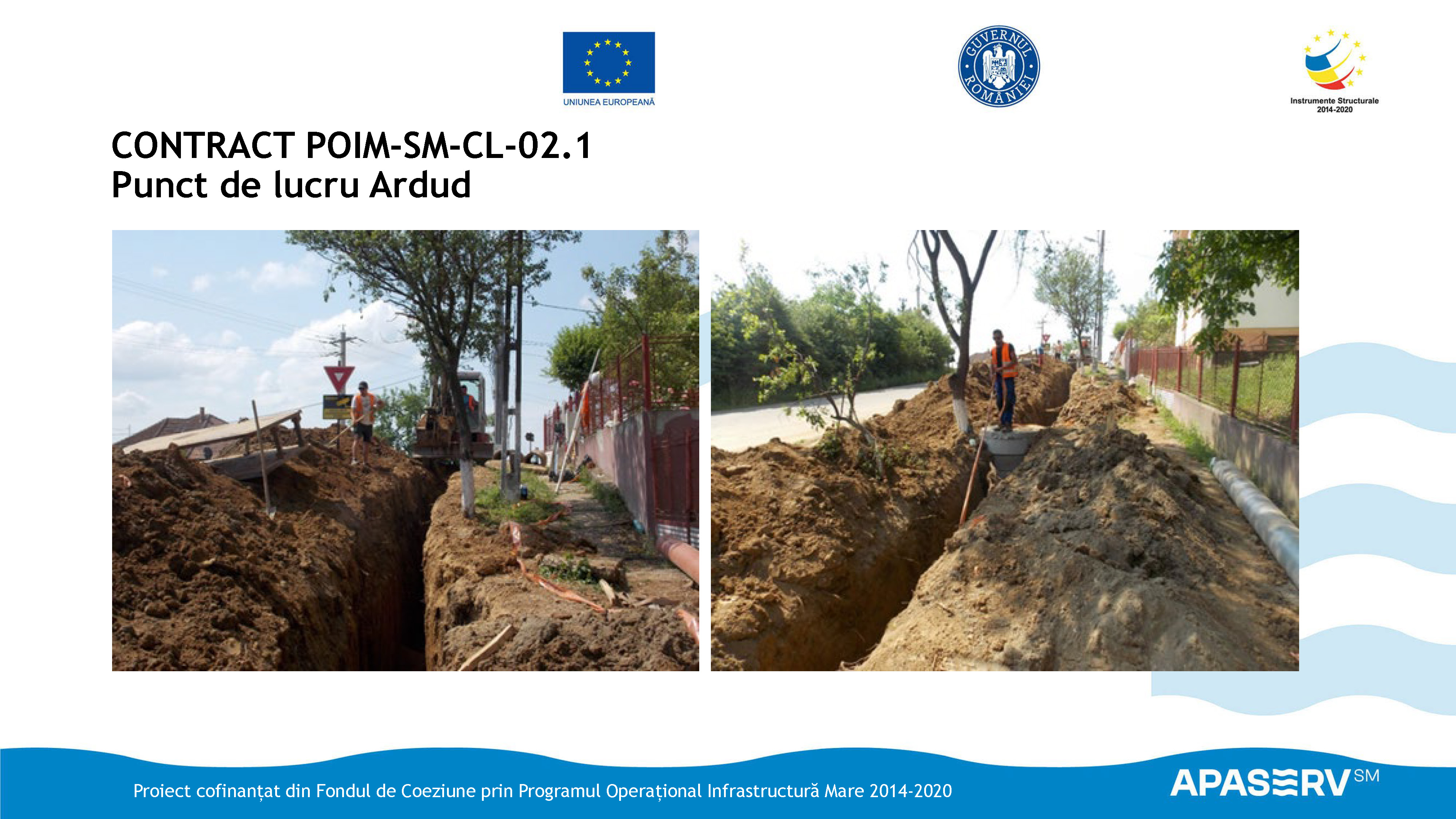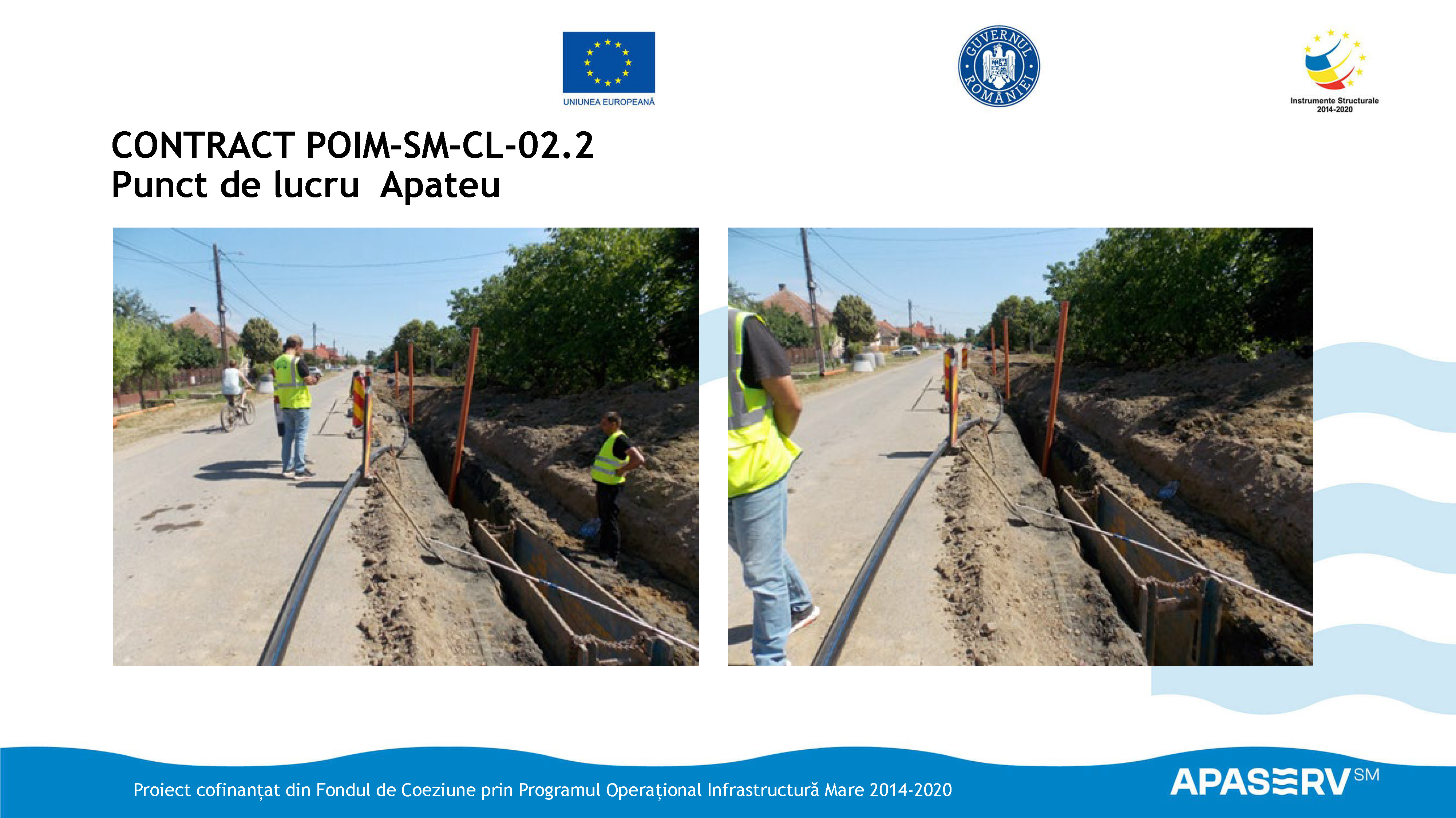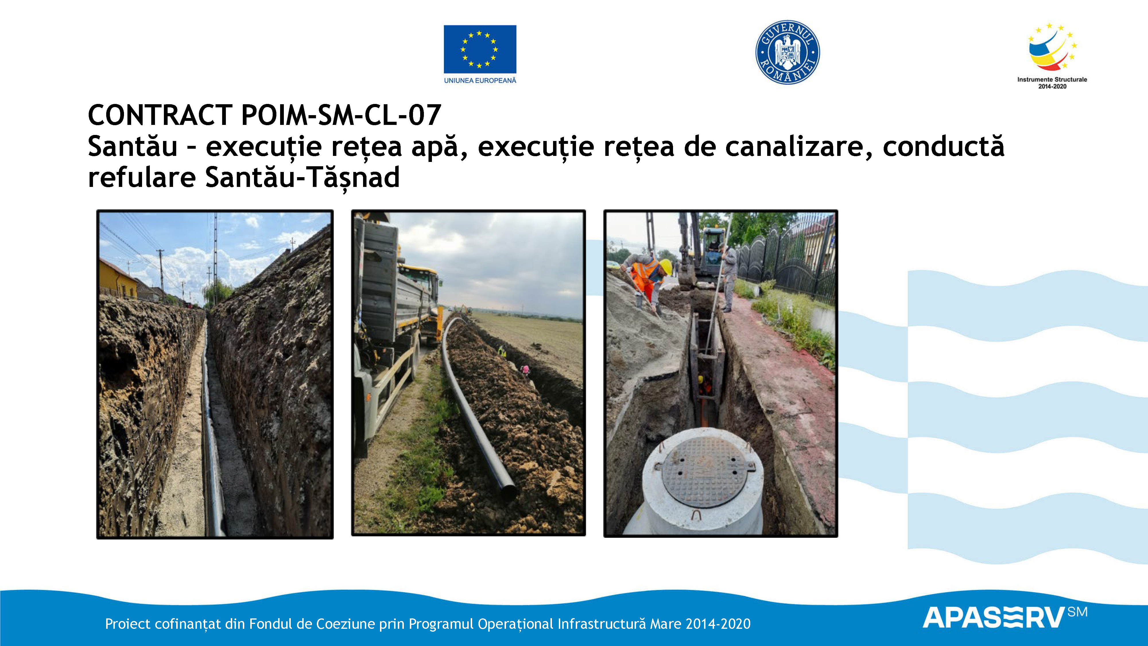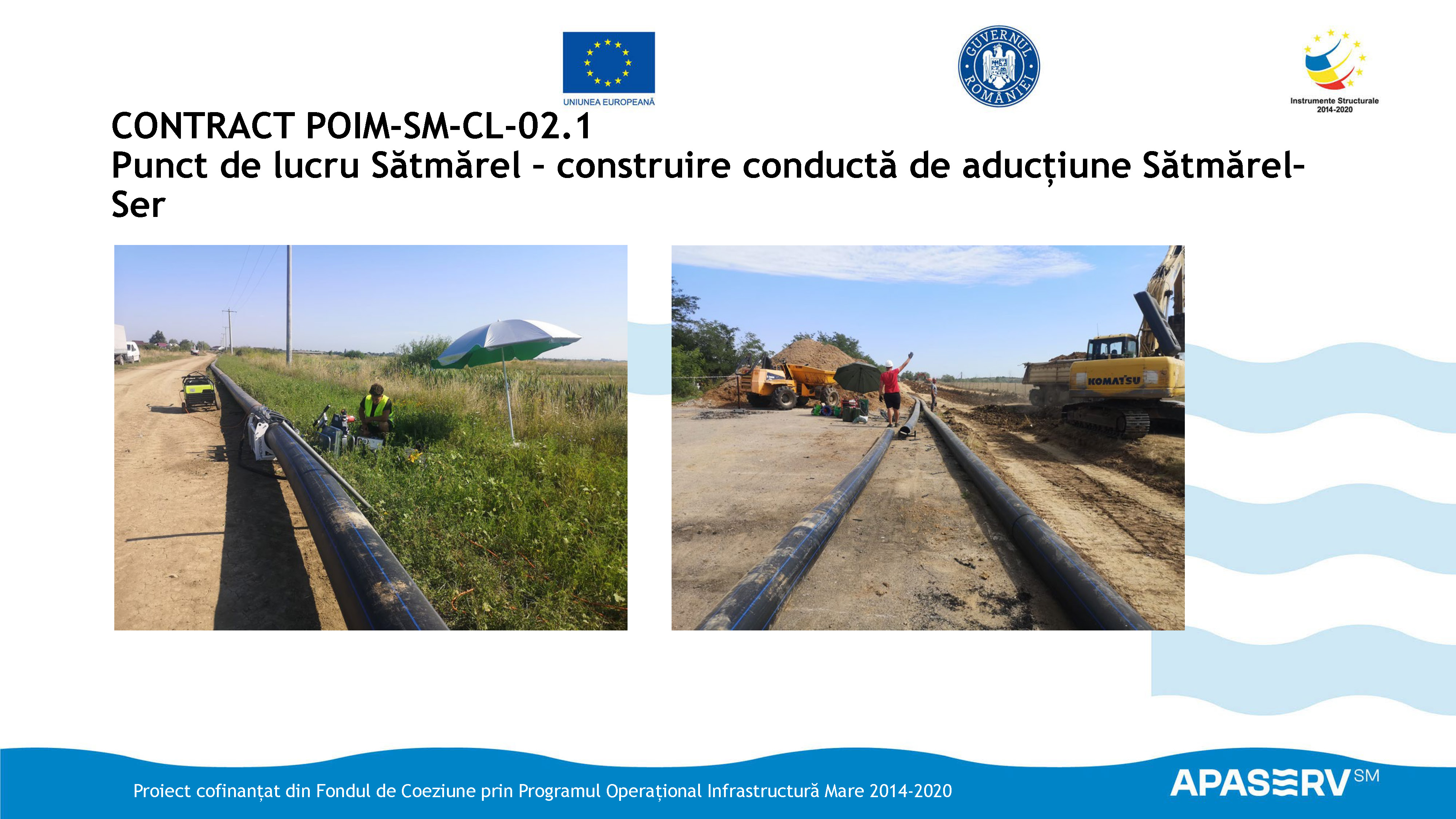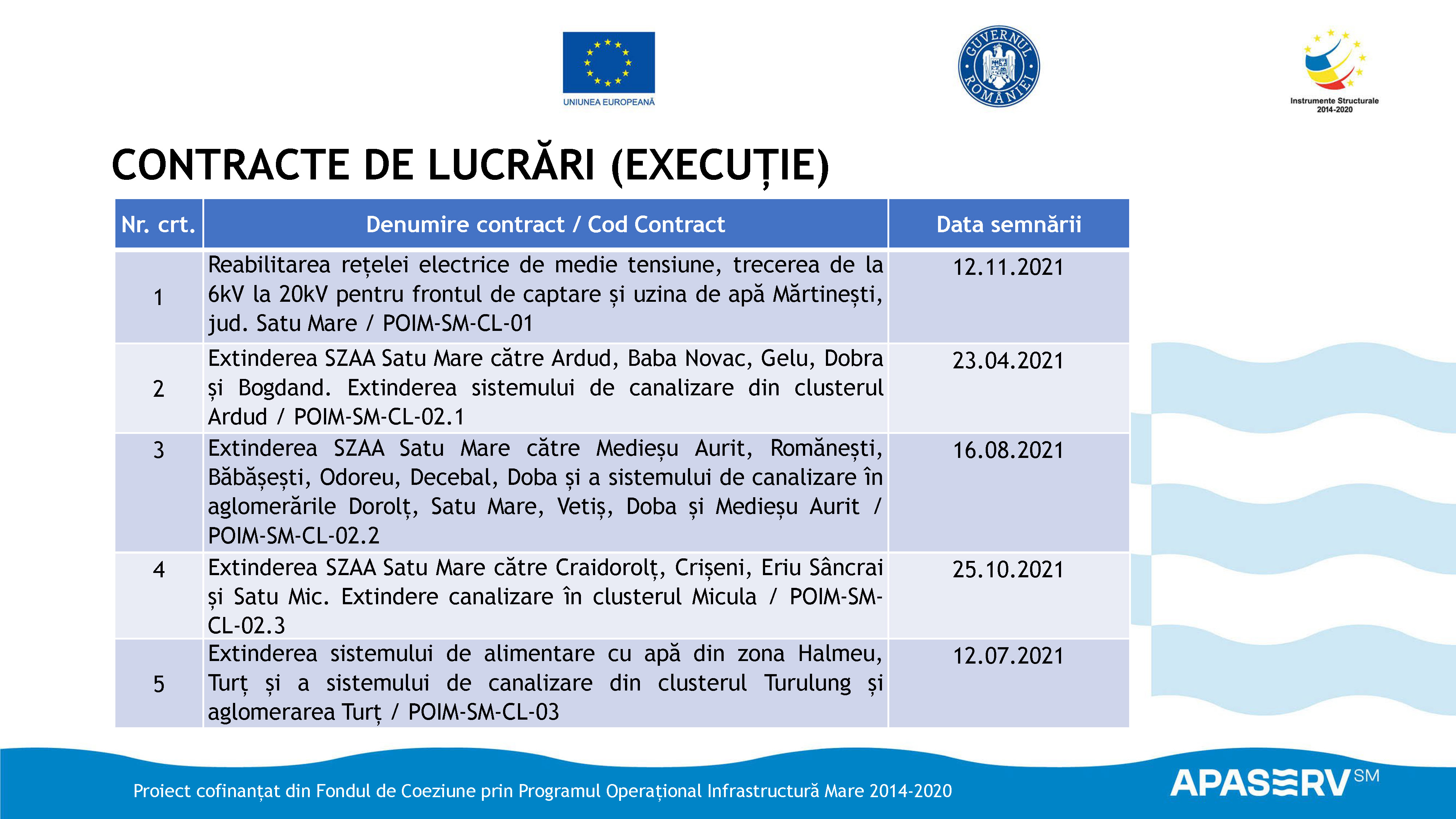 Apaserv S.A derulează cel mai mare proiect de infrastructură din județul Satu Mare. 1,2 miliarde de lei. Satu Mare va beneficia de investiții de 70 milioane de lei. Se vor realiza 16 stații de tratare a apei potabile, 166.5 km de conducte de aducțiune, 258.7 km de rețele de distribuție apă potabilă, 5 stații noi de epurare a apei uzate, 448 km de rețele de canalizare și 132.7 km de colector/conductă de refulare a apei uzate.