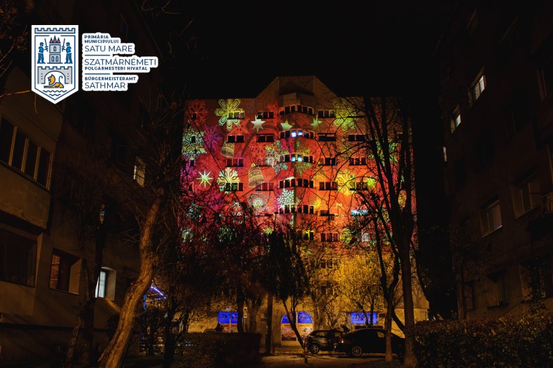 Răspândim magia Crăciunului în cartierele din municipiu! Pentru a aduce mai aproape de sătmăreni atmosfera sărbătorilor de iarnă, am decis să îmbrăcăm mai multe clădiri din cartierele municipiului în proiecții speciale de Crăciun și lumini de basm. Primele proiecții au fost realizate în cartierul Micro 16 și se vor continua și în celelate cartiere din municipiu!