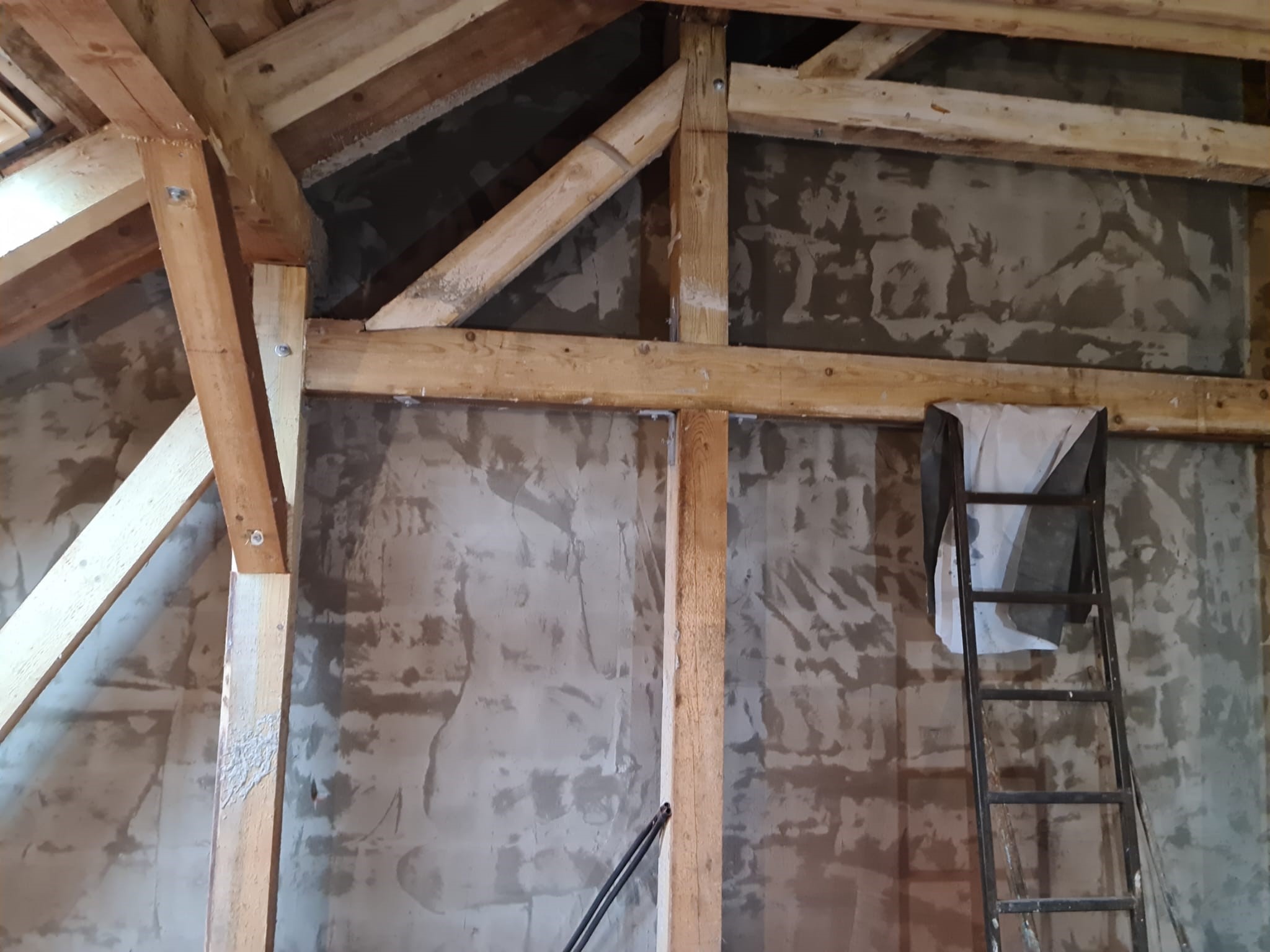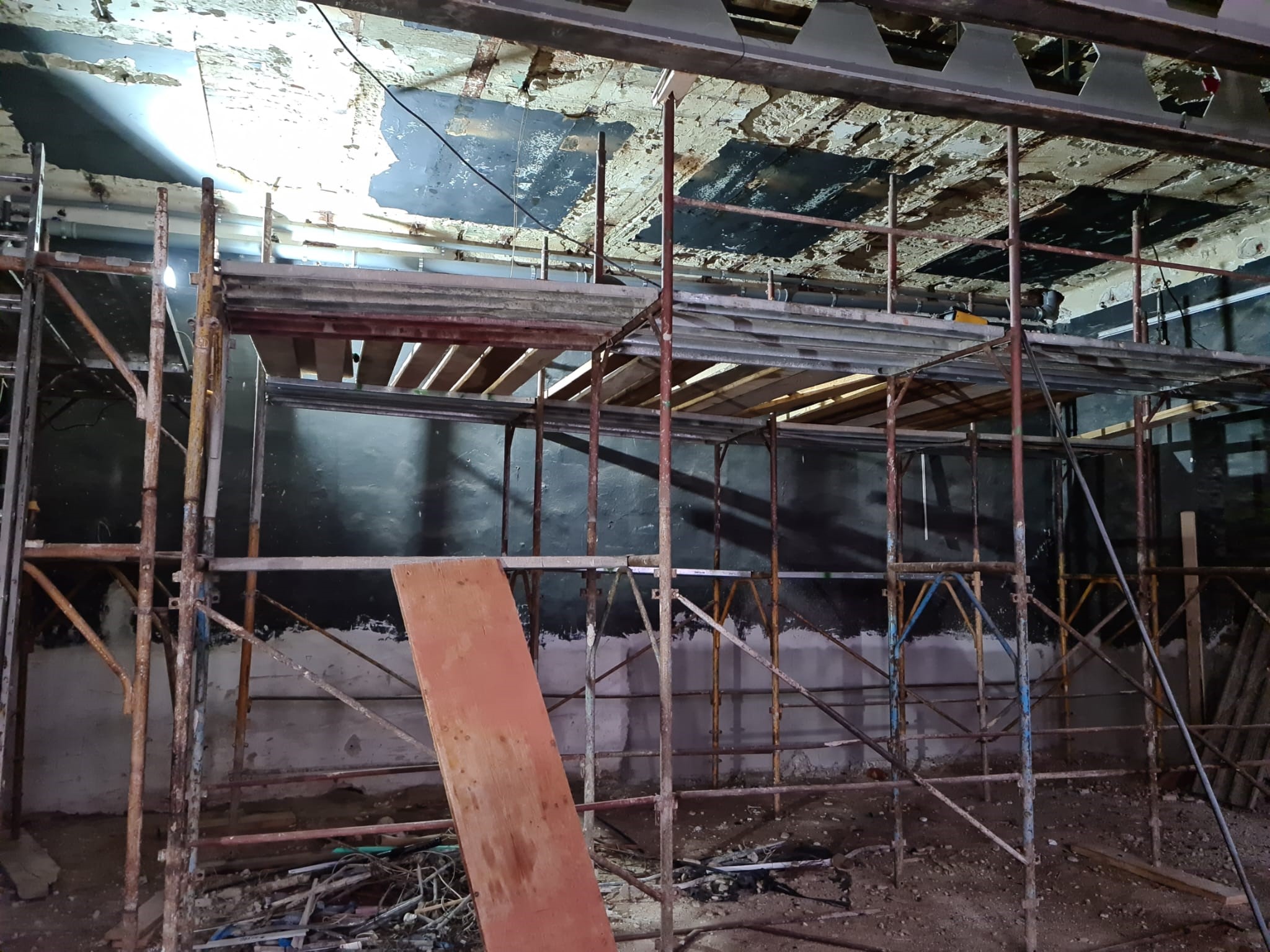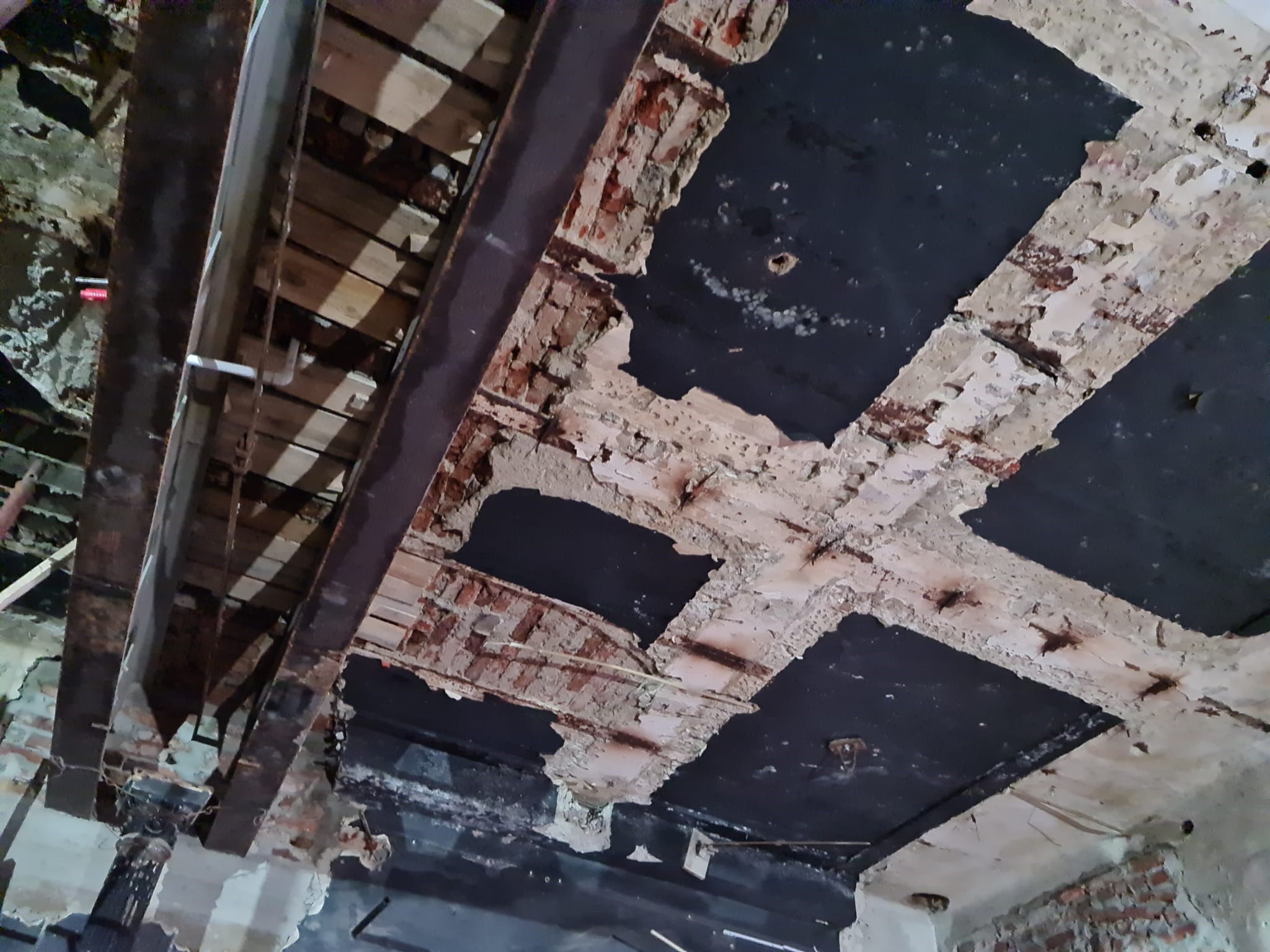În a doua etapă a execuţiei s-au realizat lucrări de arhitectură, respectiv lucrări de structuri portante. Astfel, au fost finalizate total sau parţial lucrări de tencuieli la faţade şi montarea de elemente de termoizolare pe elemente de zidărie, înlocuirea căptuşelilor din lemn, montarea învelitorilor din tablă plană, montarea sistemelor de ferestre la mansardă, zidărie de cărămidă pentru umplerea golurilor sau pentru ridicarea de ziduri noi, realizarea şarpantei acoperişului din lemn, ignifugarea elementelor din lemn, montarea grinzilor din oţel.