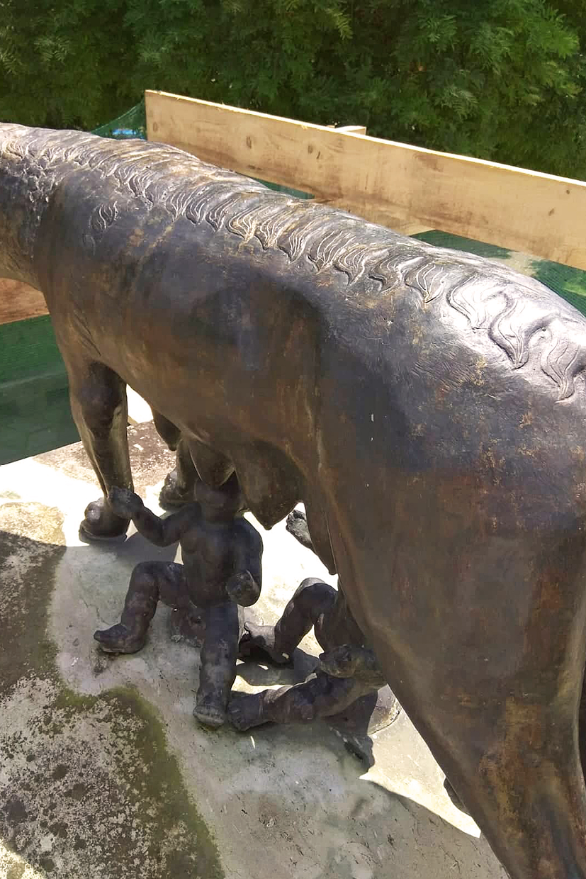 În orașul nostru, în anul 1936, vis-a-vis de Palatul Prefecturii, a fost dezvelită statuia „Lupa Capitolina” , care a dispărut după anul 1940, împreună cu alte monumente. În 1992 sculptorul Radu Ciobanu a realizat o altă statuie a „Lupei Capitoline” aceasta aflându-se astăzi în parcul din fața Muzeului Județean de Istorie.
