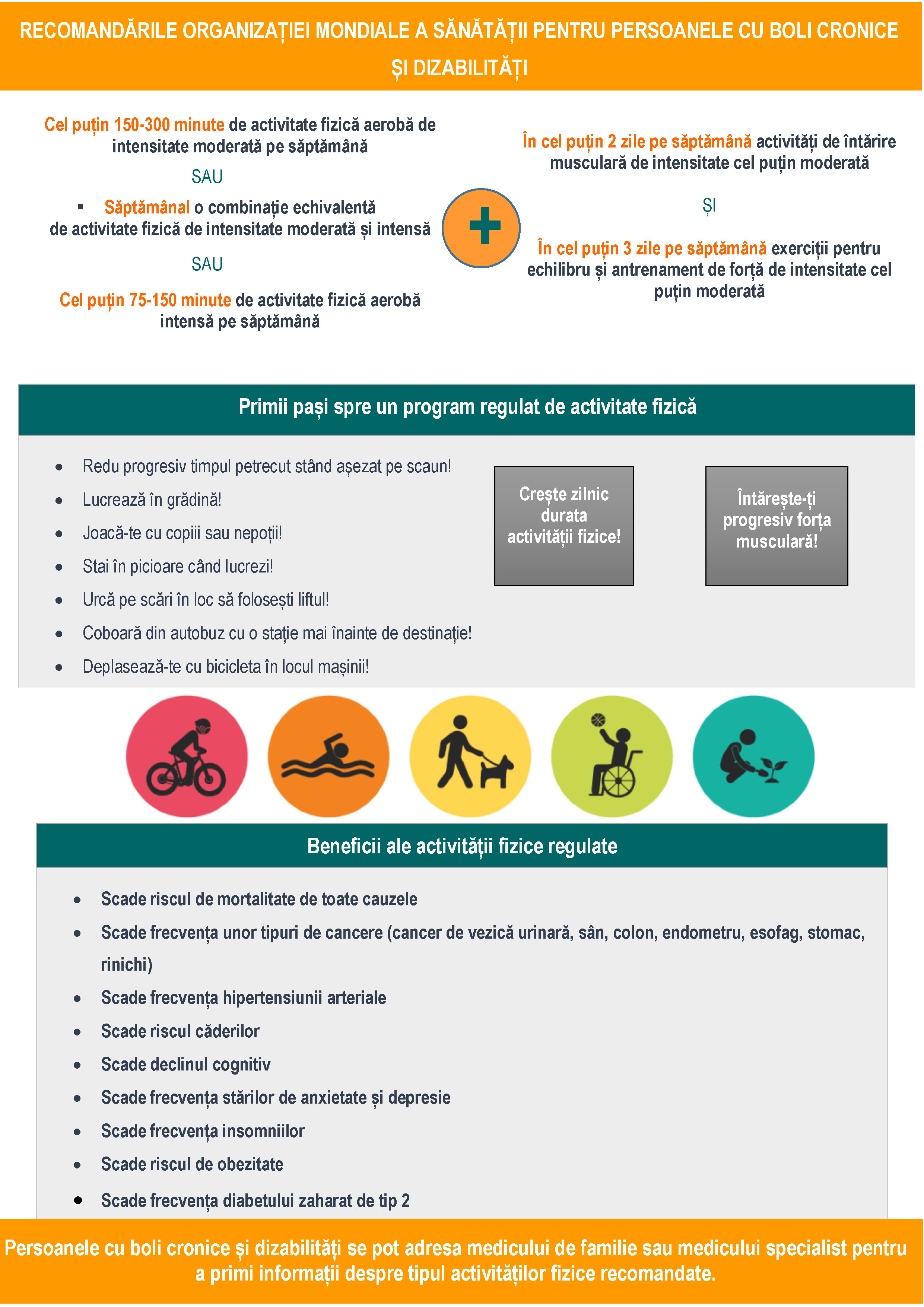 Campania se adresează adulților și vârstnicilor cu boli cronice și dizabilități, cu scopul de a îi informa despre îmbunătățirea stării de sănătate, prin adoptarea unui program regulat de activitate fizică, adecvat stării de sănătate pentru adoptarea unui stil de viață activ, cu beneficii demonstrate științific asupra sănătății și stării de bine.