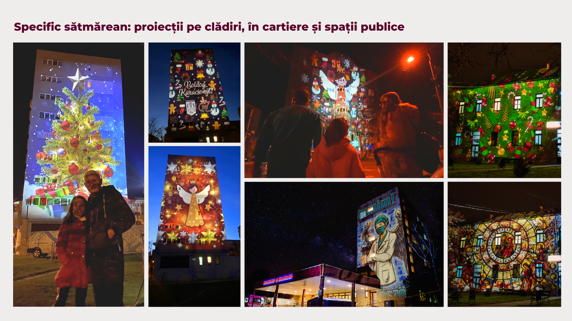 De asemenea, și în acest an, în cartierele municipiului, vor fi continuate proiecțiile de lumini pe clădiri, care au fost atât de apreciate de sătmăreni la ediția trecută.