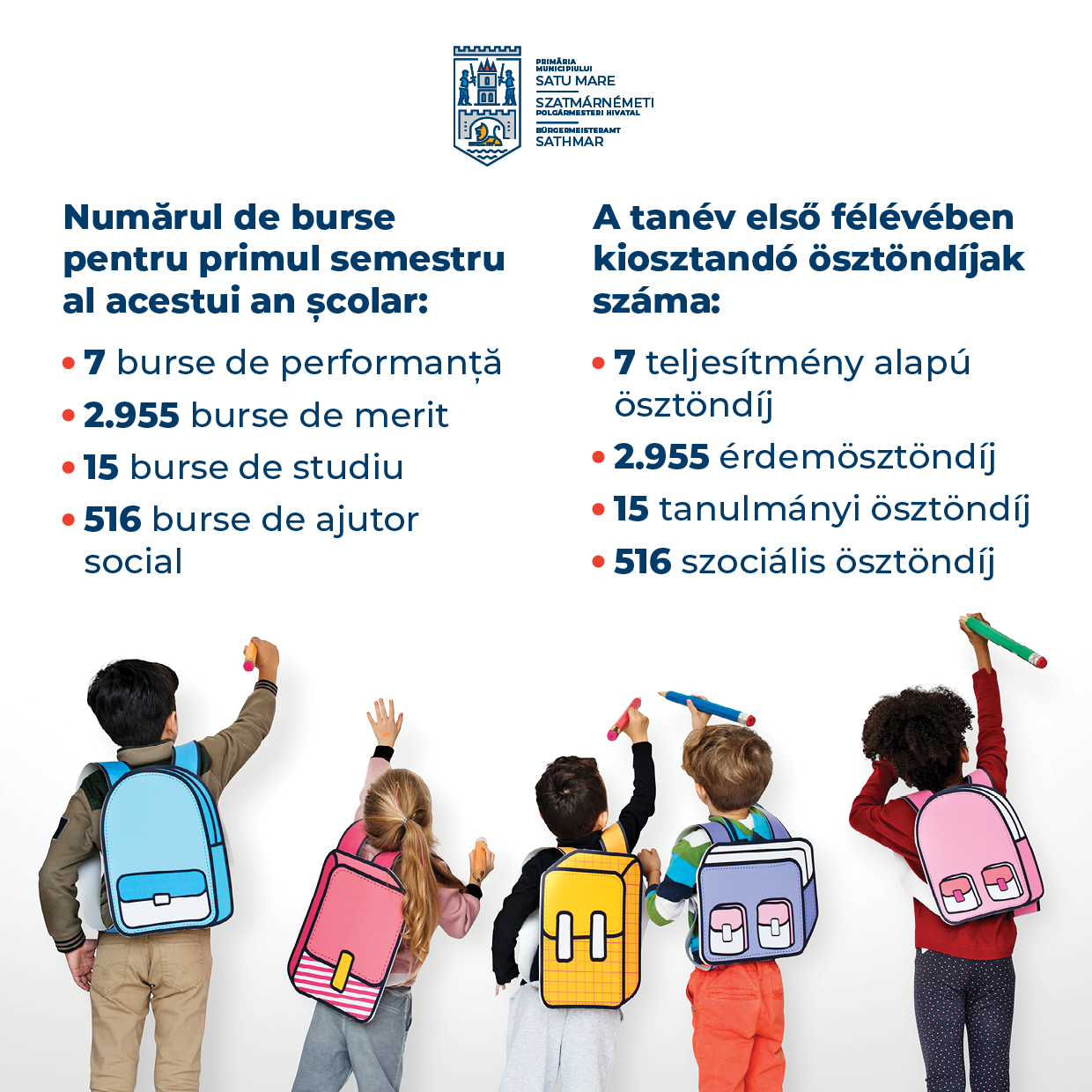 3.493 de burse pentru elevii sătmăreni în semestrul I. Vești bune pentru elevi și pentru calitatea procesului educațional din municipiu. În ședința de joi,25 noiembrie, Consiliul local a aprobat numărul de burse pentru primul semestru al acestui an școlar.
