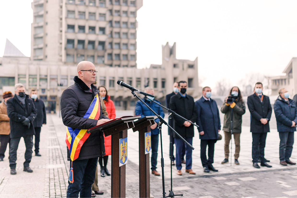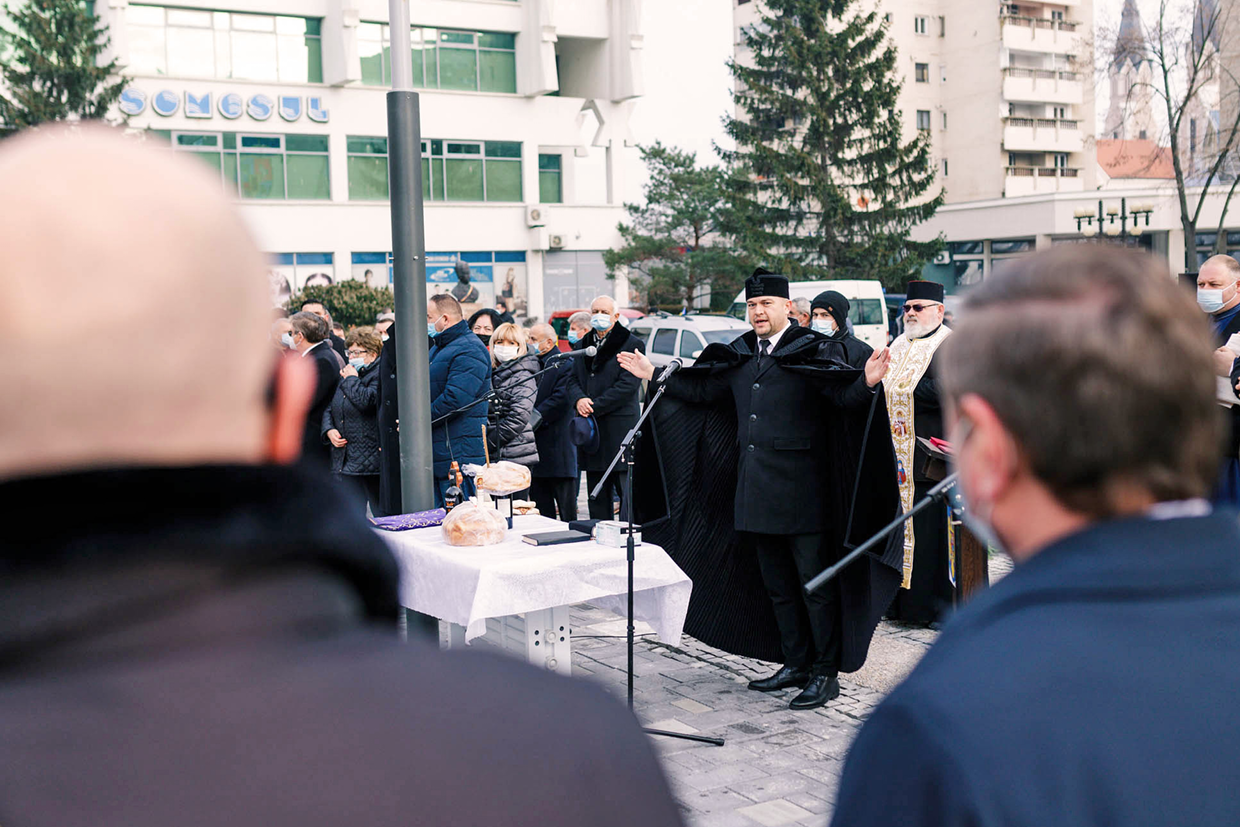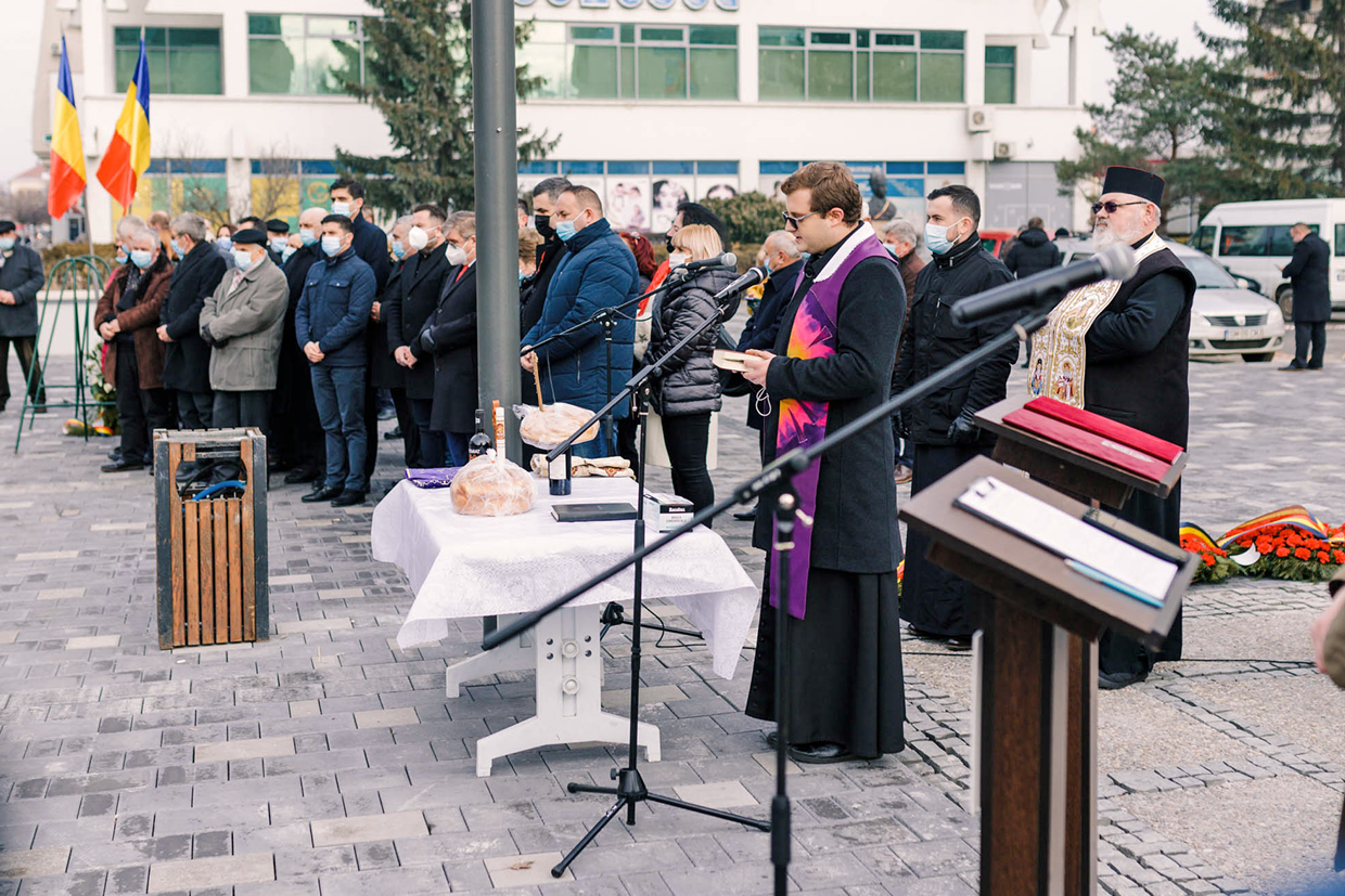 „În 22 decembrie 1989 dorința de libertate a învins frica. Revoluția este un dar, este o jertfă, finalul a zeci de ani de luptă împotriva comunismului în toată Europa Centrală și de Est. Și anul acesta îi omagiem pe eroii Revoluției din 1989 în pandemie, cu fețele acoperite. Nu pandemia, însă, ne-a furat spiritul Revoluției. S-a pierdut în fiecare zi în care am refuzat să cunoaștem istoria, să învățam din ea și să recunoaștem semnele pierderii libertății. După 32 de ani avem tendința să uităm că democraţia şi libertatea au fost câştigate prin lupta şi sacrificiul de multe ori suprem al unor eroi. Pe toţi aceşti eroi, unii cunoscuţi, alţii anonimi, nu trebuie să-i lăsăm să cadă în uitare. De ce în 1989 nu le-a fost frică? De ce au ieșit în stradă sute de mii de oameni în toate orașele? Greu de crezut ca nu cunoșteau pericolul la care se expuneau. Răspunsul e însă simplu: Libertatea a făcut ca frica de moarte să nu mai conteze. Jerfa adusă și idealul era mult prea mare. În încheiere, doresc să-i amintesc încă odată pe martirii sătmăreni din Decembrie 1989: Ciul Ioan Marinel, Király Mihály, Zimbru Grigore, Sófalvi György, Sălăjan Raluca, Szabó Antal, Csaba Gergely. Dumnezeu să-i odihnească în pace pe toți cei care au murit luptând împotriva comunismului!”, a transmis primarul municipiului Satu Mare, Kereskényi Gábor.