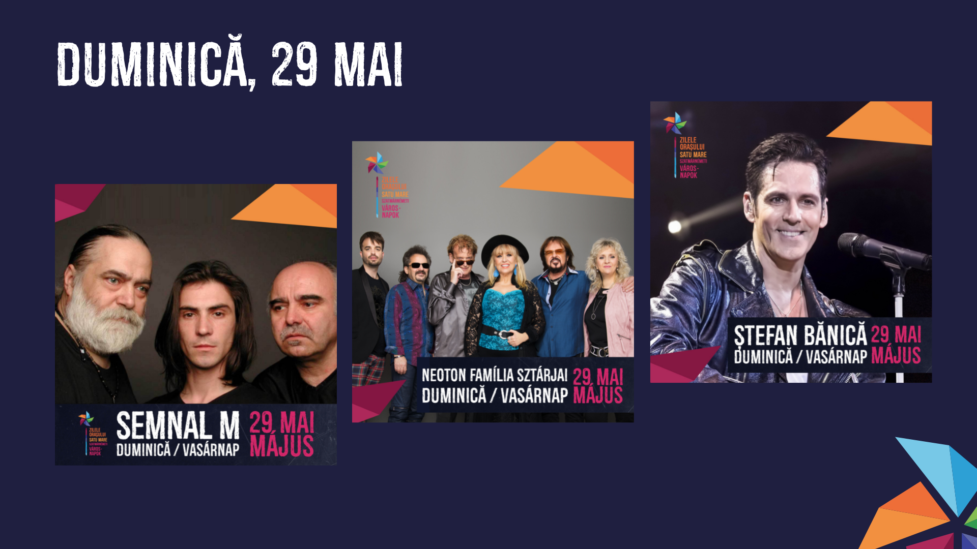 Astfel, în perioada 26-29 mai, Primăria Municipiului Satu Mare și Centrul Cultural ,,G.M. Zamfirescu” vor organiza cea mai mare sărbătoare a comunității sătmărene. Având în vedere amploarea evenimentului, în ultimul weekend al lunii mai vor veni la Satu Mare cei mai în vogă artiști ai momentului.
