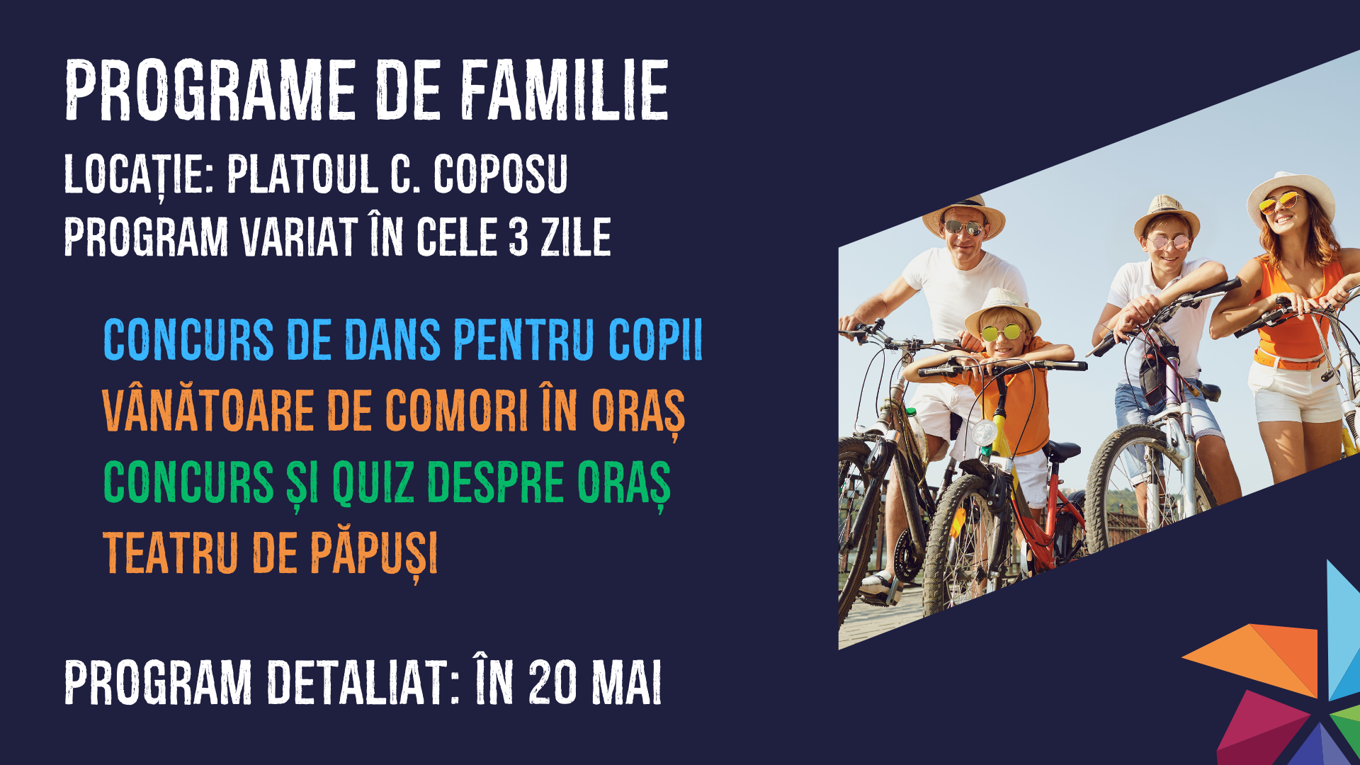 Zilele Orașului sunt un prilej prin care organizăm programe culturale și de divertisment pentru toată familia. Vom avea în program o mulțime de activități și concursuri pentru copii și tineri, iar platoul de evenimente de pe platoul Corneliu Coposu se va umple de veselie și culoare. Vom organiza o vânătoare de comori în oraș, concursuri tip quiz, despre orașul Satu Mare, vom avea spectacole de teatru, concursuri de dans și alte programe pentru generația tânără.