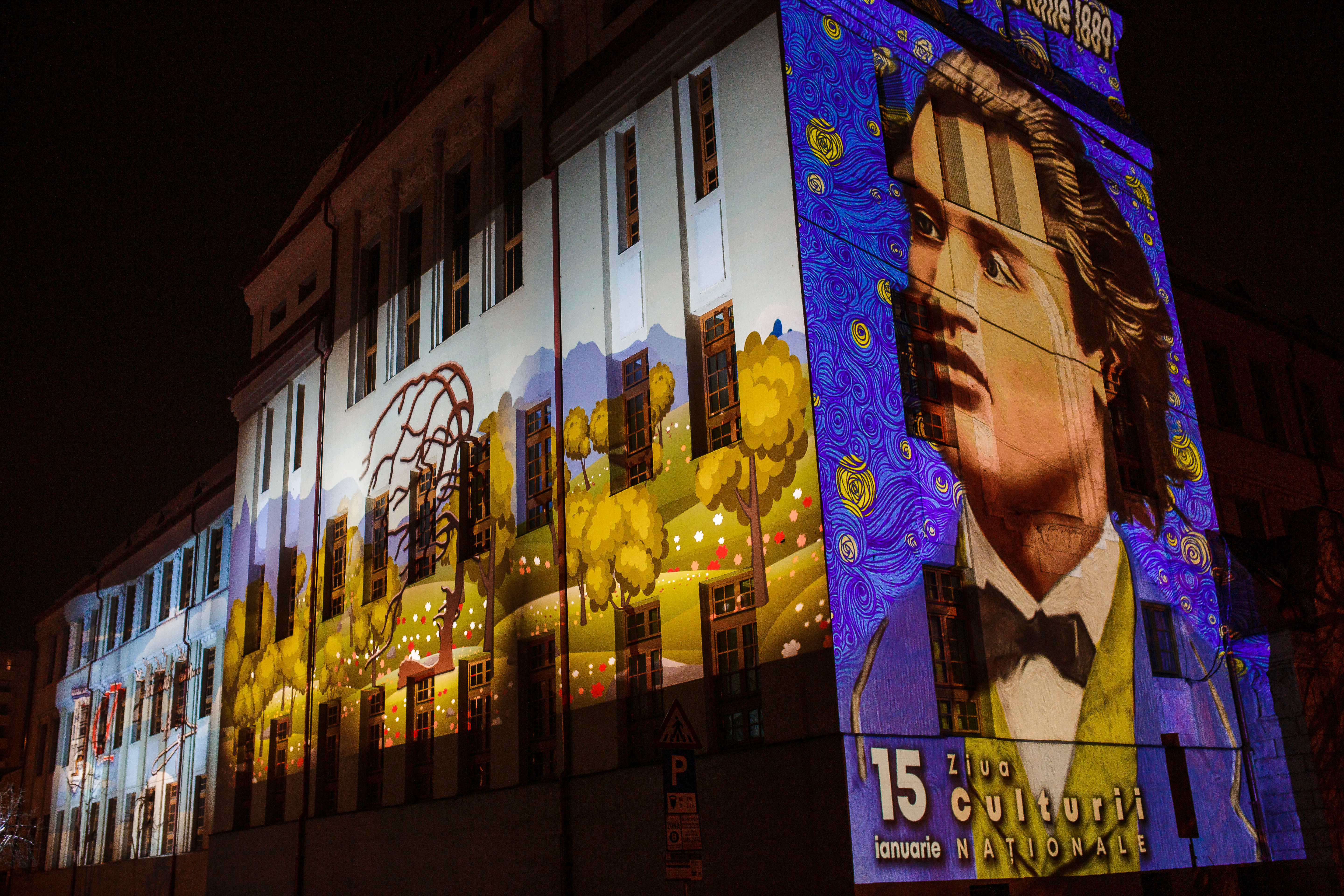 Evenimentul a constat într-o proiecție specială de imagini și simboluri inspirate din versurile poeziilor ,,Luceafărul”, ,, Scrisoarea a III-a” și ,, Fiind băiet păduri cutreieram”, care au decorat în avampremieră joi seara clădirea liceului, fiind un preambul al proiecției de vineri, 15 ianuarie. Elevii ai Colegiul Național ,,Mihai Eminescu”: Simo Cristina Dimitra, Epuran Teodora și Torok Mircea, au recitat din versurile creației eminesciene în timp ce imaginile decorau impunătoarea clădirea ce poartă numele mareului poet național.