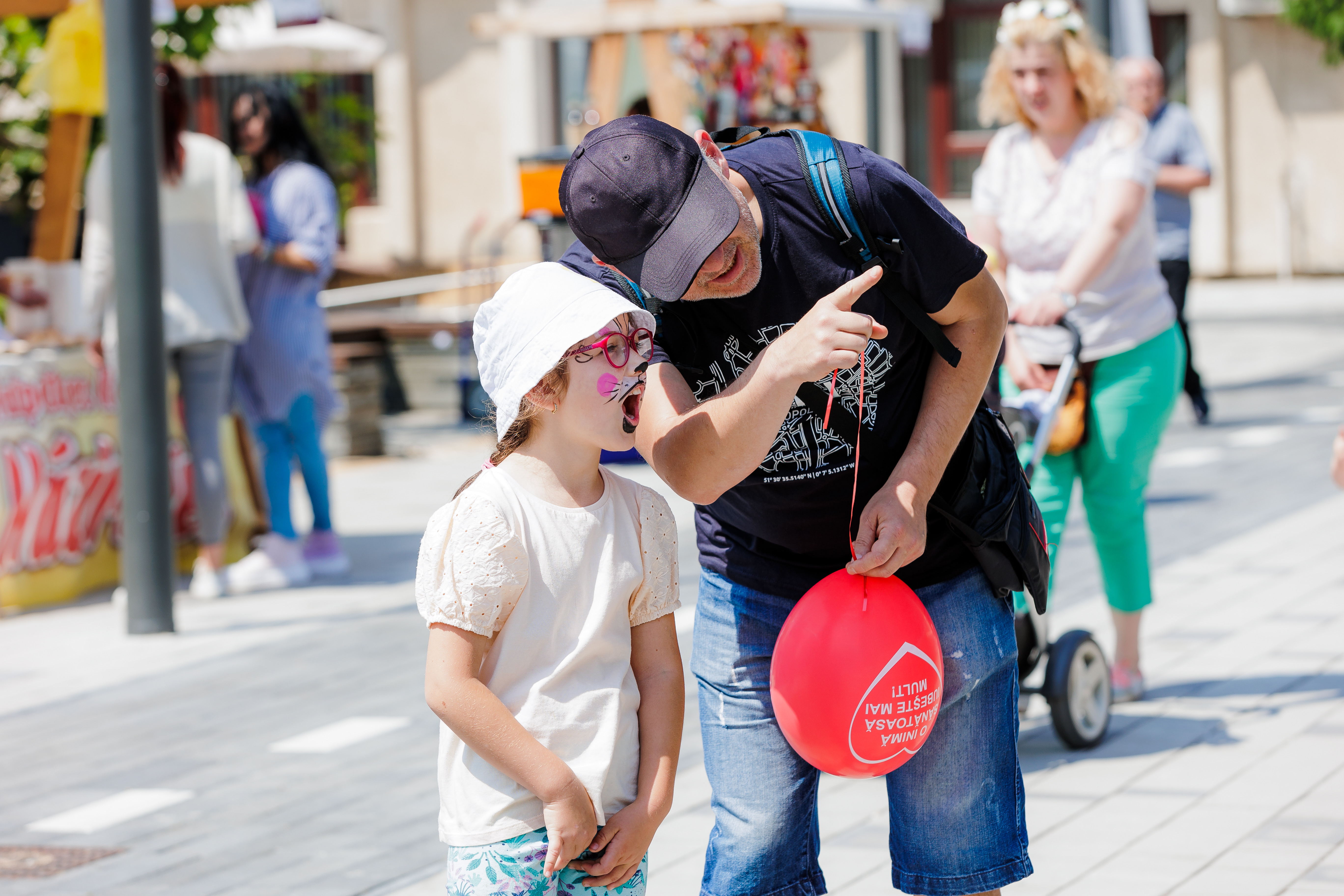 Programul dedicat copiilor a început la scena Catena de pe pasajul Corneliu Coposu. Grupuri de copii veseli au sosit unul după altul pentru a ne umple de bucurie. În aplauzele părinților și a bunicilor, programul s-a întins pe parcursul celor trei zile. I-am așteptat pe toți copiii cu suprize.